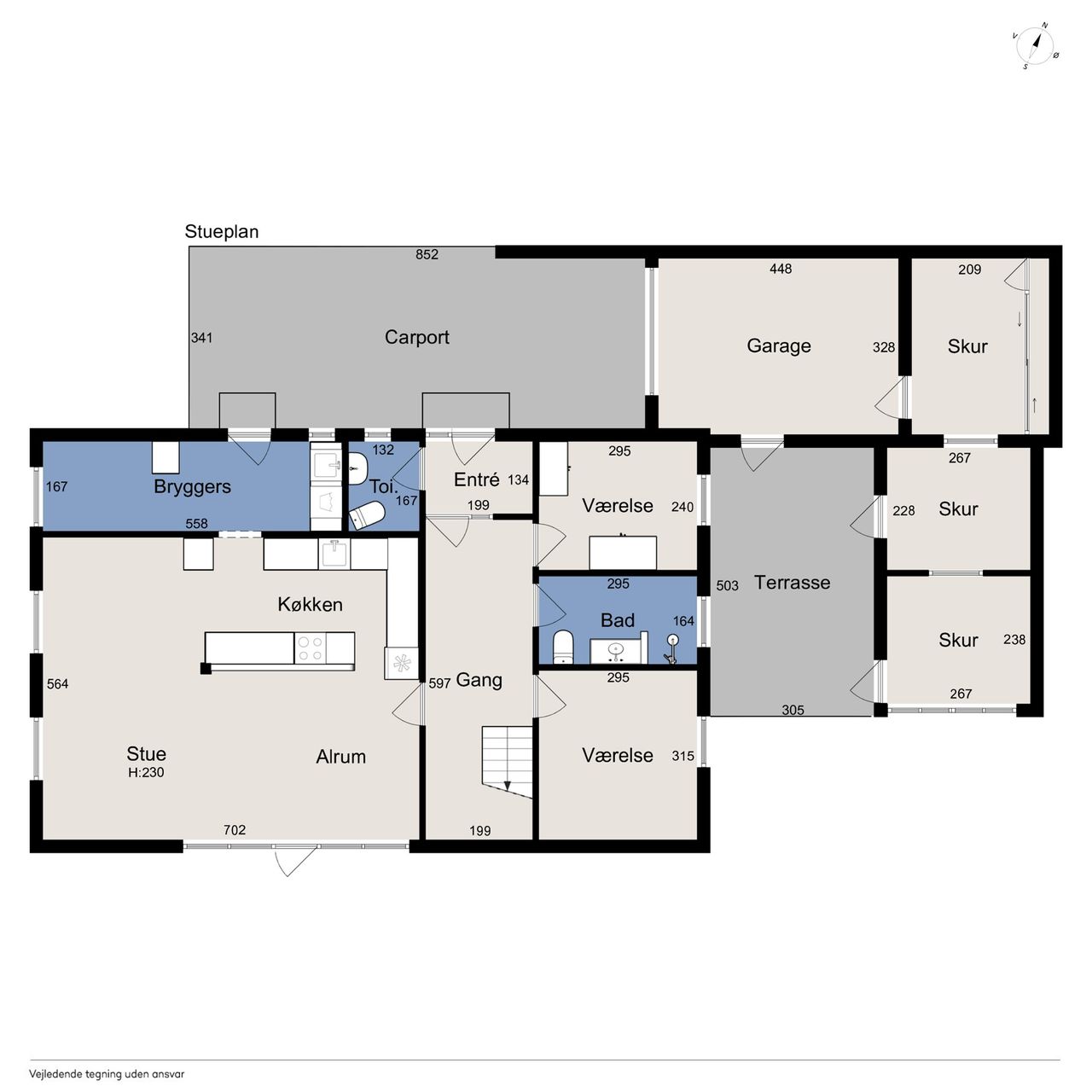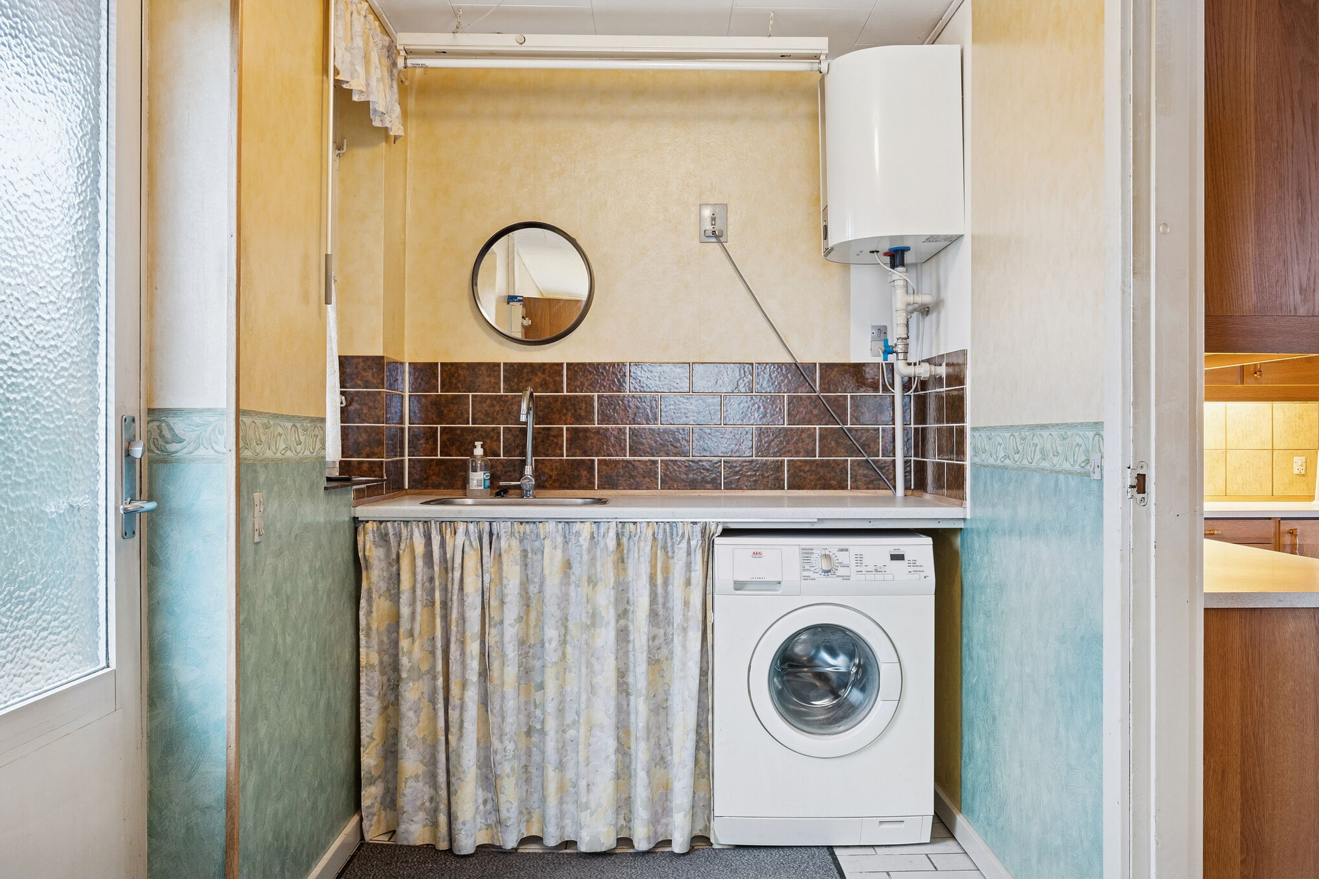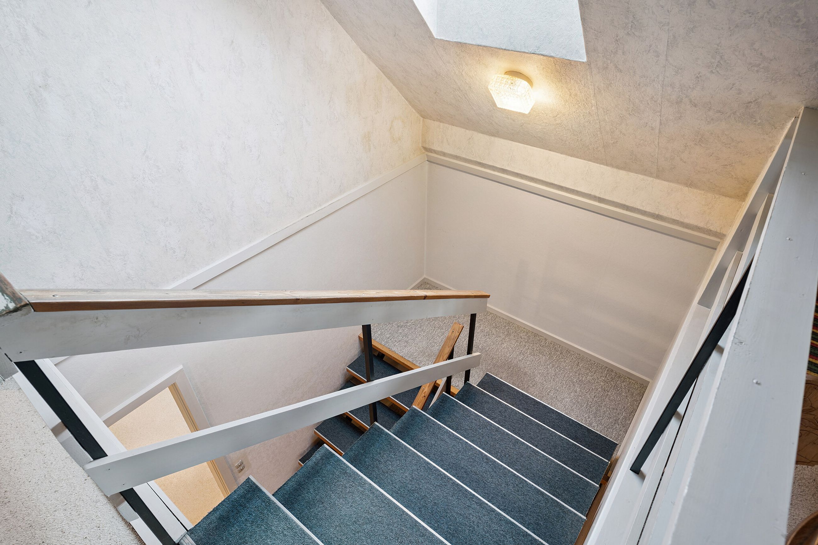 Indenfor bydes du velkommen i en entré med gæstetoilet og fordelingsgang med trappe til førstesalen. I stueplan finder du to gode værelser samt et klassisk 70’er-badeværelse med bruseniche. Husets naturlige samlingspunkt er det store køkken-alrum, hvor der er rigelig plads til både spisebord og hyggeligt opholdsområde. Herfra er der direkte udgang til terrasse og have – perfekt til sommerens grillmiddage og udeliv. Fra alrummet er der også adgang til et praktisk bryggers med vaskeinstallationer og god opbevaringsplads.