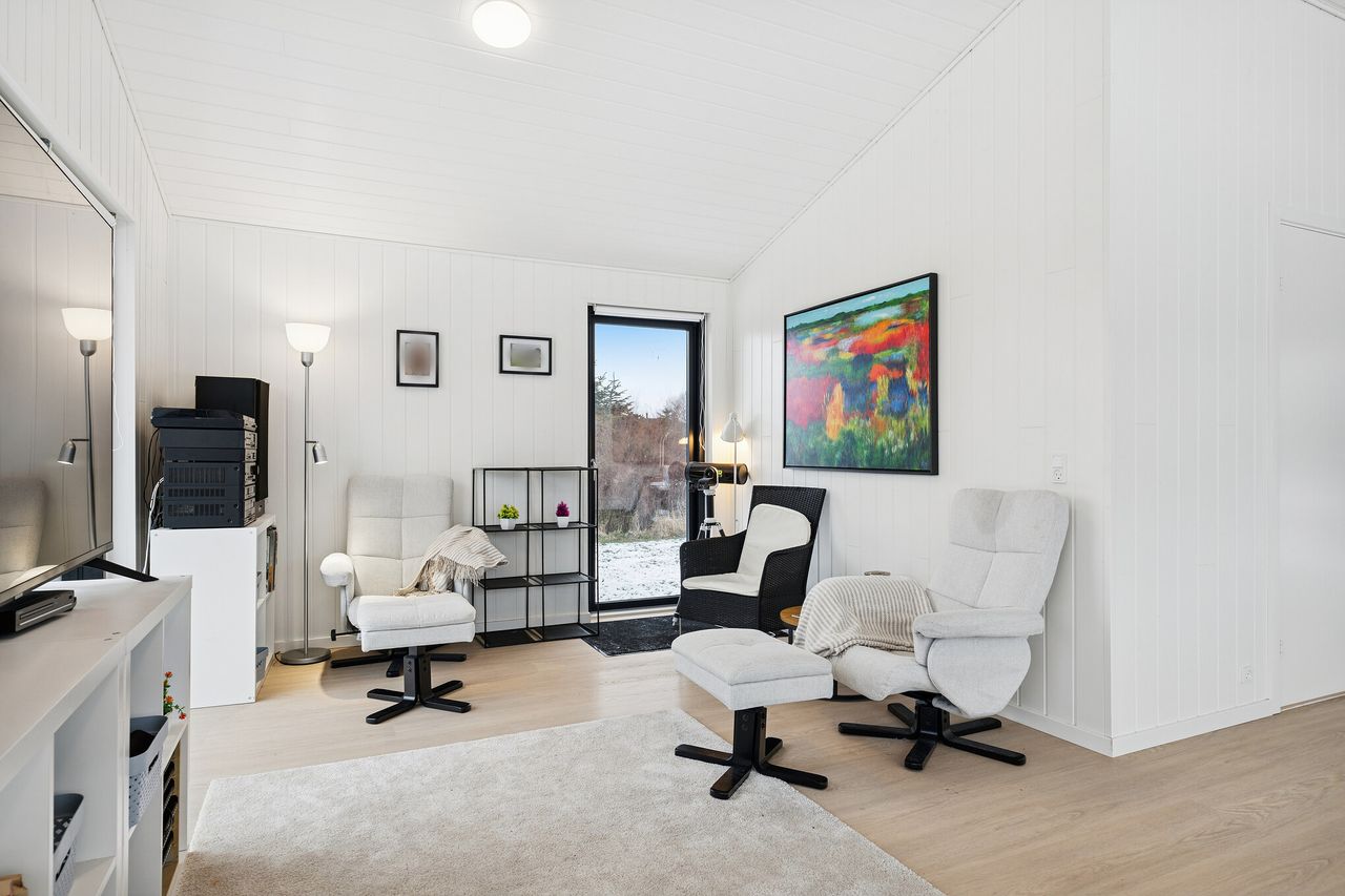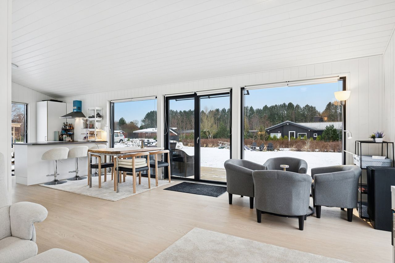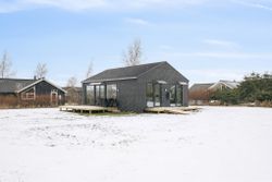 I gåafstand til stranden og for enden af en blind vej ligger dette stilrene og nyopførte sommerhus fra 2025 i det attraktive Råbylille Strand.