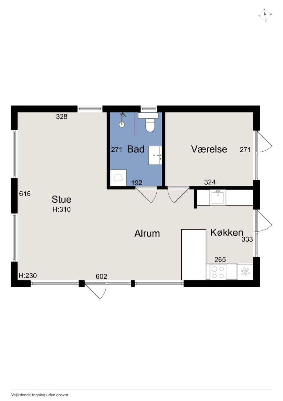 Opvarmning sker via luft-til-luft varmepumpe, som sikrer et behageligt indeklima året rundt.