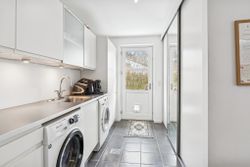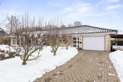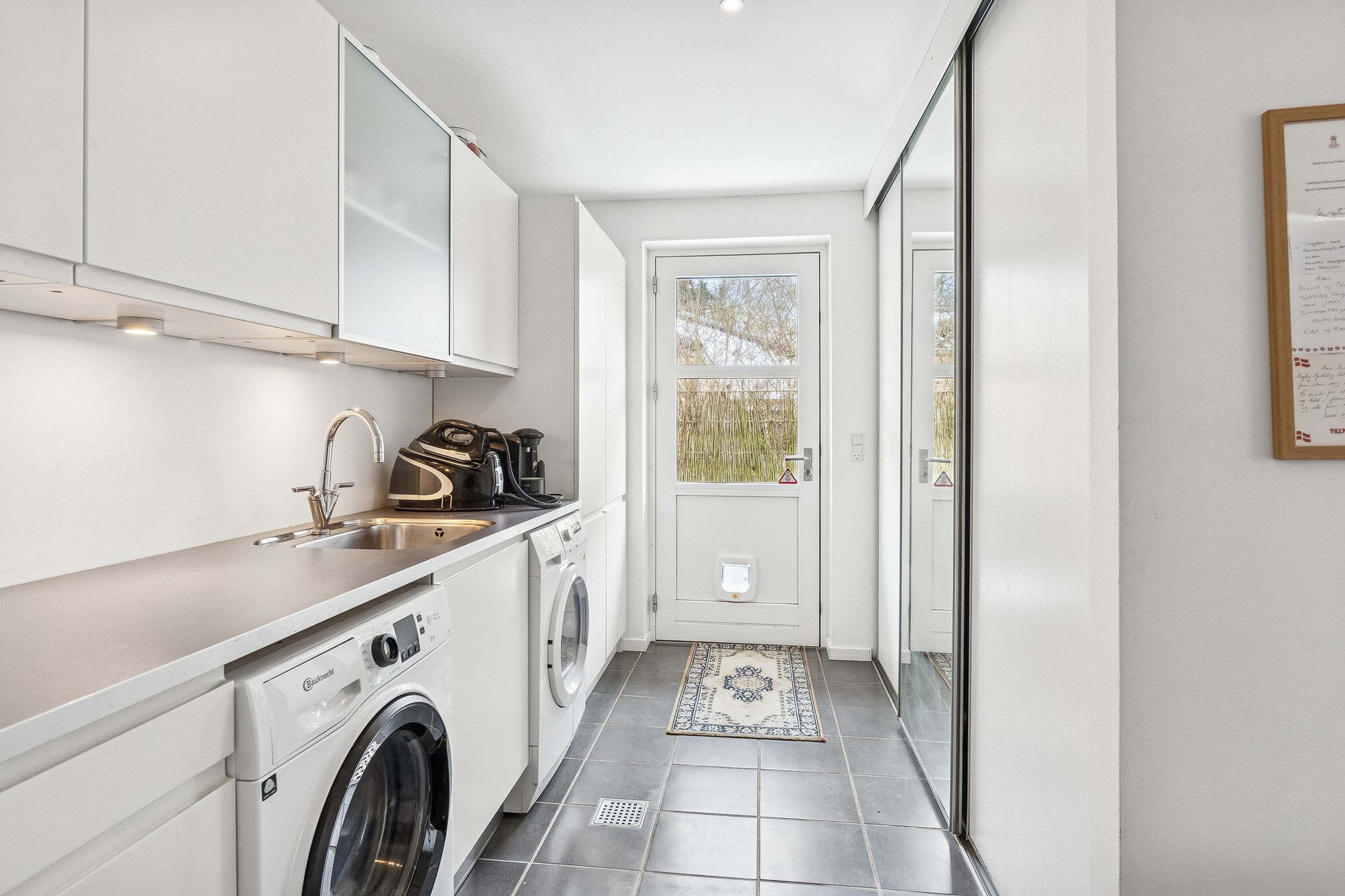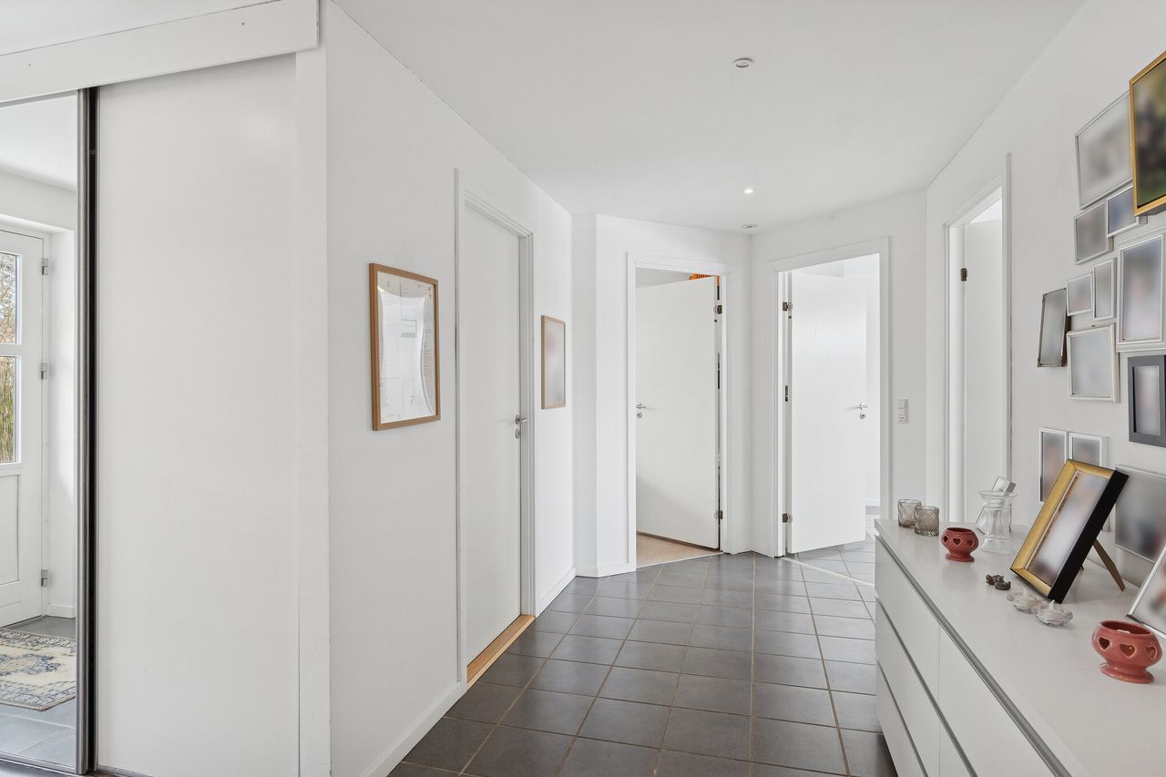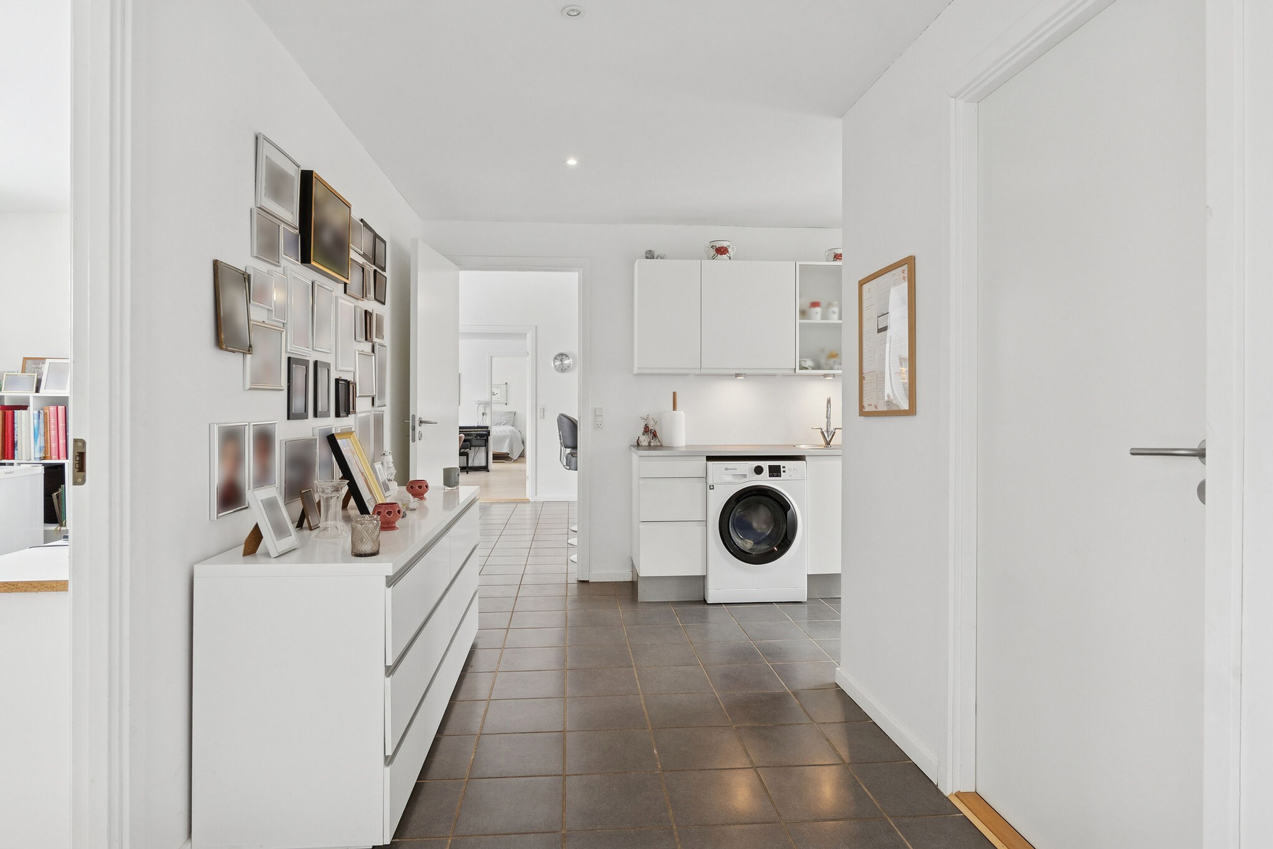 I bydes velkommen i entré/garderoberum med adgang til fordelingsgang, der leder til to gode værelser samt et pænt gæstebadeværelse med bruseniche. Praktisk bryggers med egen indgang giver en funktionel hverdag.