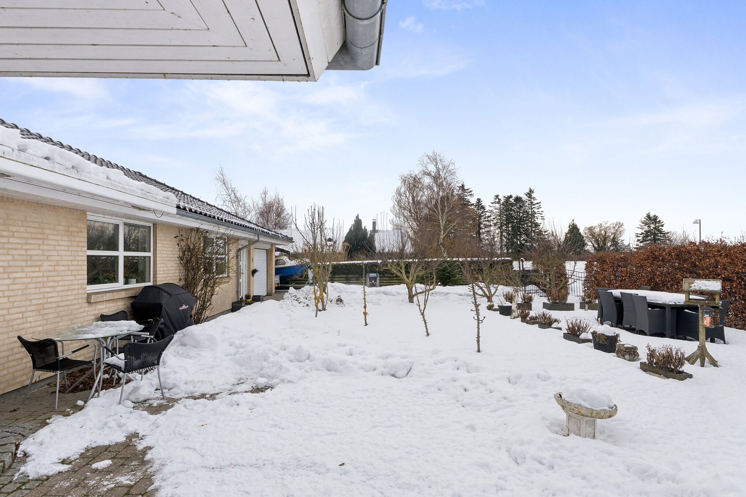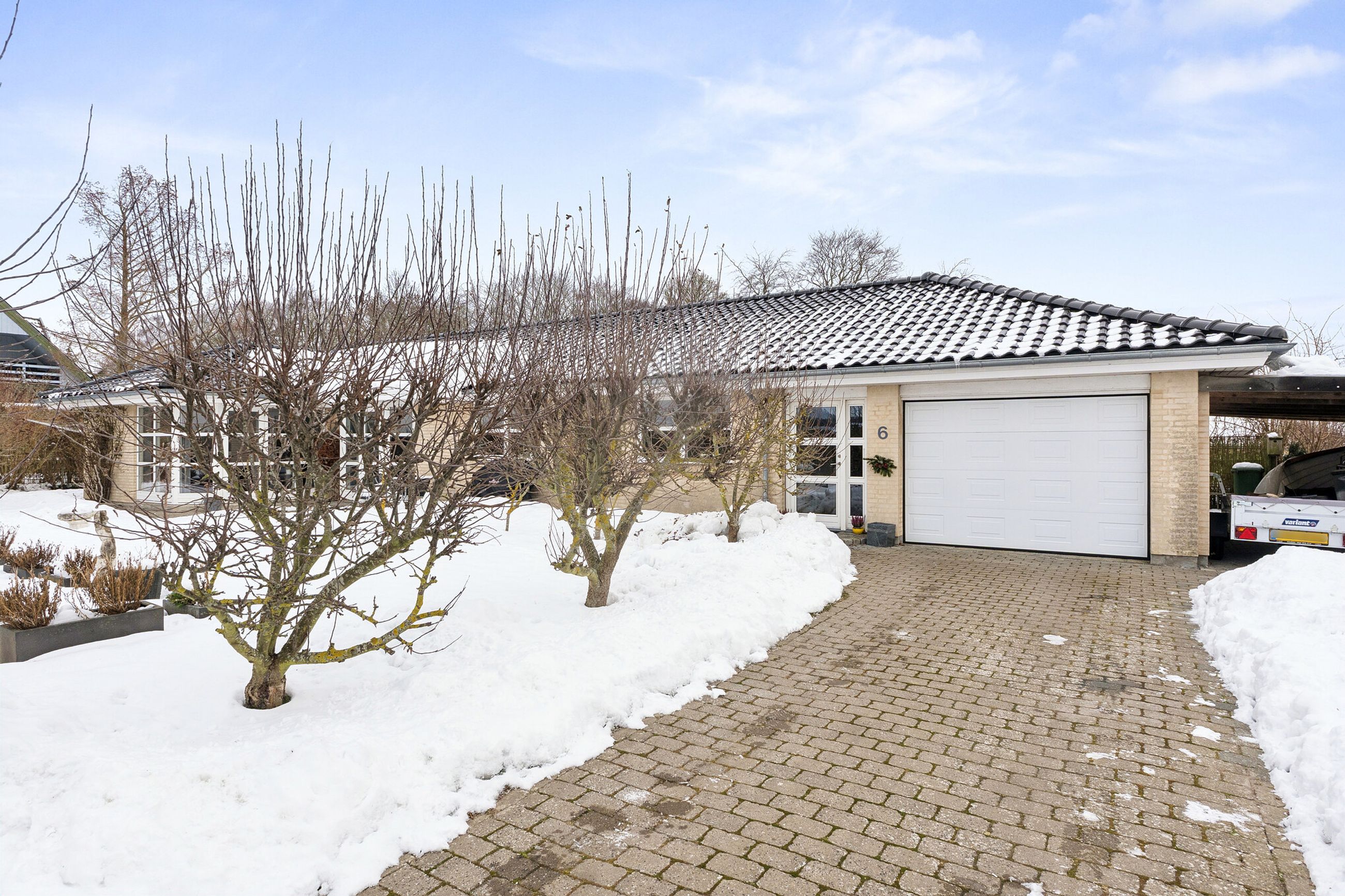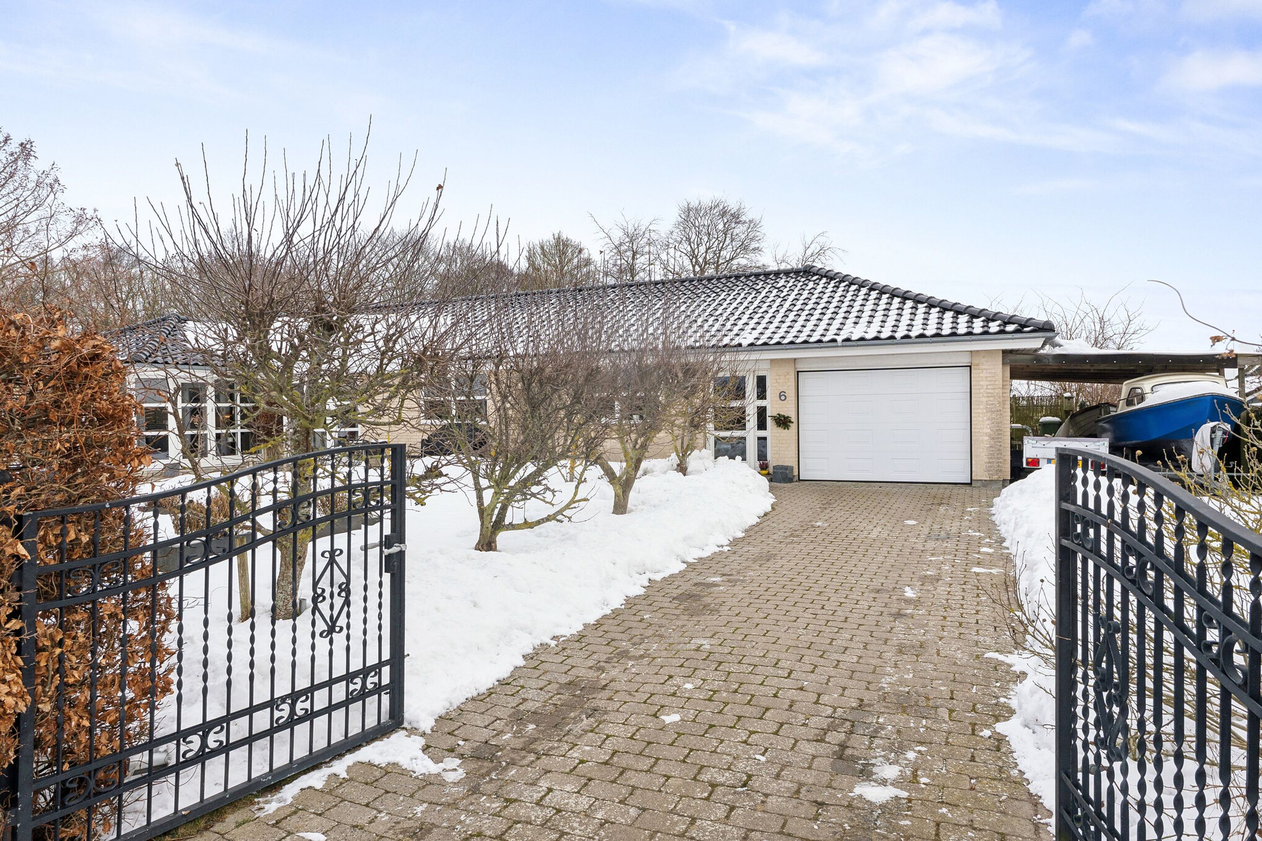 Den integrerede garage giver fine muligheder for hobbyprojekter eller værksted, og den ekstra carport giver plads til endnu en bil eller båd.