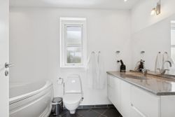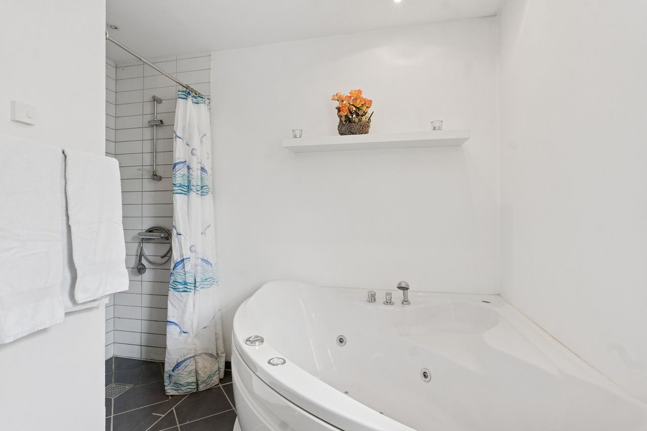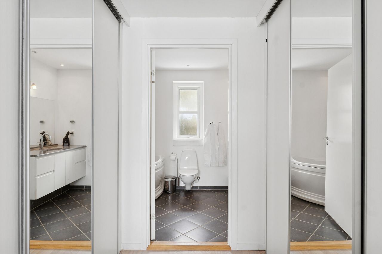 Forældreafdelingen er indrettet som en privat oase med stort soveværelse, walk-through-closet og direkte adgang til eget badeværelse med både bruseniche og spabad.