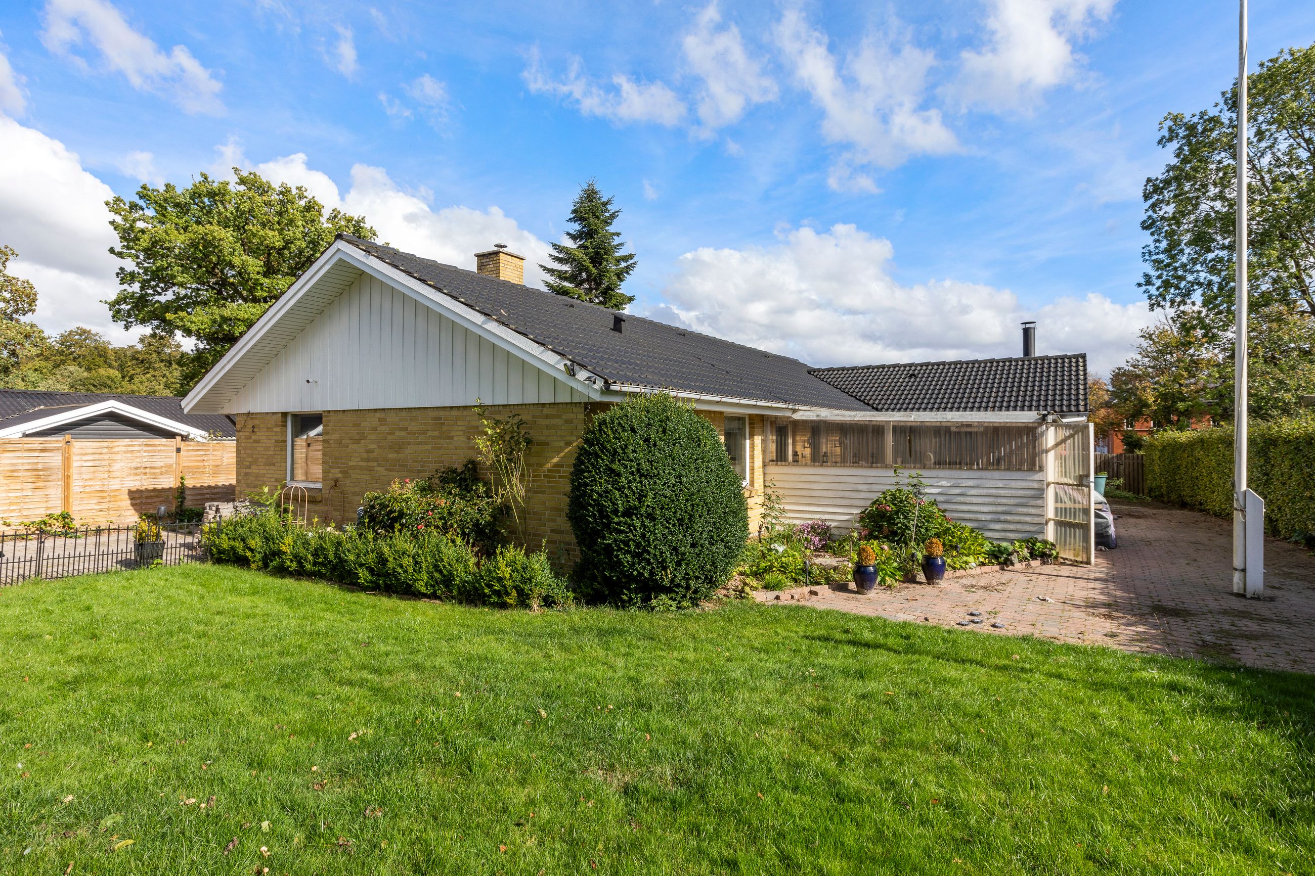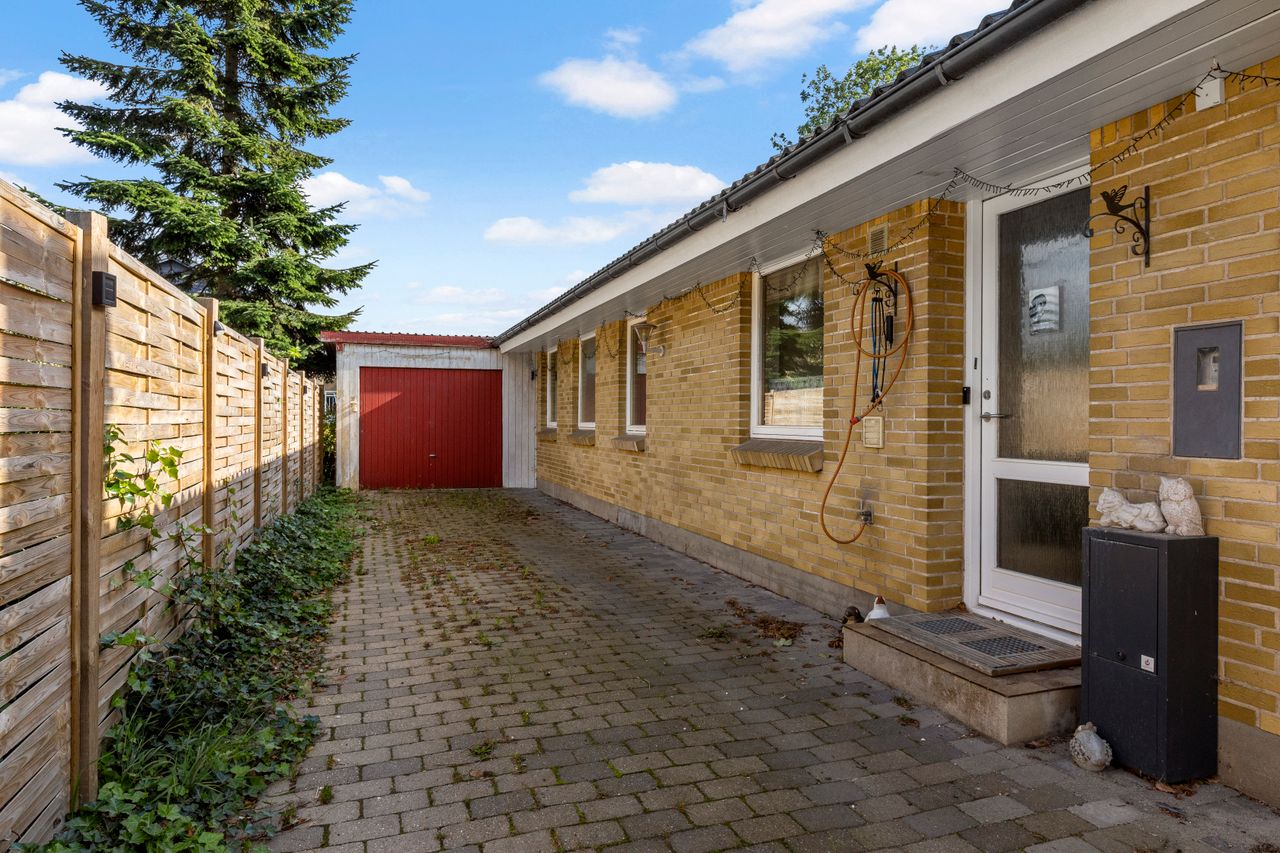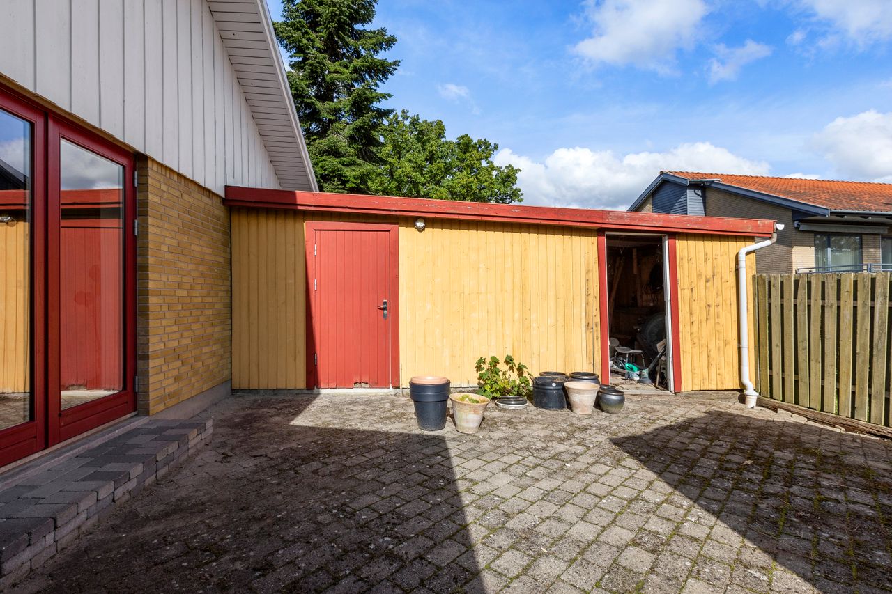 Opført i 1981 i gule mursten med betontagsten.