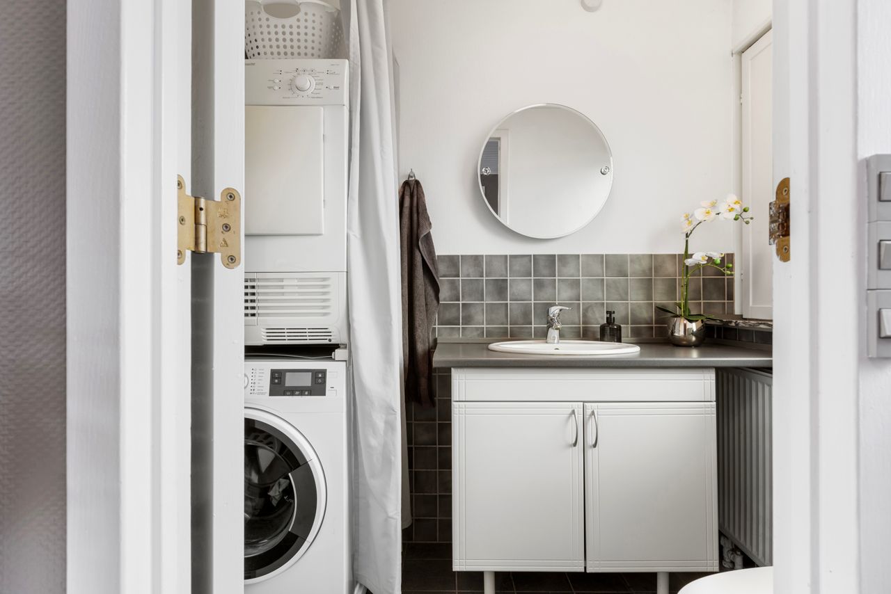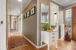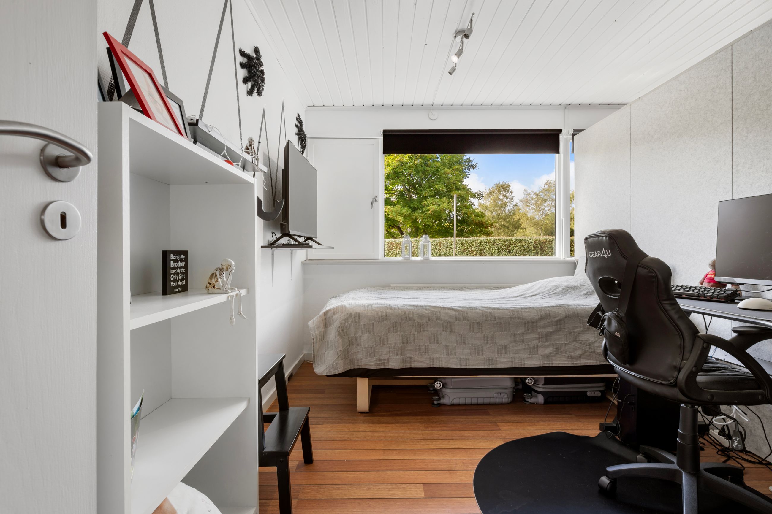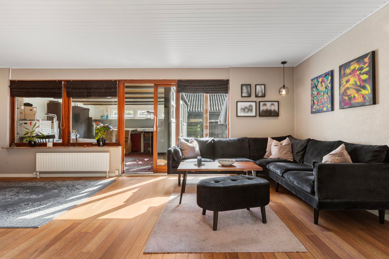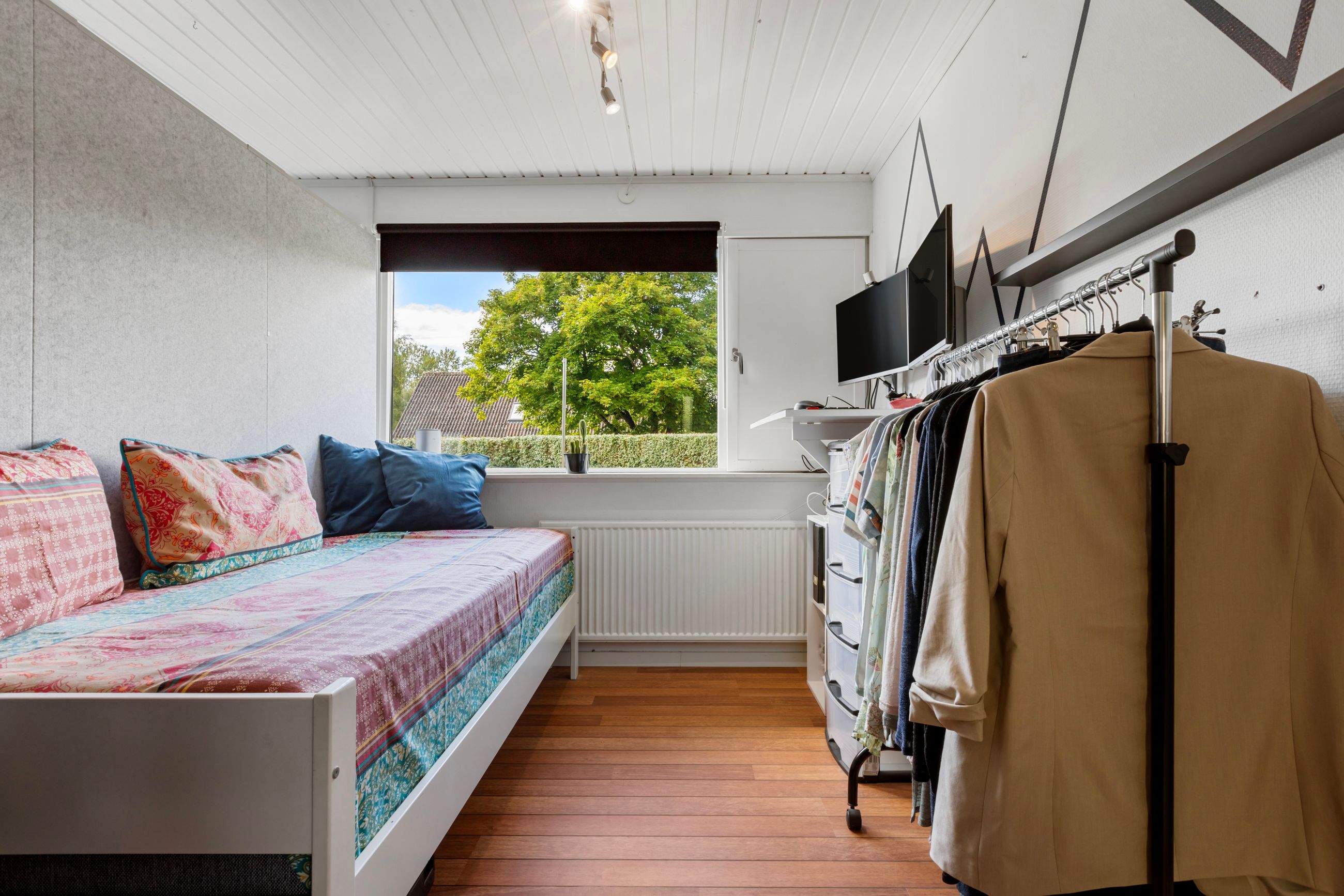 Bryggers/fyrrum med indgang, håndvask og skabe, ca. 9 år gl. sort køkken med god spiseplads, spisestue med udgang til udestue - lys opholdsstue med brændeovn, entre / fordelingsgang, stort værelse med skabe (tidligere 2 værelser), soveværelse med skabe, værelse med skabe, ca. 9 år gl. pænt badeværelse med bruser, wc, hvidt skabsarr. med håndvask og gulvvarme samt pænt toilet med wc, skabsarr. med håndvask, installation til vaskemaskine og tørretumbler samt gulvvarme.