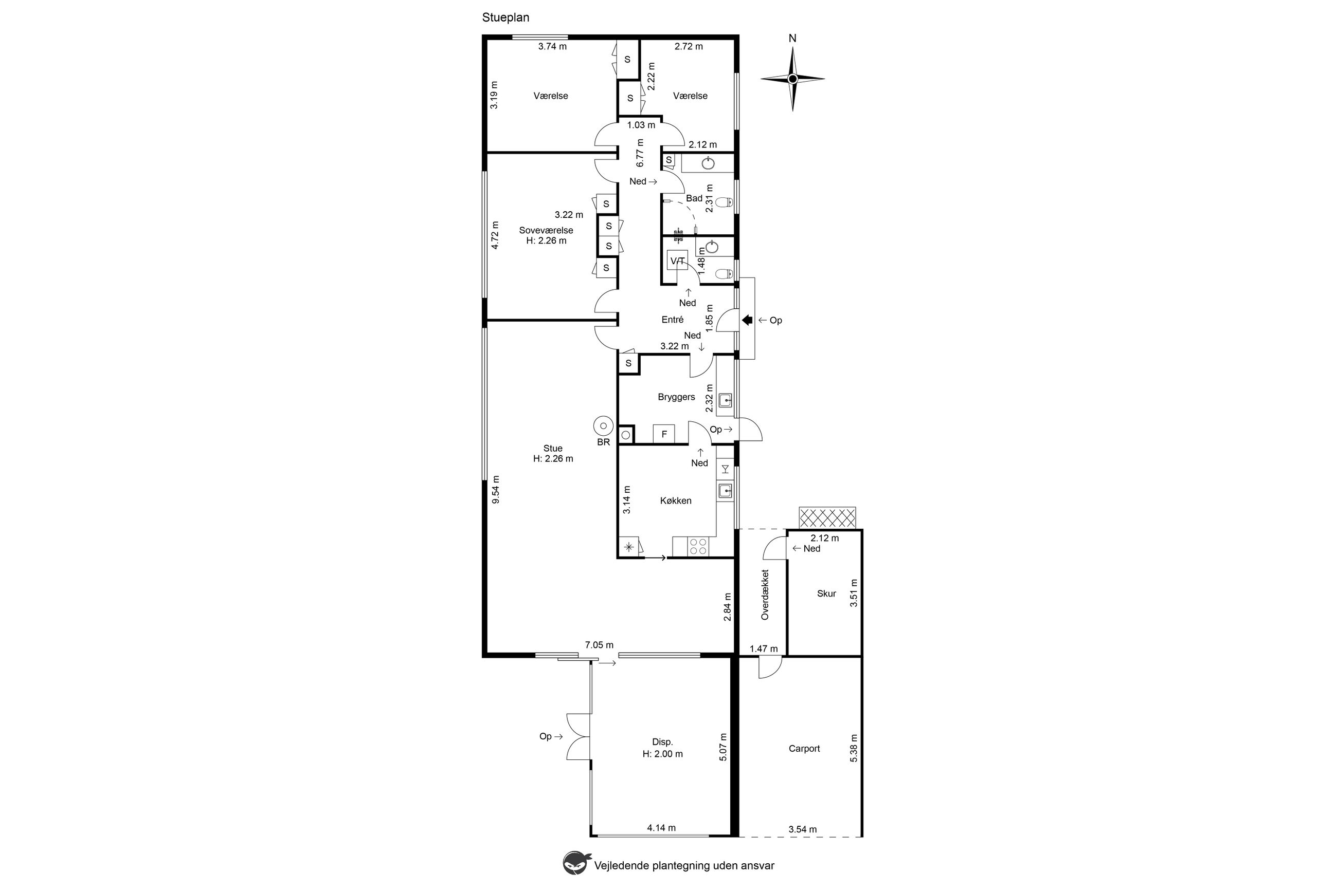 140 kvm bolig + 31 kvm carport + 6 kvm udhus + udestue på xx kvm (ej anmeldt og godkendt)