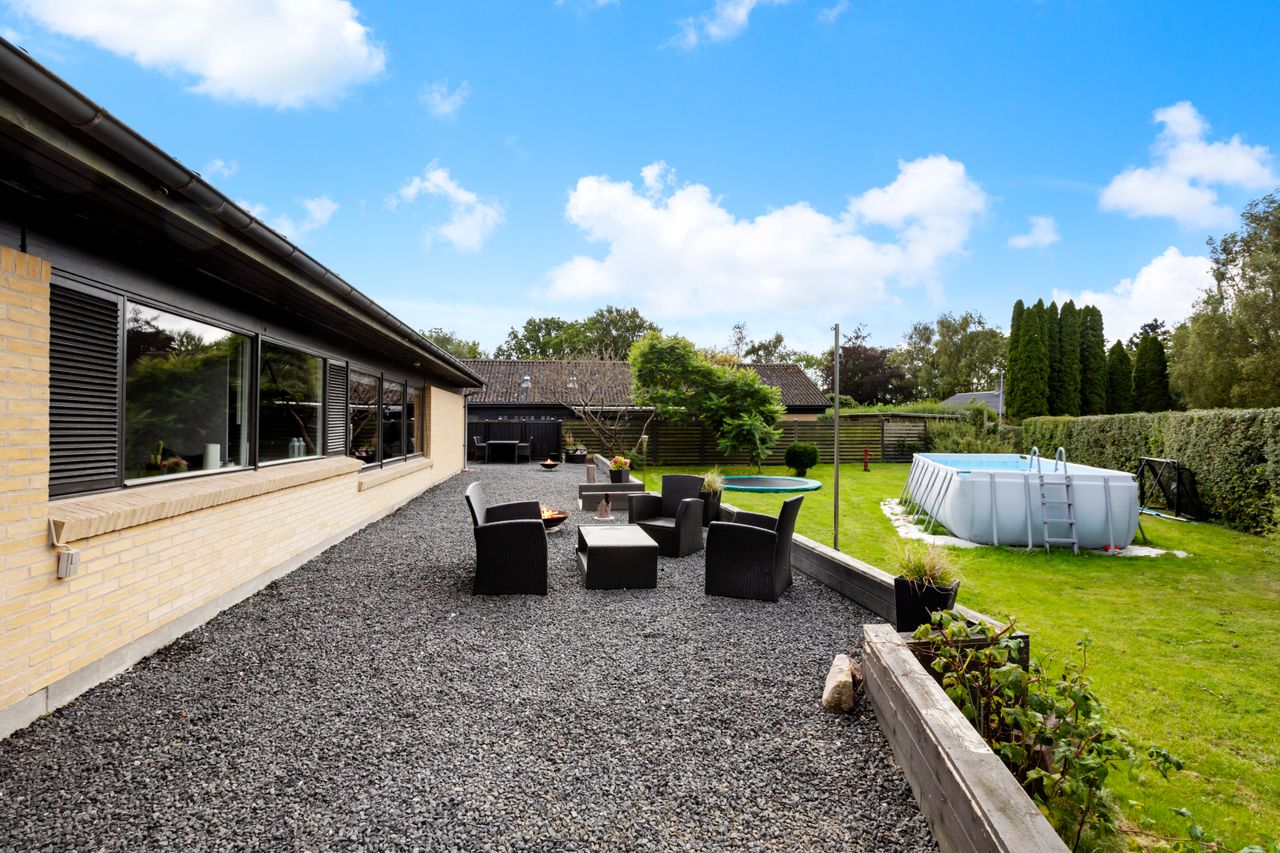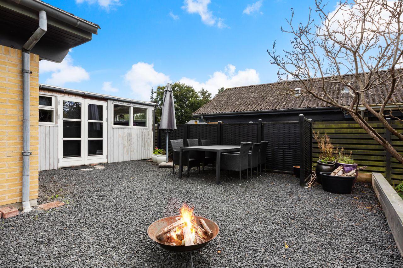 827 kvm velanlagt hyggelig grund med flere terrasser og opholdssteder, bålplads, græsplæne m.v.