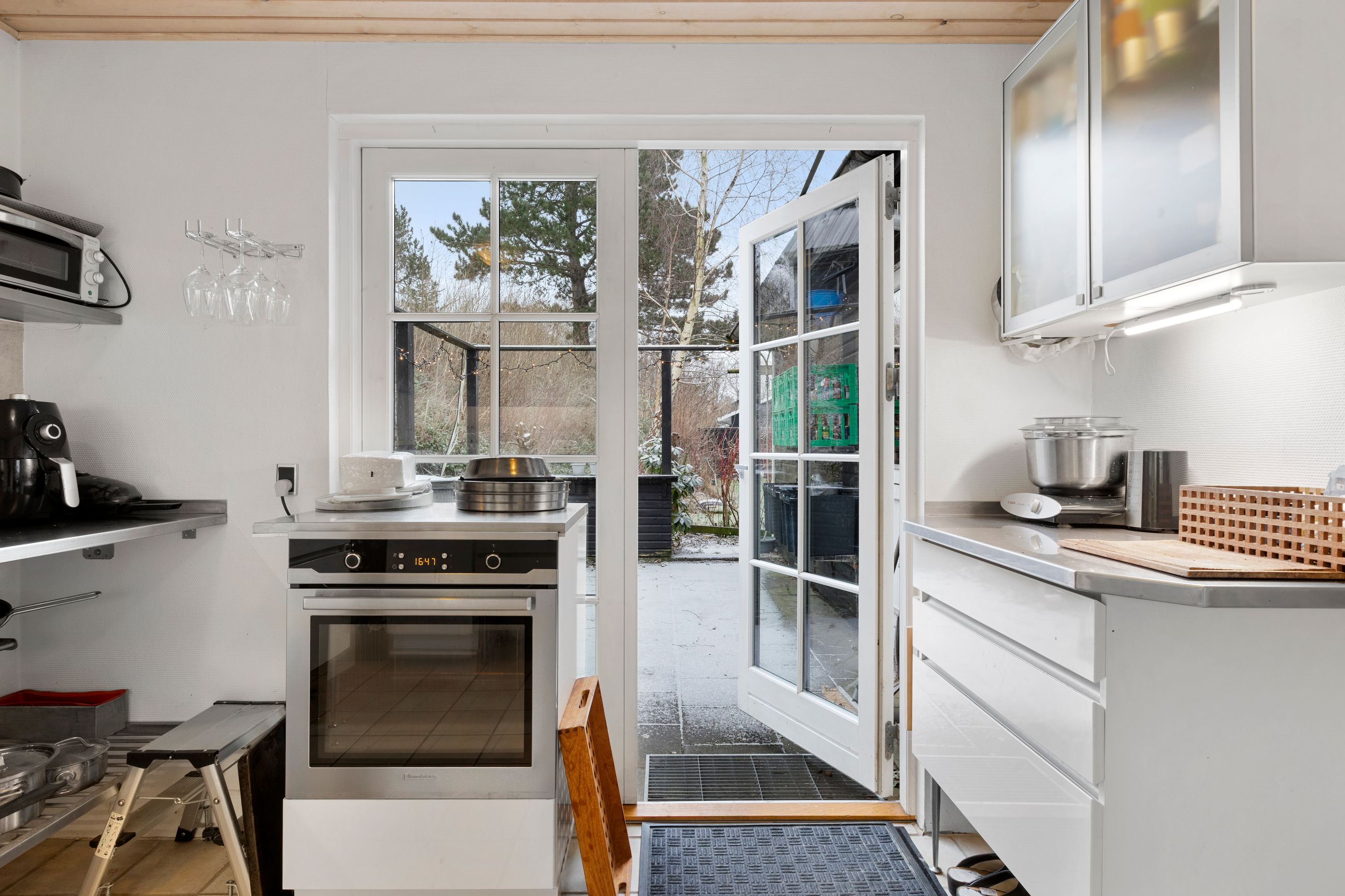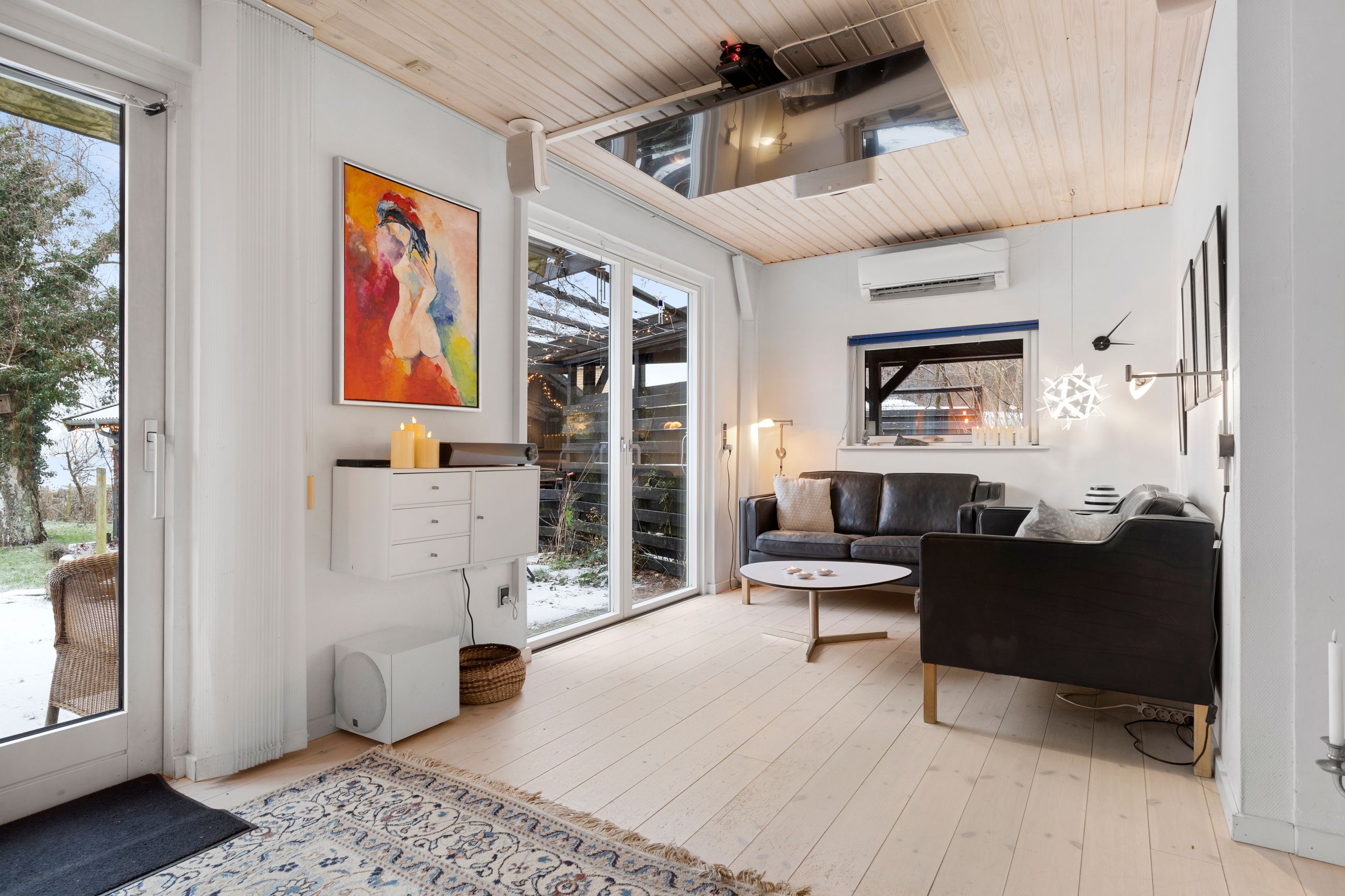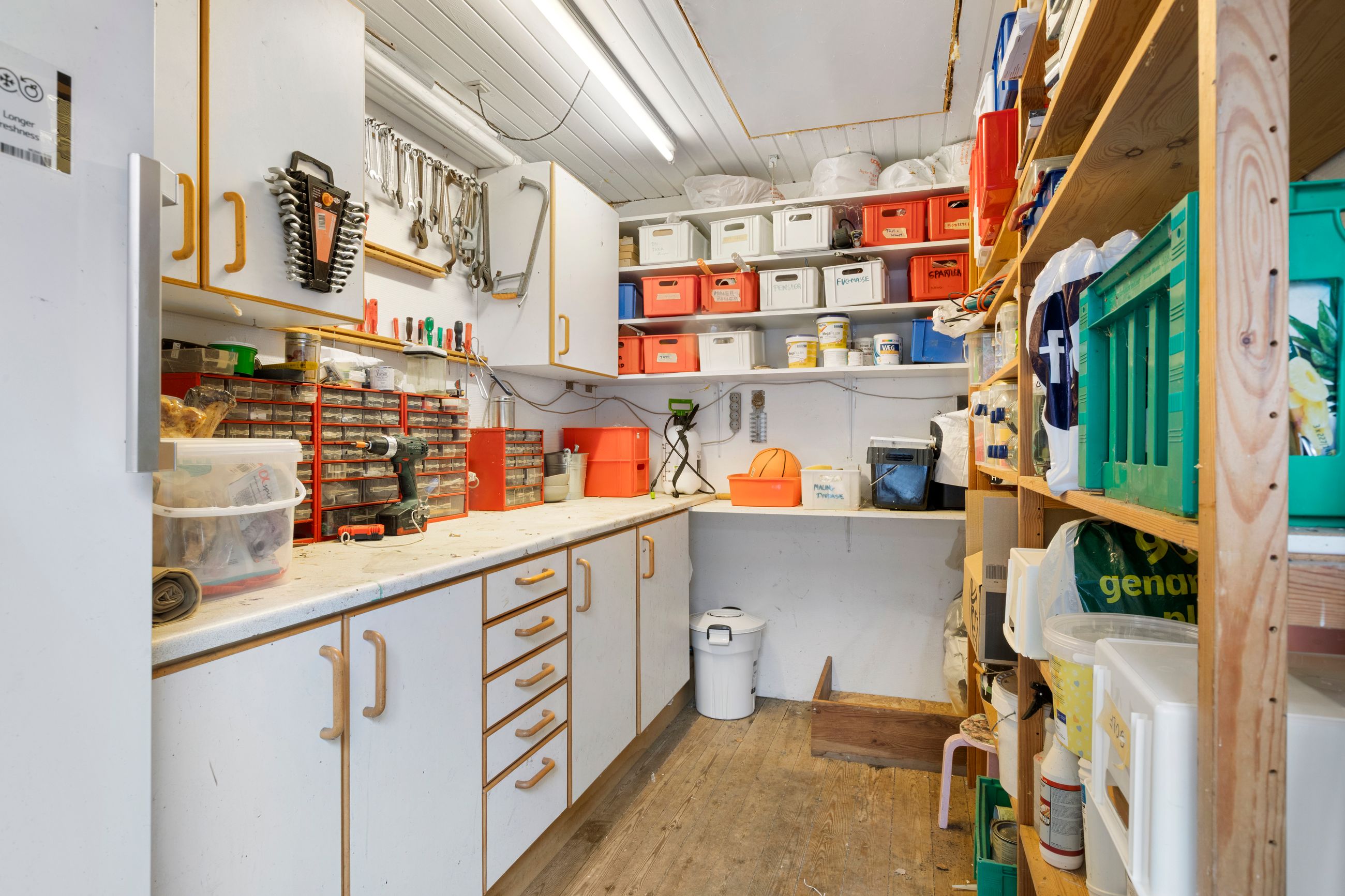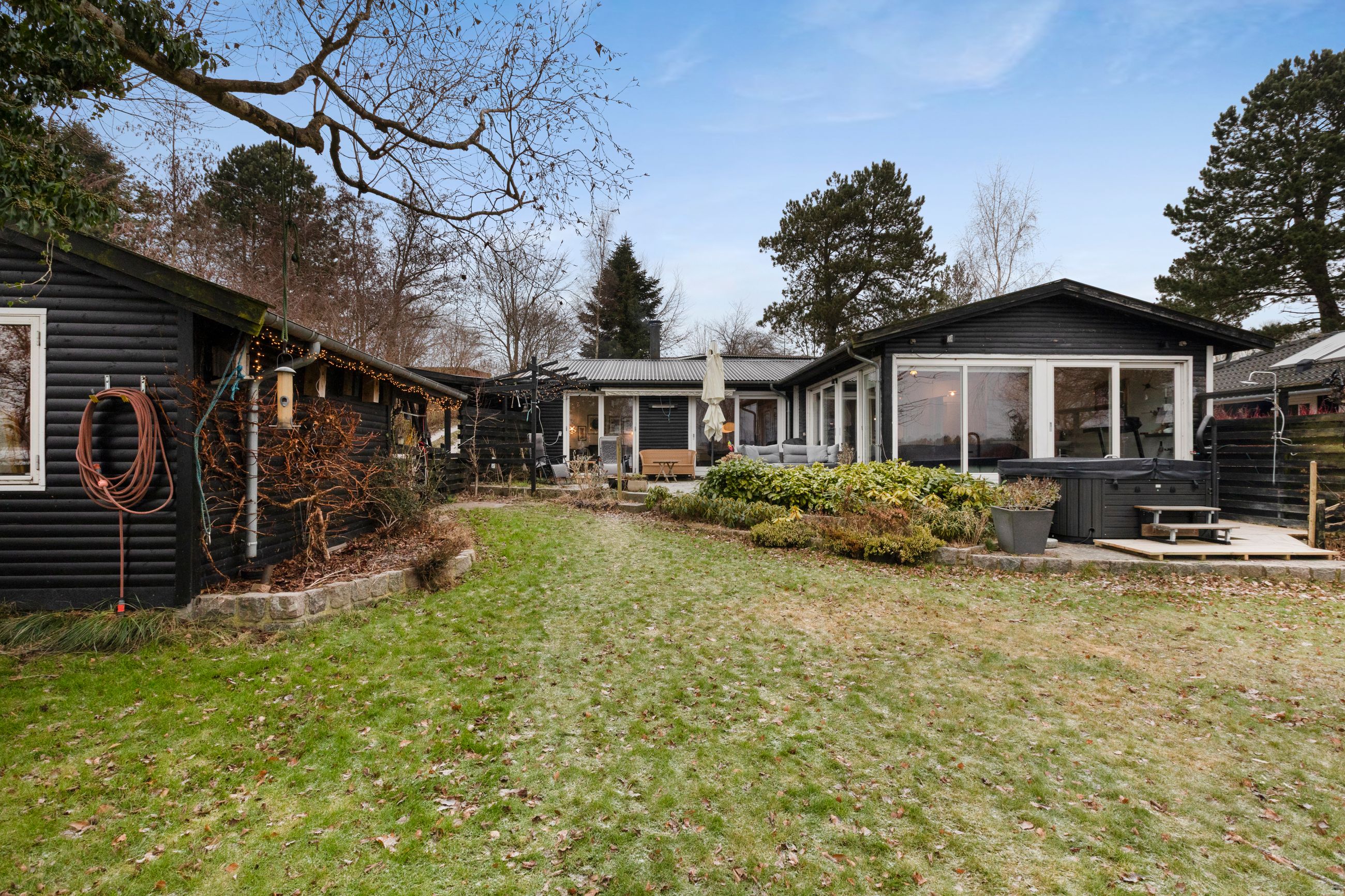 147 kvm bolig + 34 kvm carport med indbygget atelier + 26 kvm carport + 32 kvm udhus (isoleret container)+ 11 kvm overdækning