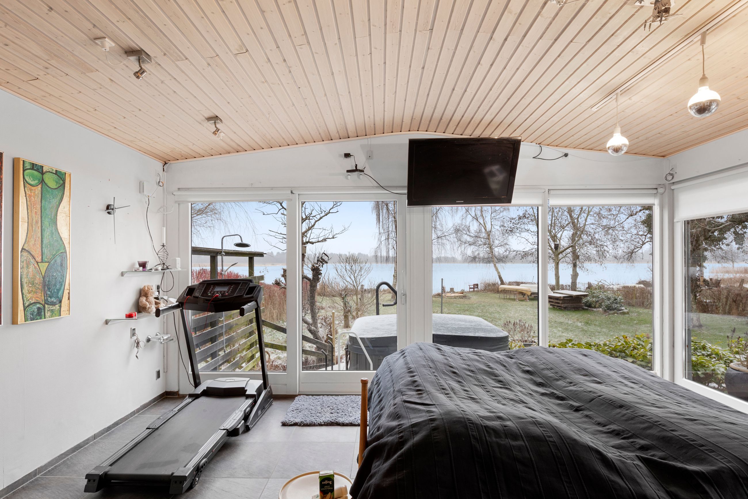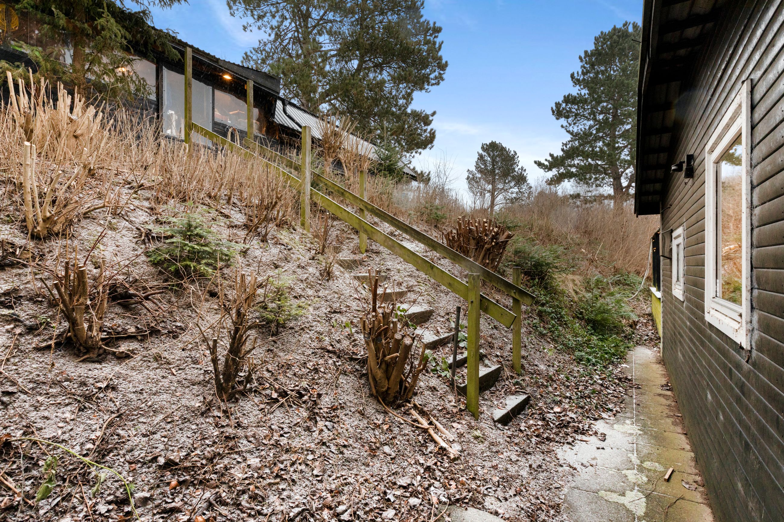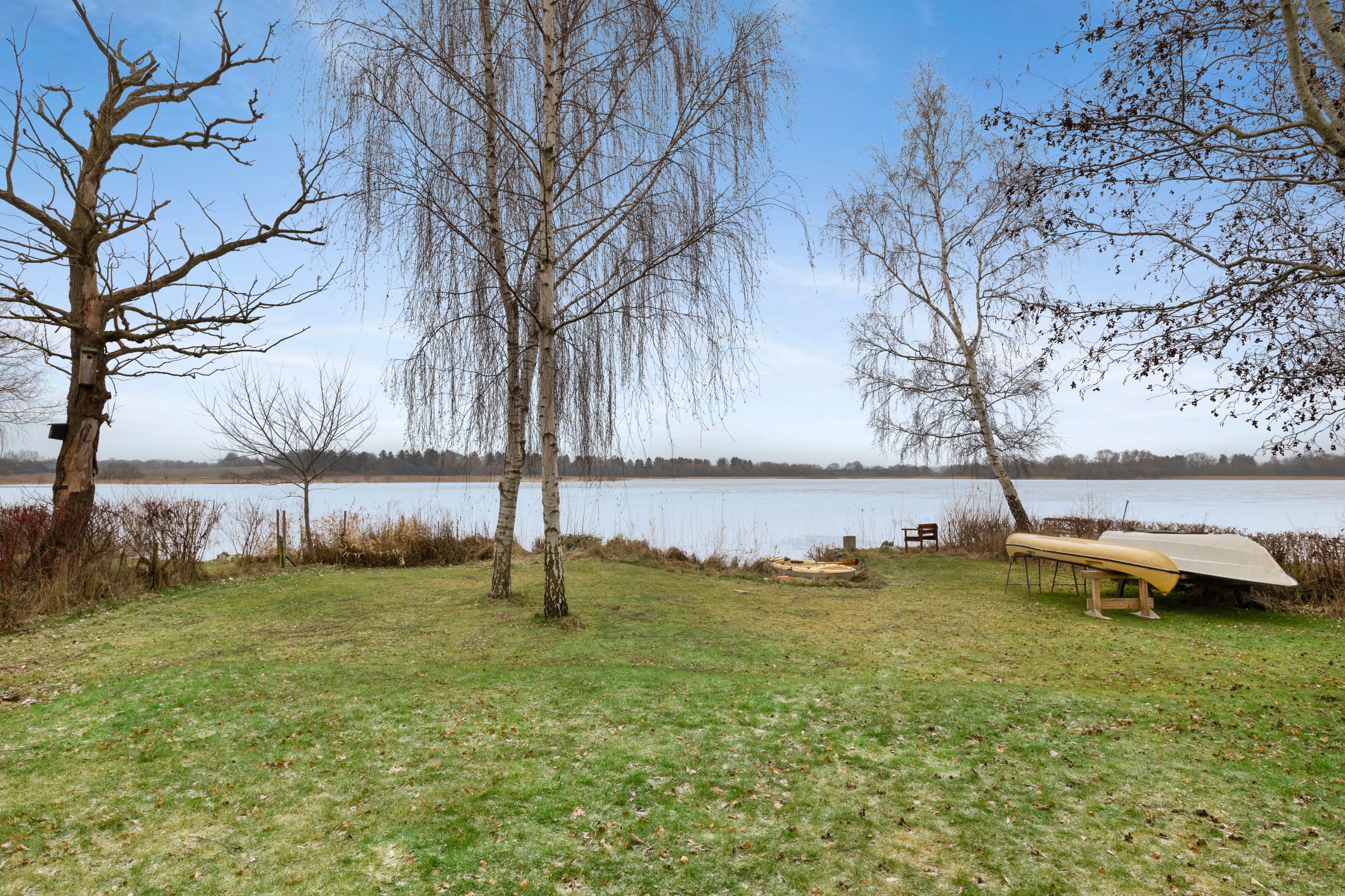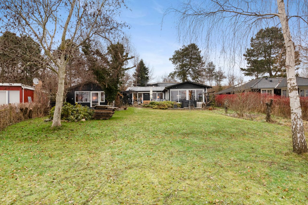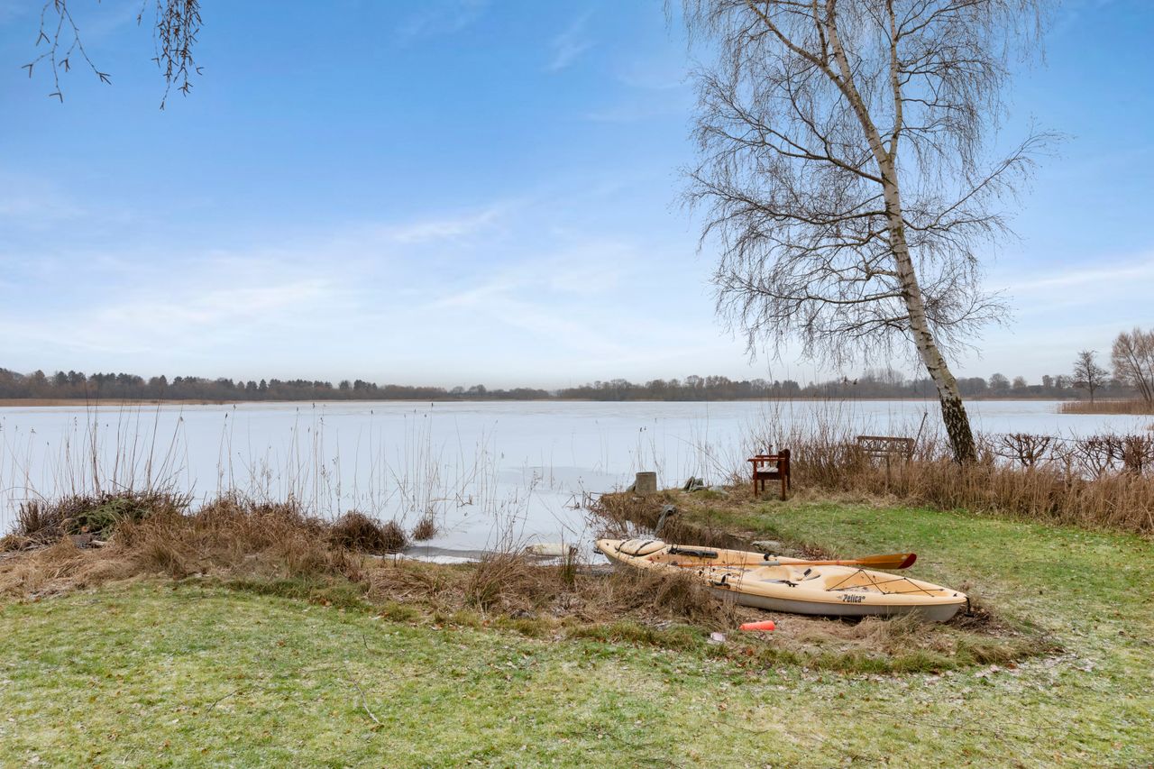 Beliggende på lukket vej i naturskønt område, på kuperet grund ned til søen og tæt på dæmningen med oplevelsesstien.