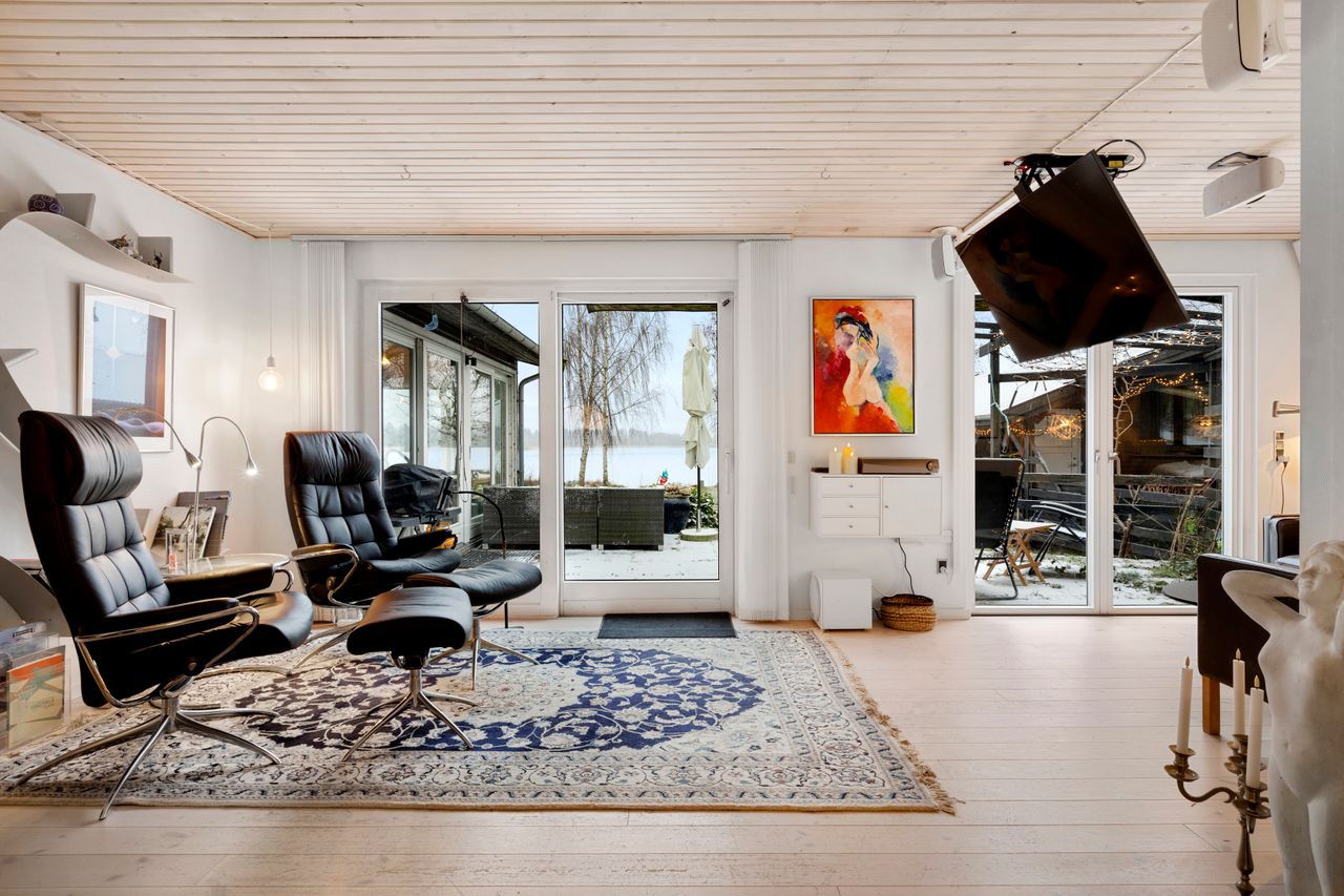 Sjælden udbudt stor vel-indrettet 1 plans fritidshus opført i 1993 og 2009 - 1.række med fantastisk udsigt over søen
