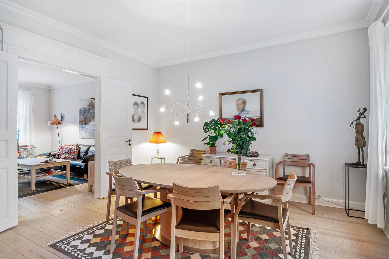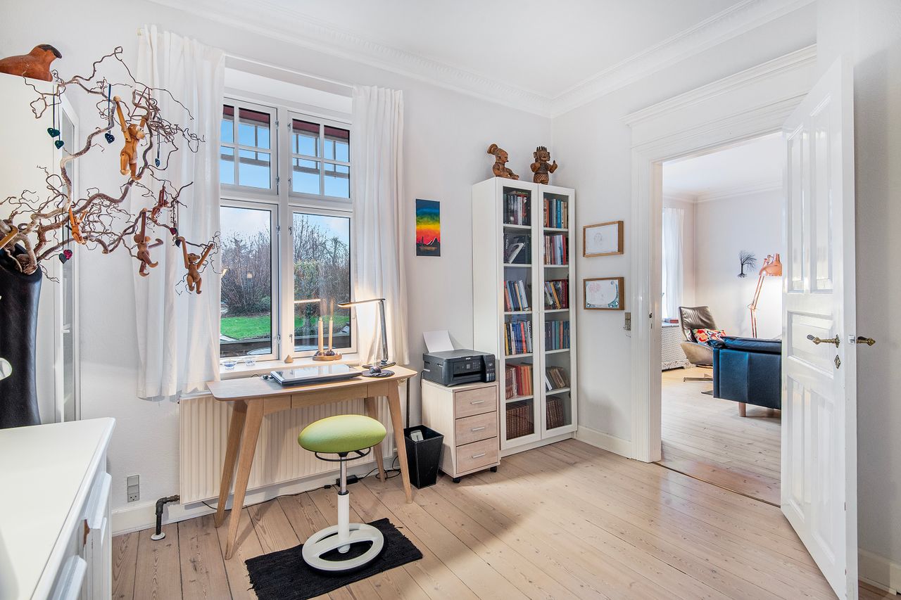 køkken samt tre smukke stuer en suite – stuerne har smukke plankegulve, fantastisk loftshøjde,