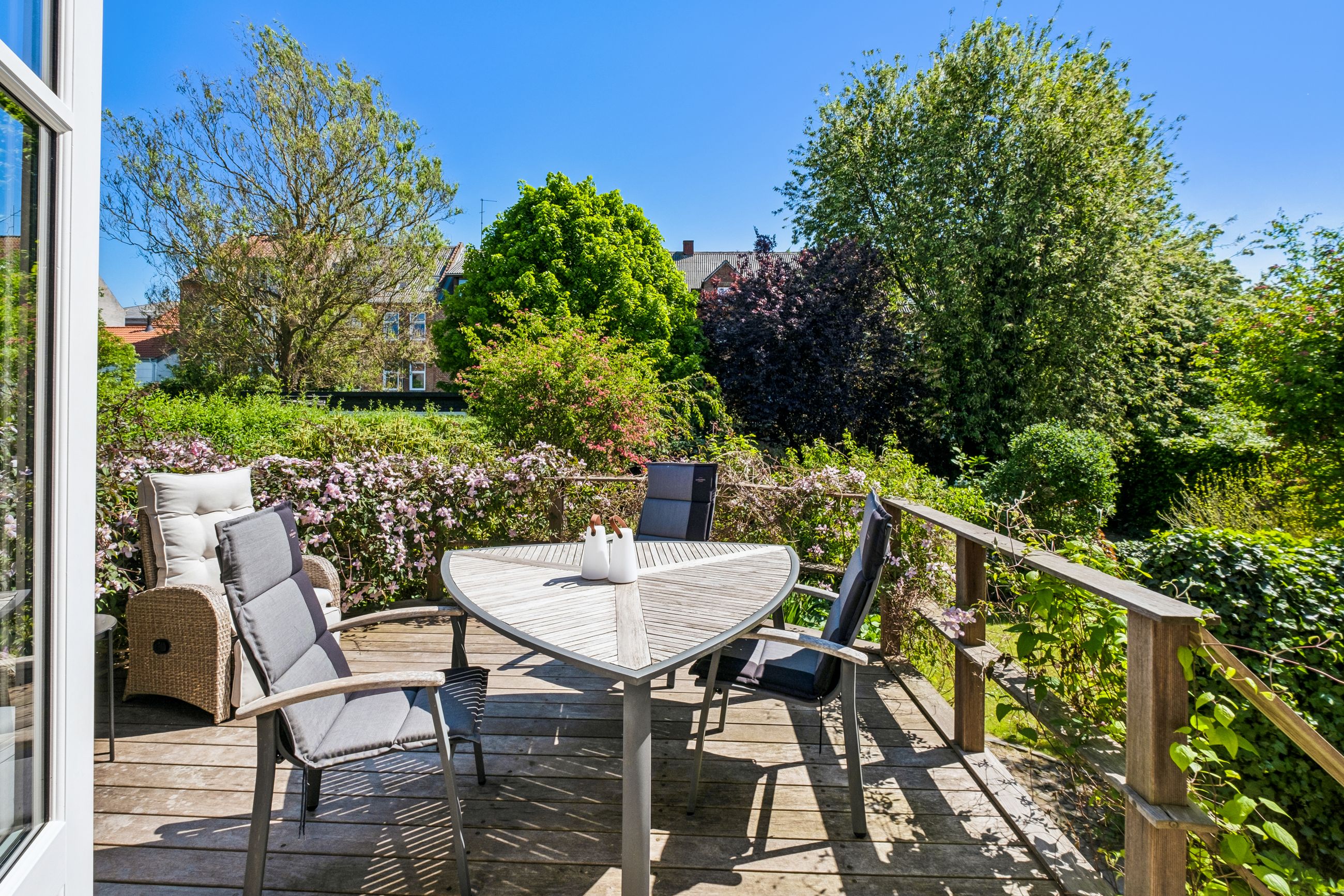 hyggekroge og flere forskellige terrasser, hvoraf den hævede træterrasse i Ipé-træ ud for spisestuen