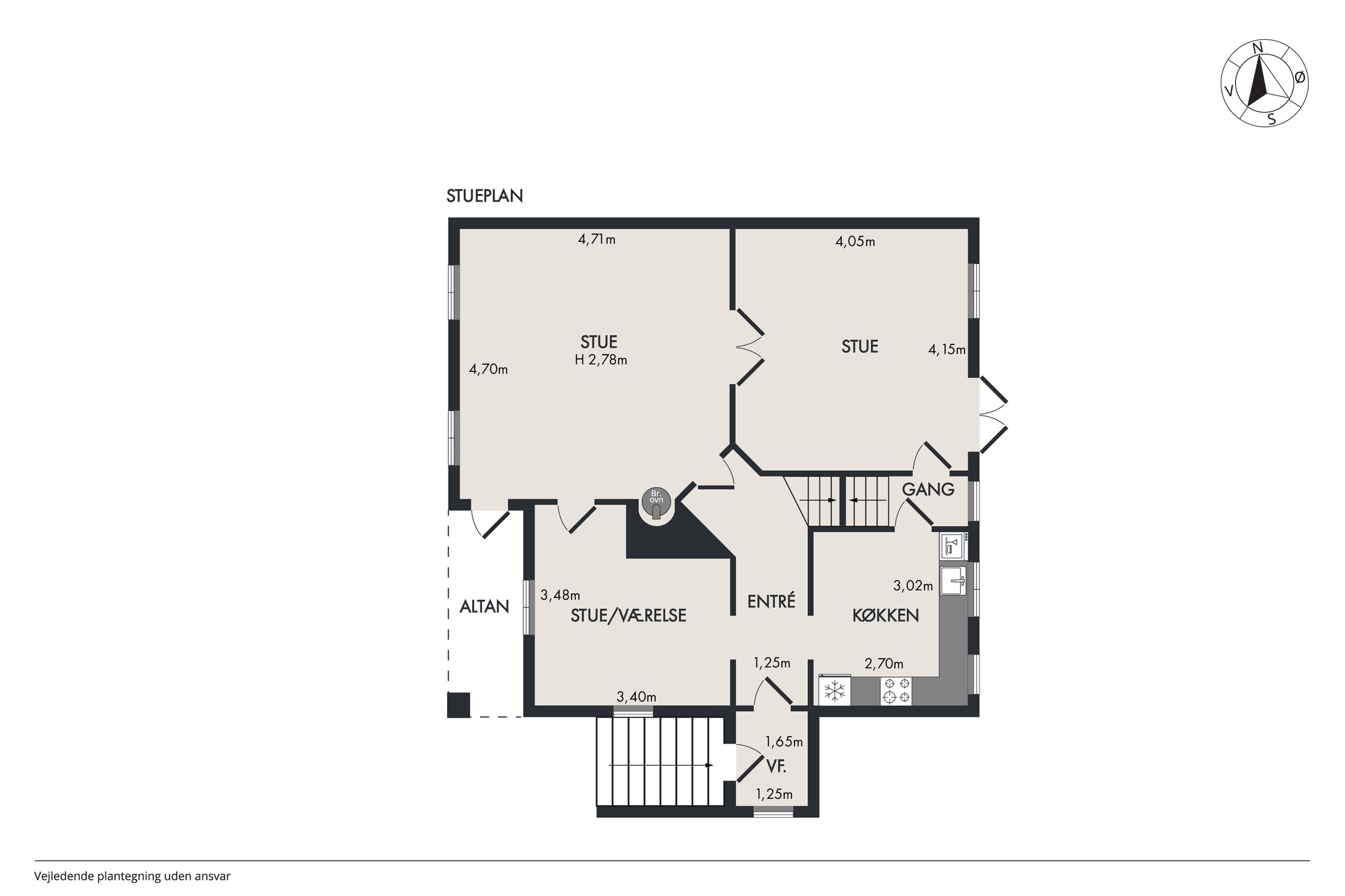 og skal opleves med egne øjne. Stueplan fordeler sig over vindfang, entré, det flotte og funktionelle