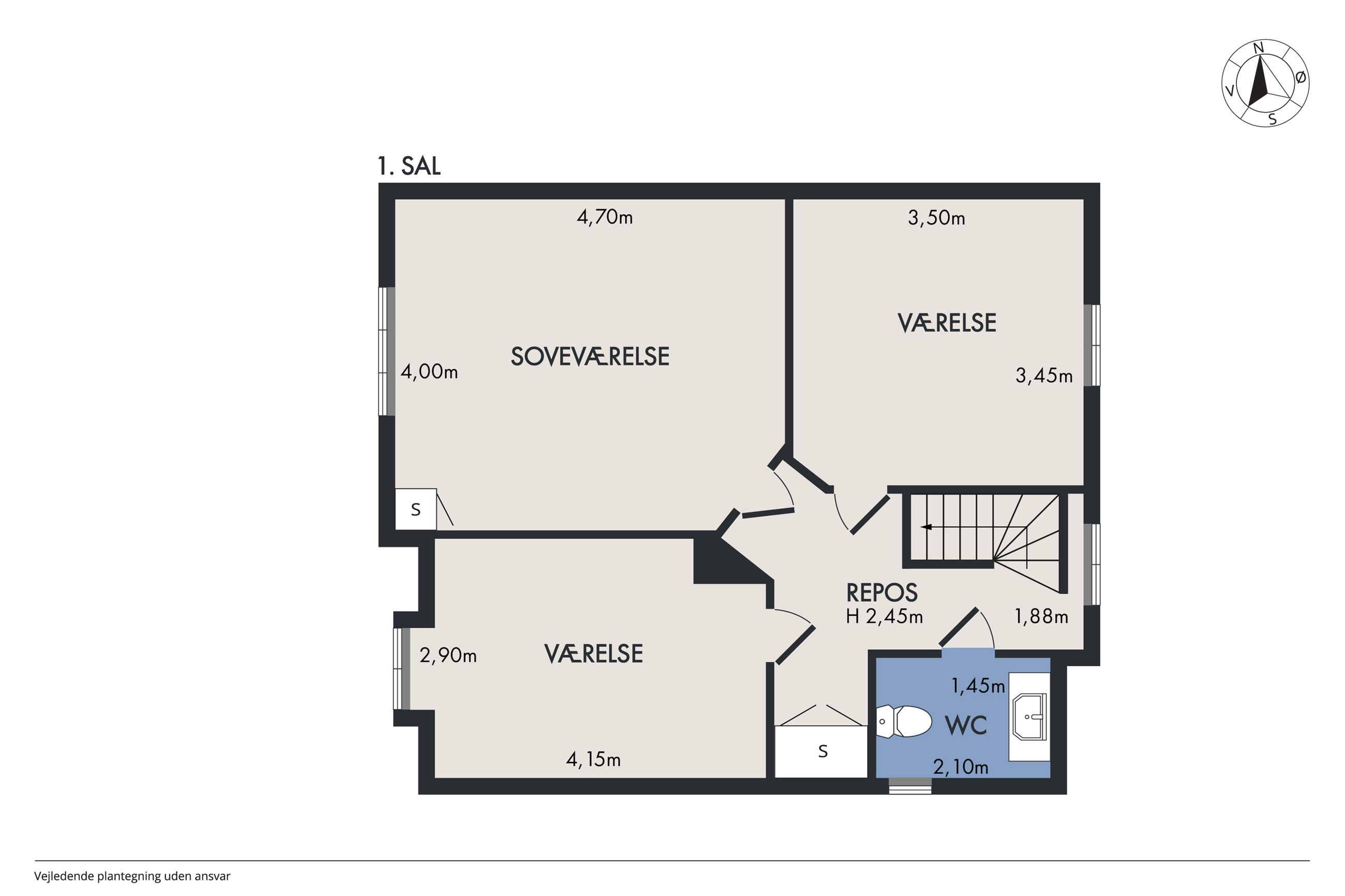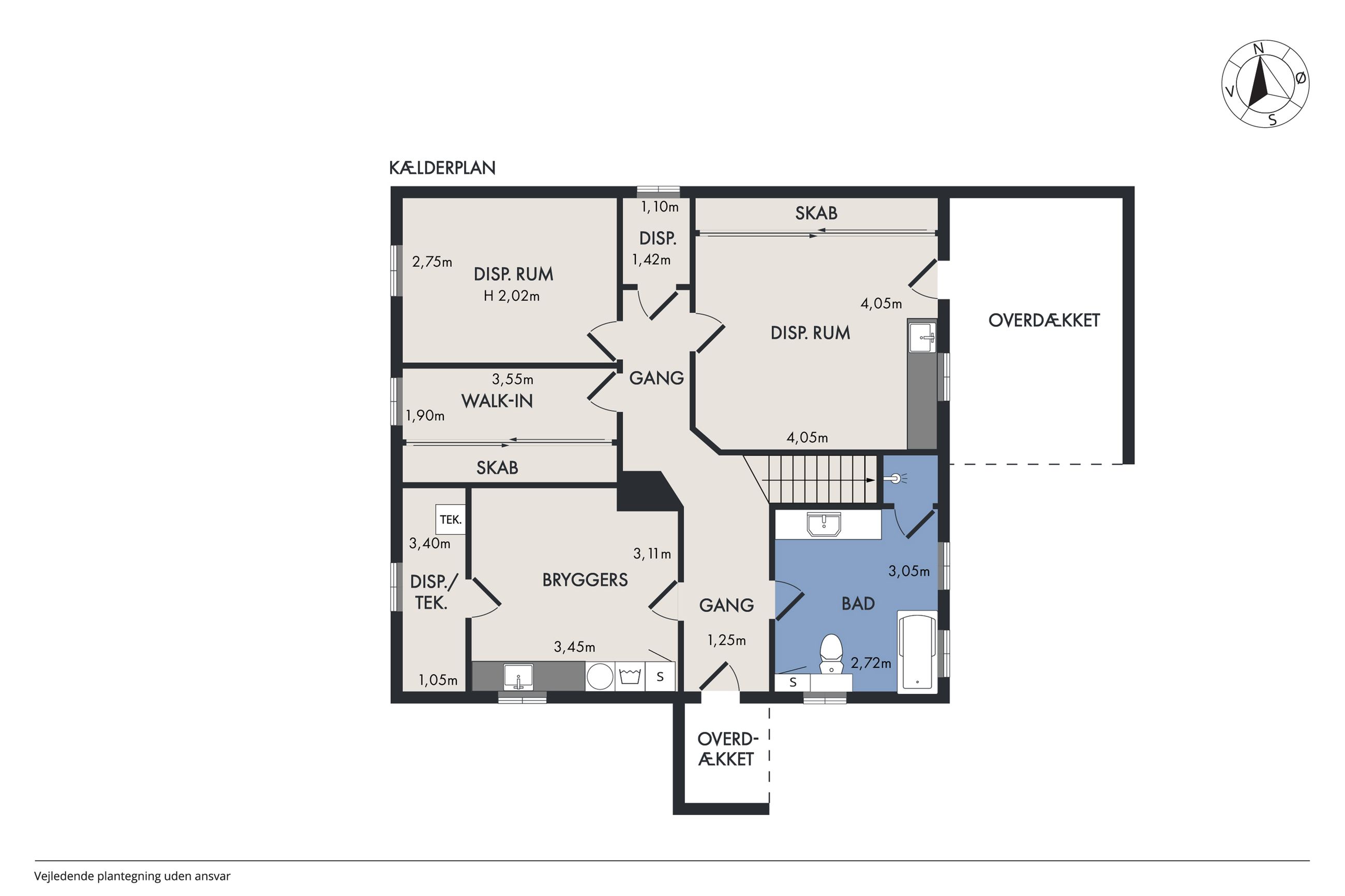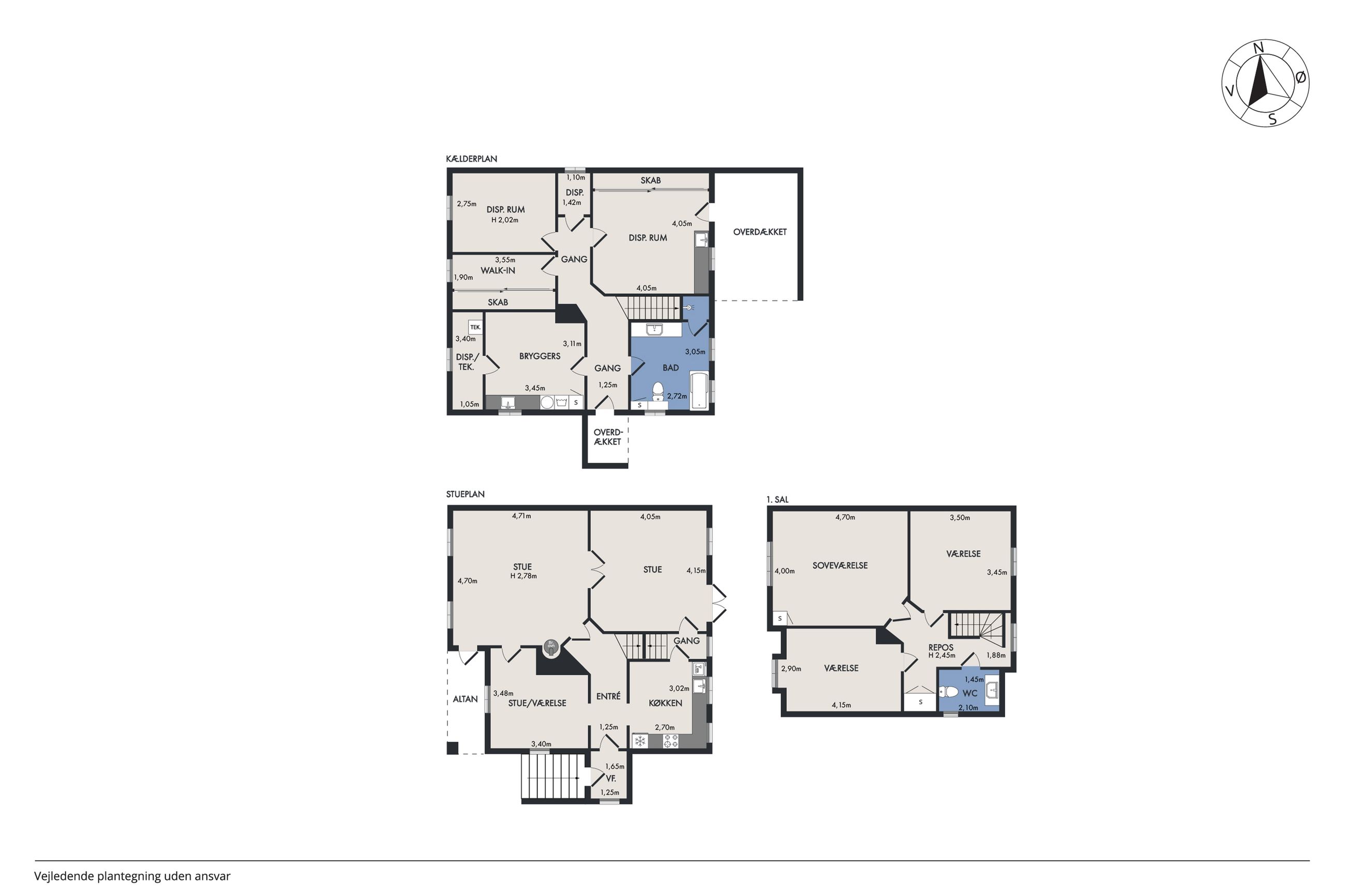 tre store møblerbare værelser, og den gode brugbare kælder på 87 kvm afrunder huset med et stort,
