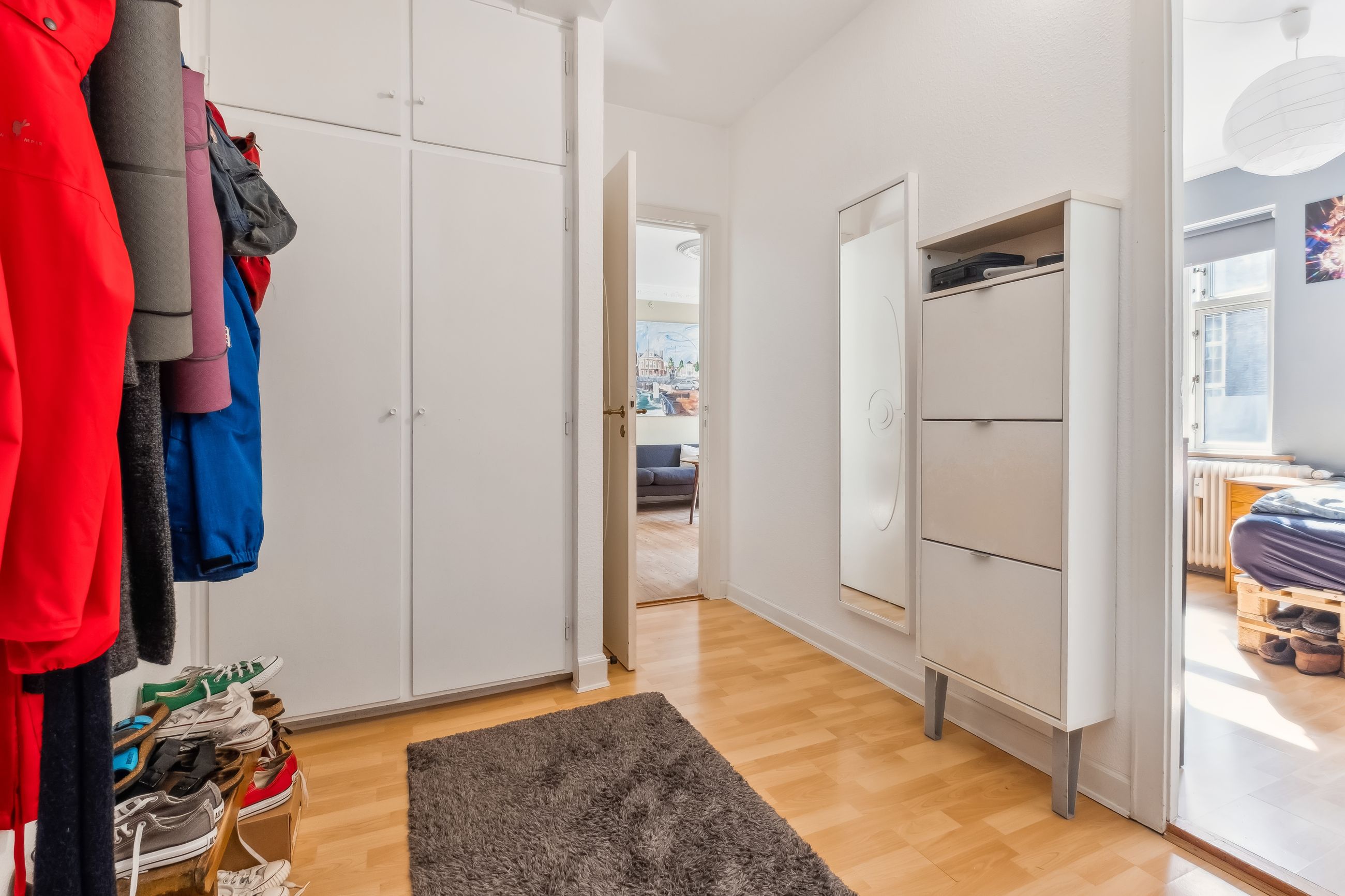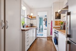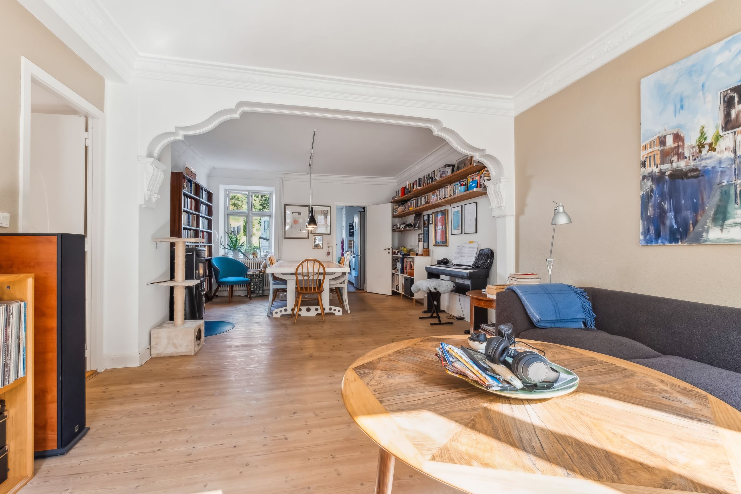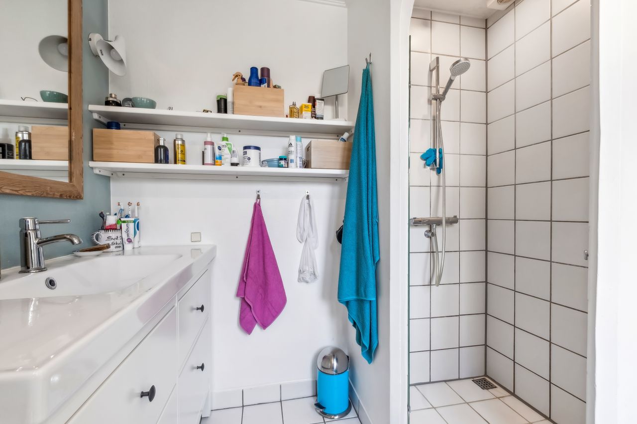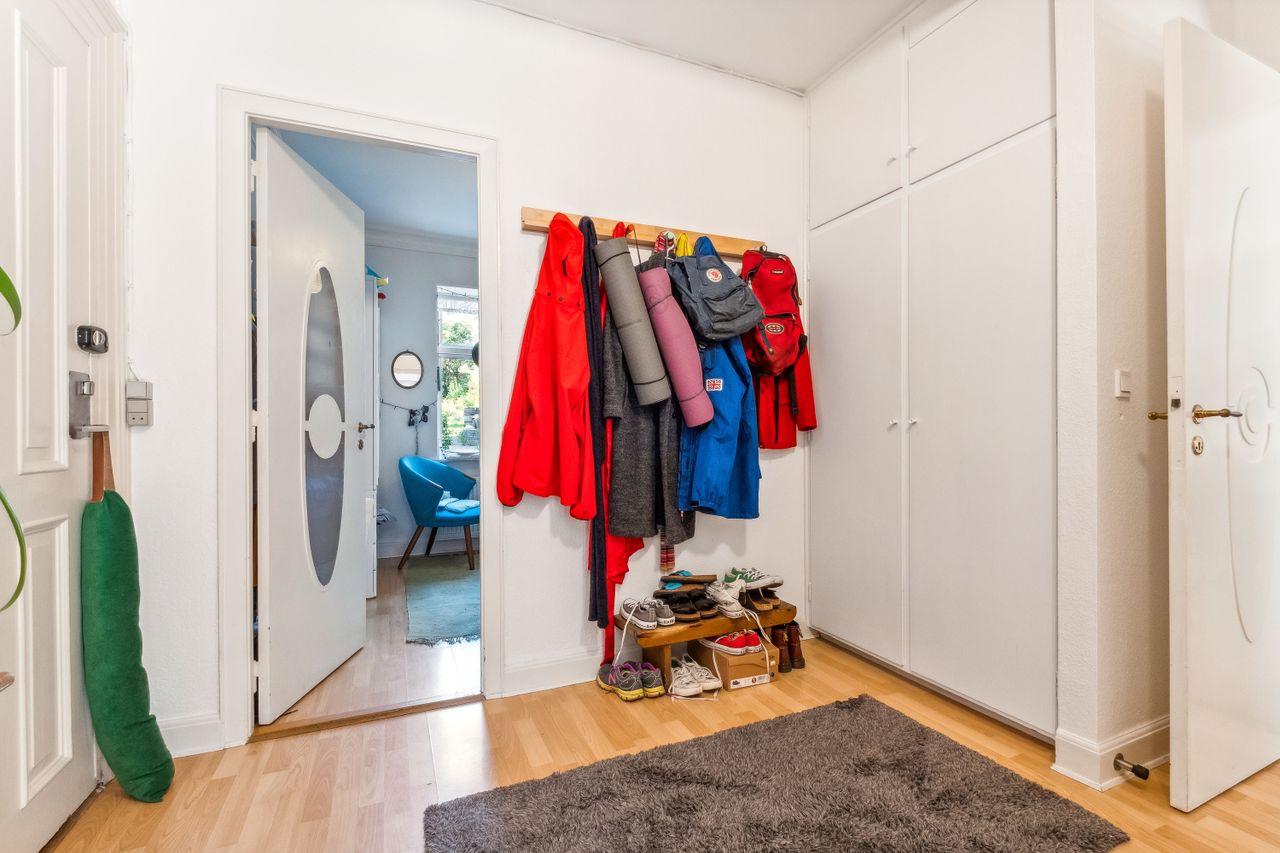 Når du træder ind i lejligheden, bliver du mødt af en rummelig entre med fordeling til lejlighedens 2 gode værelser. Herefter træder du ind i de lyse stuer med god plads og smukke plankegulve. Her er tilmed en praktisk pillebrændeovn. Køkkenet er funktionelt indrettet og med kig til gårdhaven. Fra køkkenet går du i bryggerset som har direkte udgang til den hyggelige gårdhave og installation til vaskemaskine og tørretumbler. I forbindelse med bryggers ligger badeværelset fra 2018 fra Ikea med el-gulvvarme og bruser.