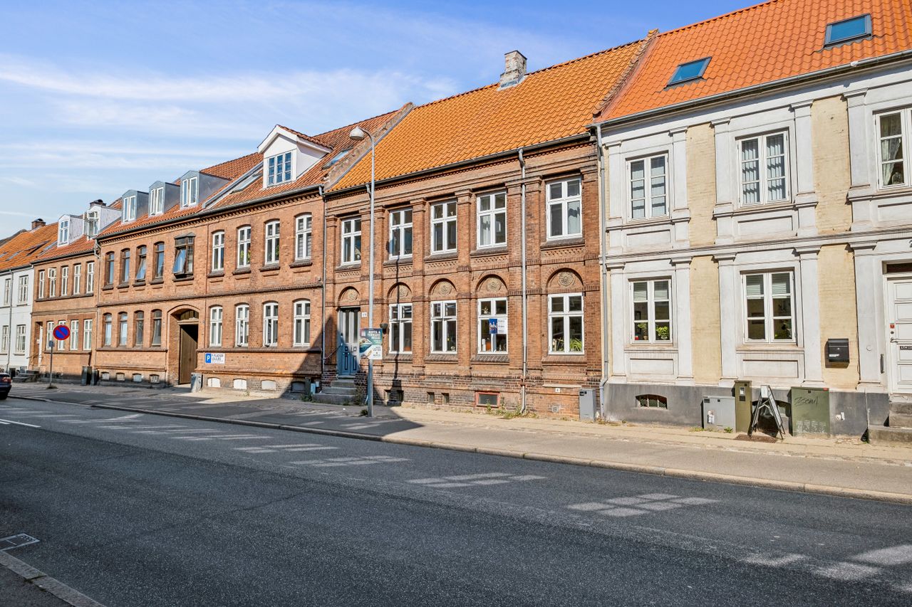 Velkommen til denne skønne ejerlejlighed, beliggende i et gammelt posthus fra 1915. Med en central placering tæt på gågaden, Lunden og fjorden, Langelinie og lystbådehavnen, tilbyder denne bolig en perfekt kombination af historisk charme og moderne bekvemmeligheder. Lejligheden byder på hele 112 m2 bolig samt en meget anvendelig kælder på 50 m2 og et opvarmet disponibelt rum på 10 m2 med adgang fra gårdhaven.