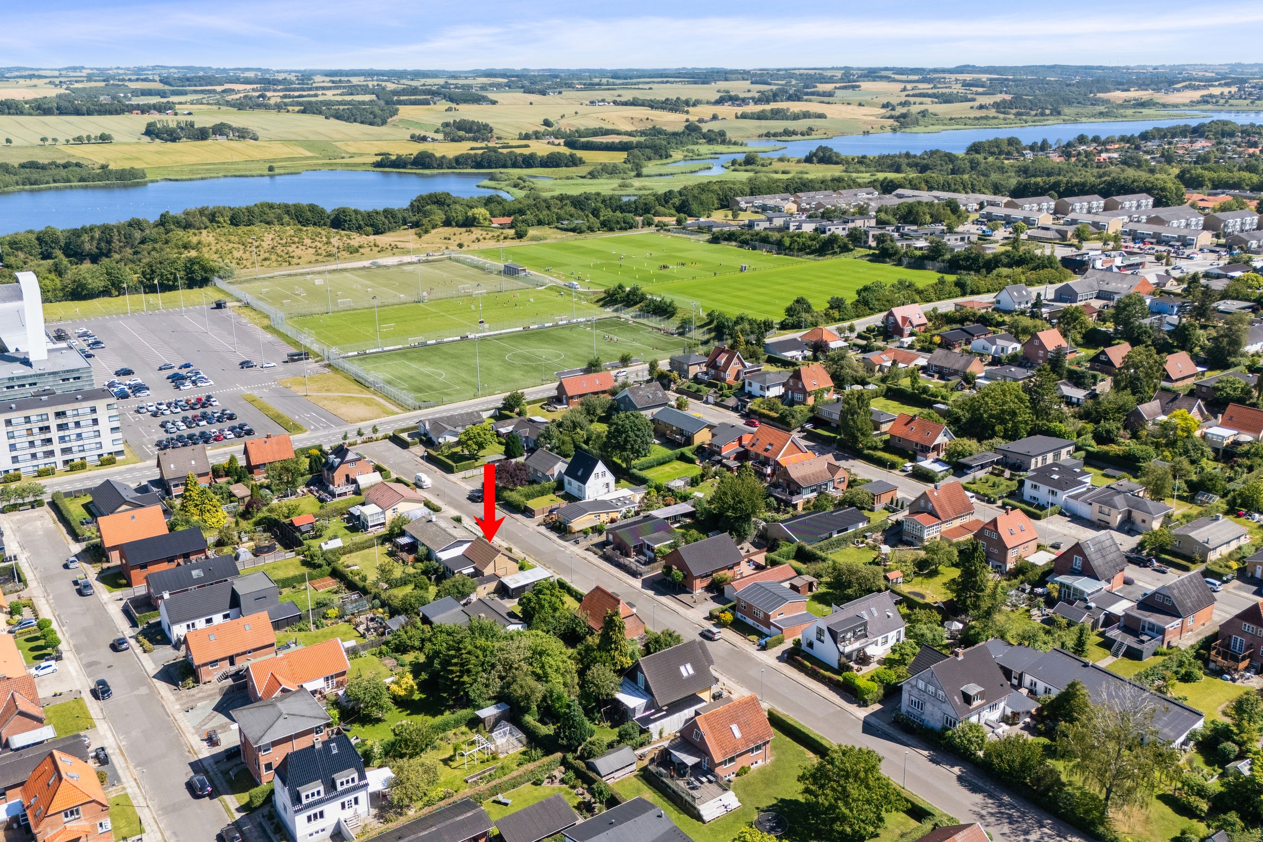 Beliggenheden er i top – du bor centralt med kort afstand til både banegården, indkøb, byliv og kulturelle tilbud. Samtidig er du tæt på grønne områder som Nørrestrand, der indbyder til gåture, løbeture og naturoplevelser. Området er populært og kendt for sin rolige atmosfære og gode naboskab.