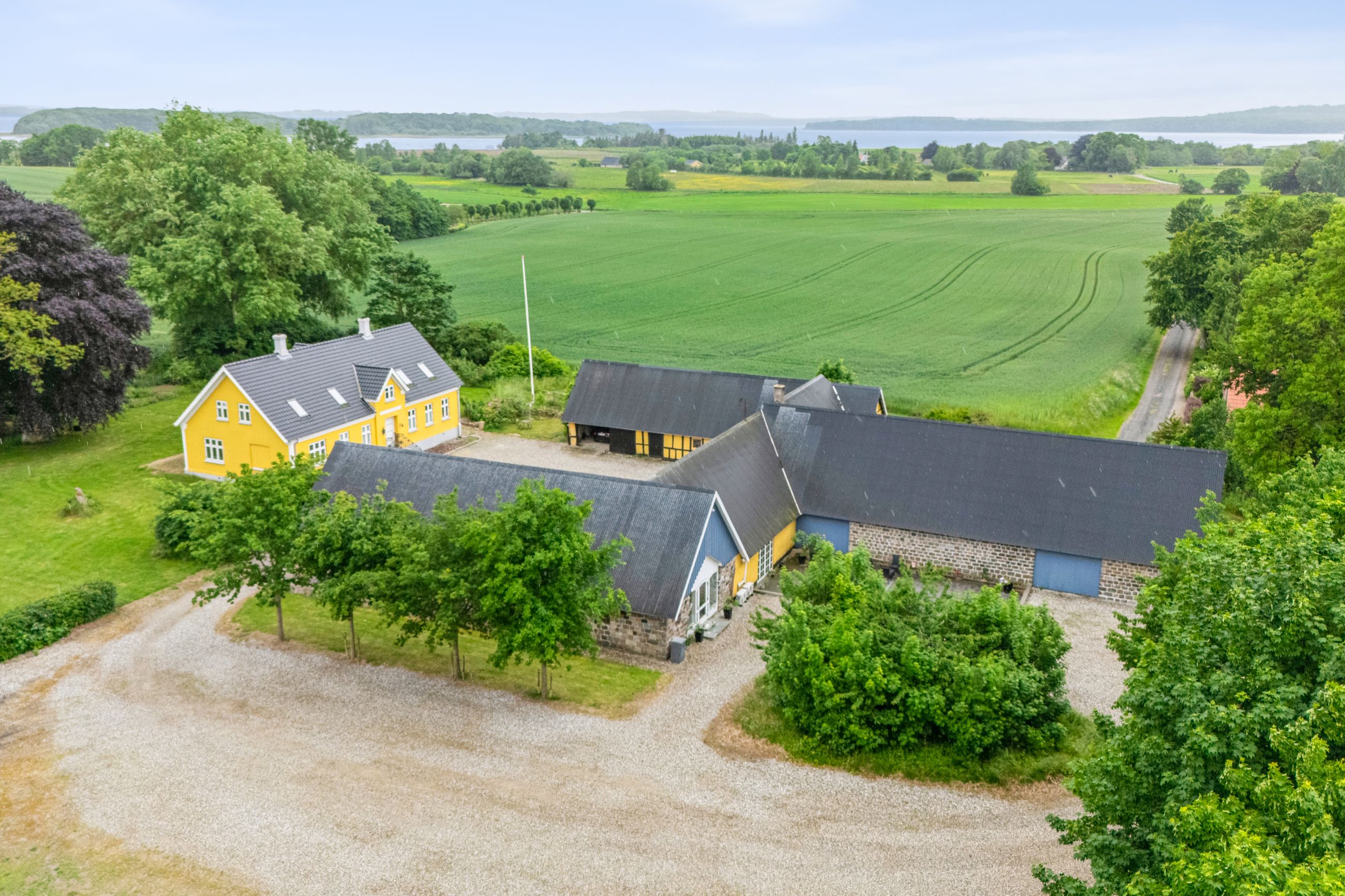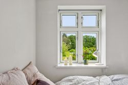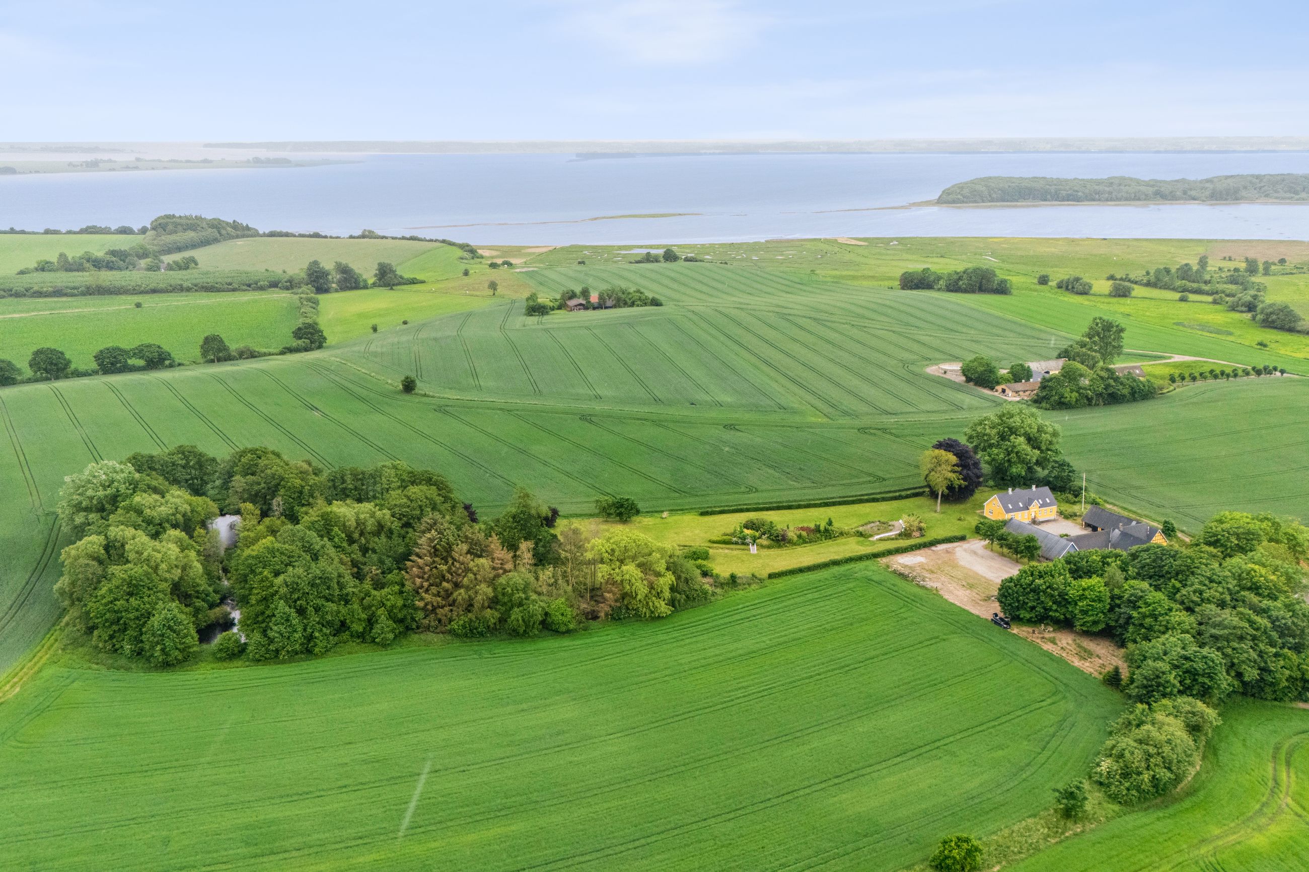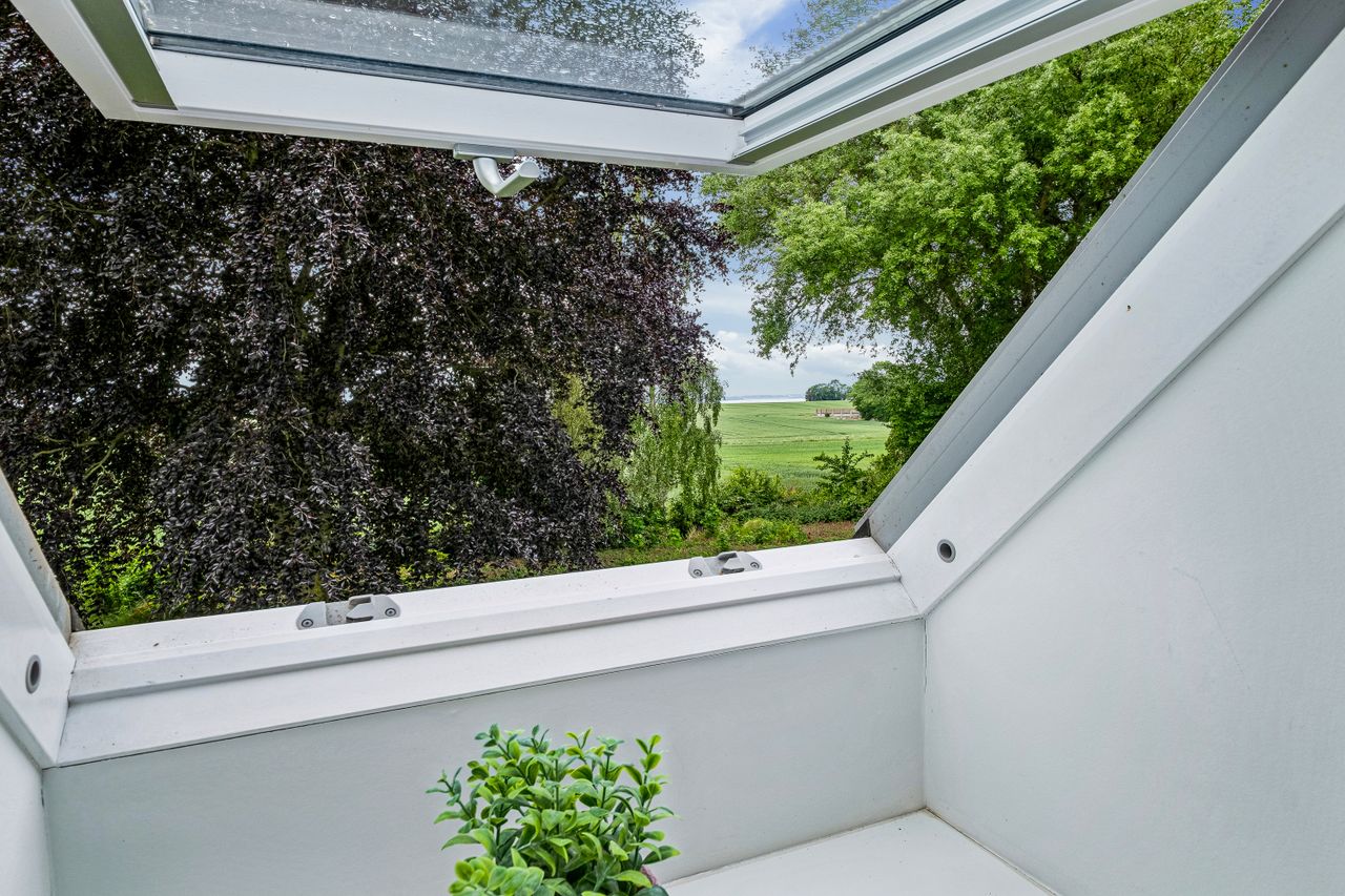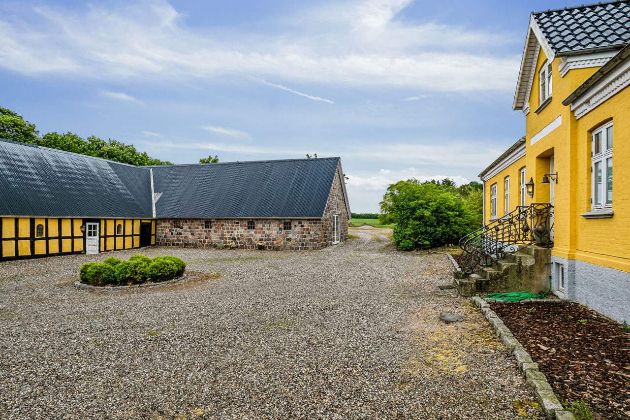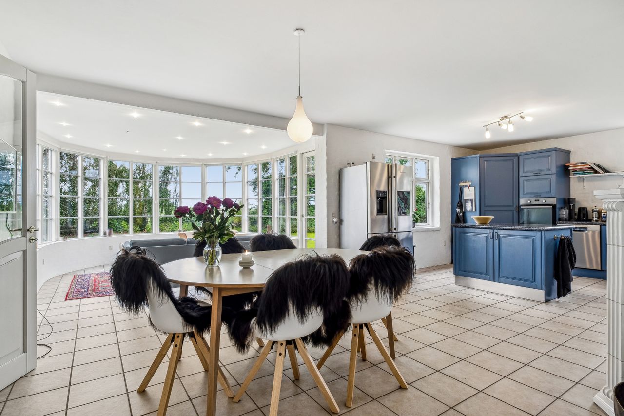 Fra ejendommen er der også kig over fjorden og haven og området i sig selv skal opleves. Til ejendommen er der også et stort jordareal der grænser ned mod fjorden.