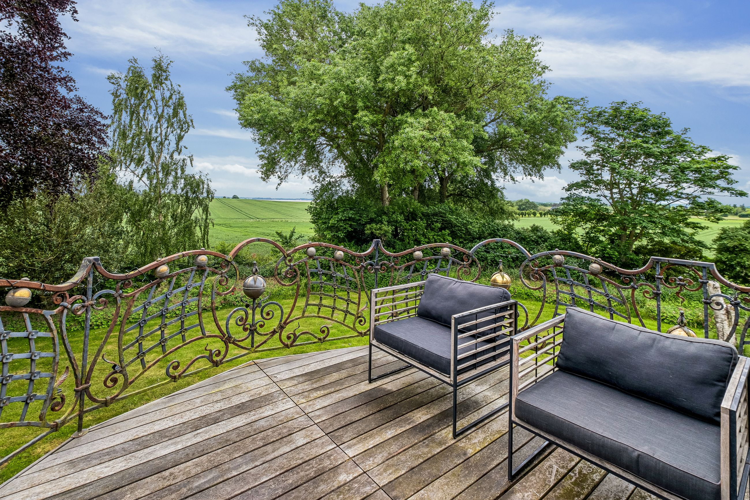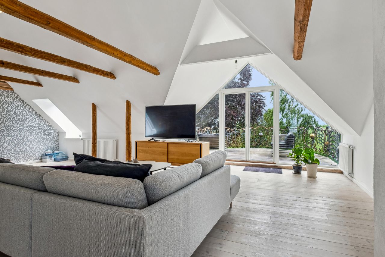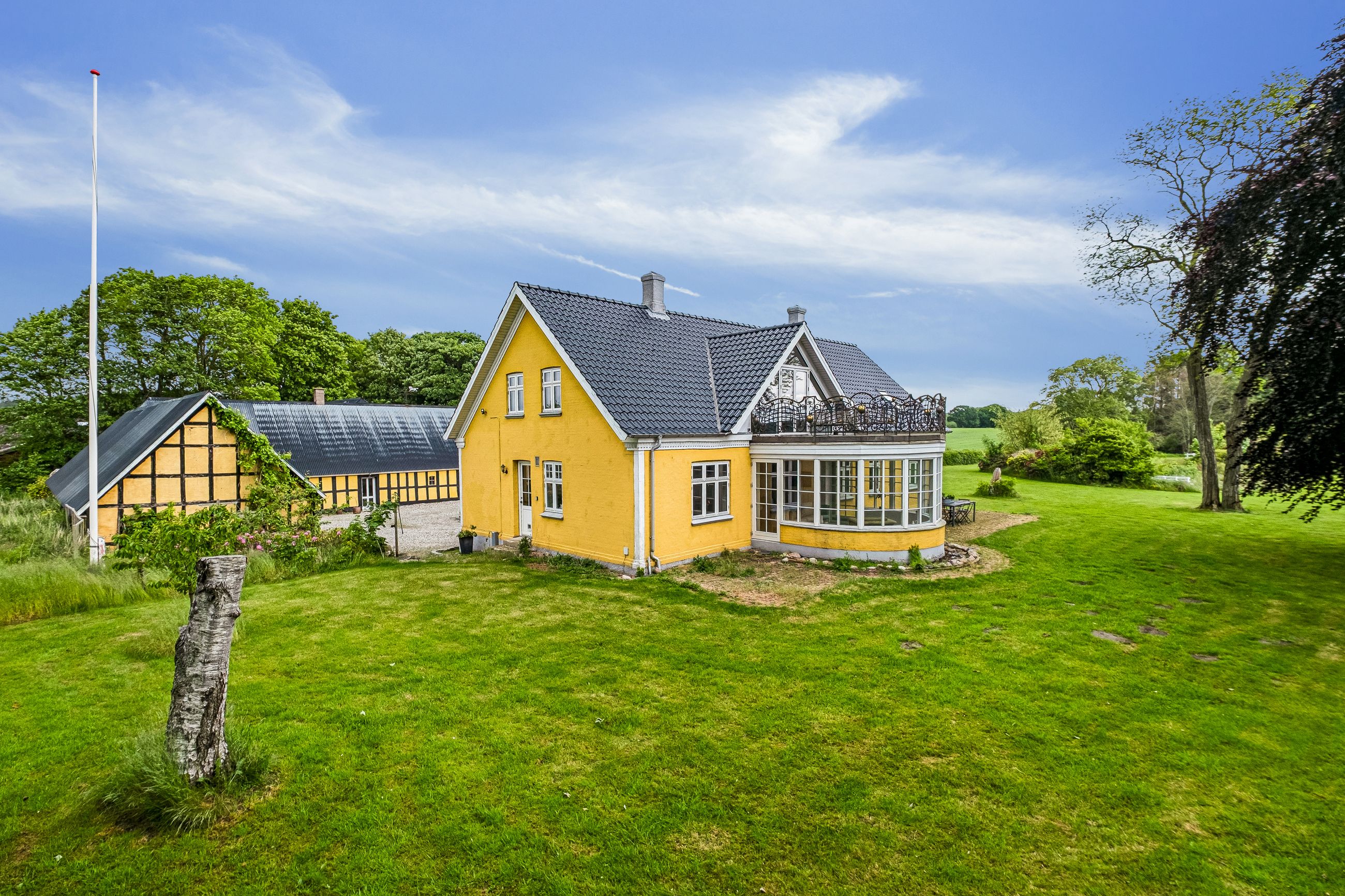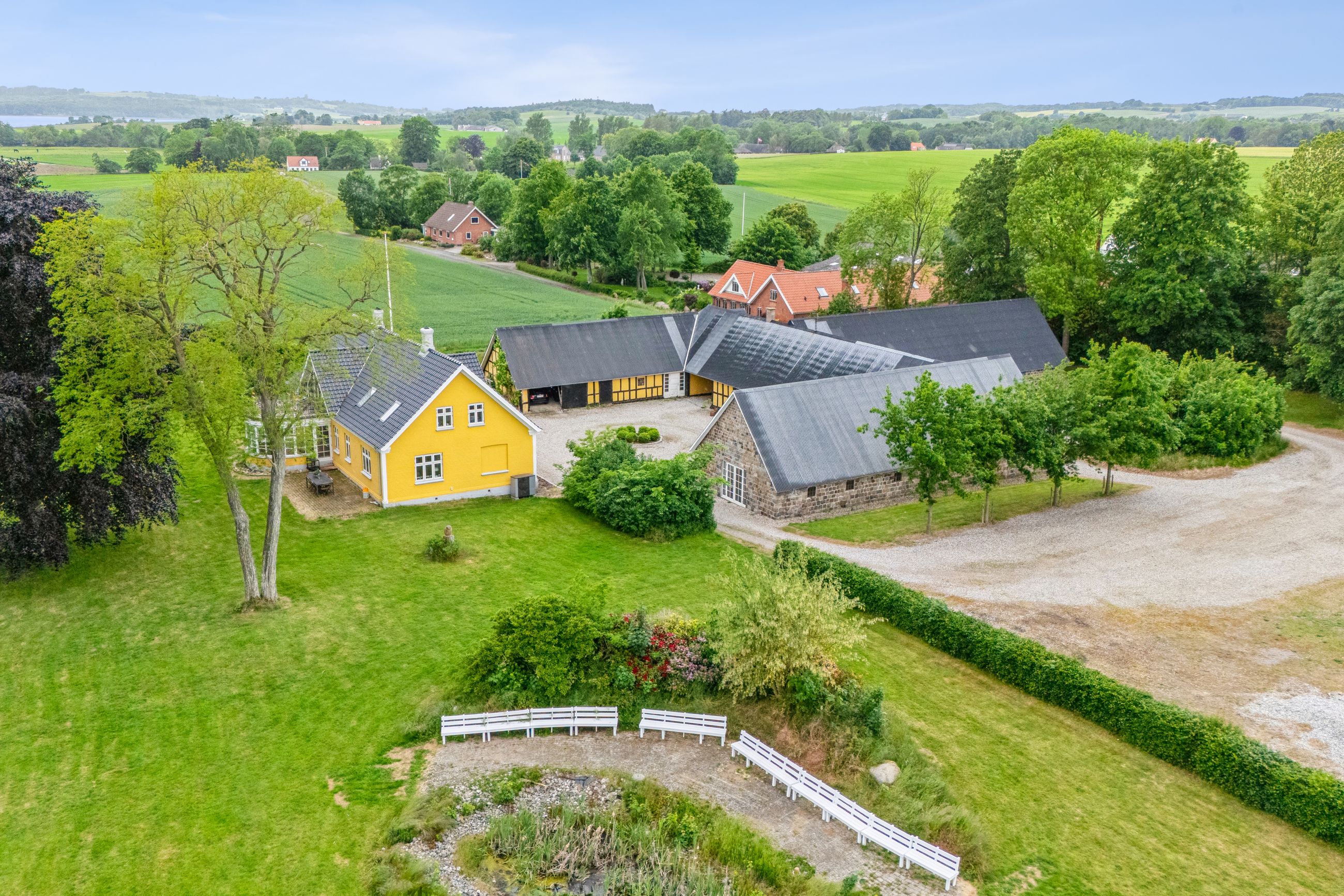 Fra ejendommen er der også kig over fjorden og haven og området i sig selv skal opleves. Til ejendommen er der også et stort jordareal der grænser ned mod fjorden.