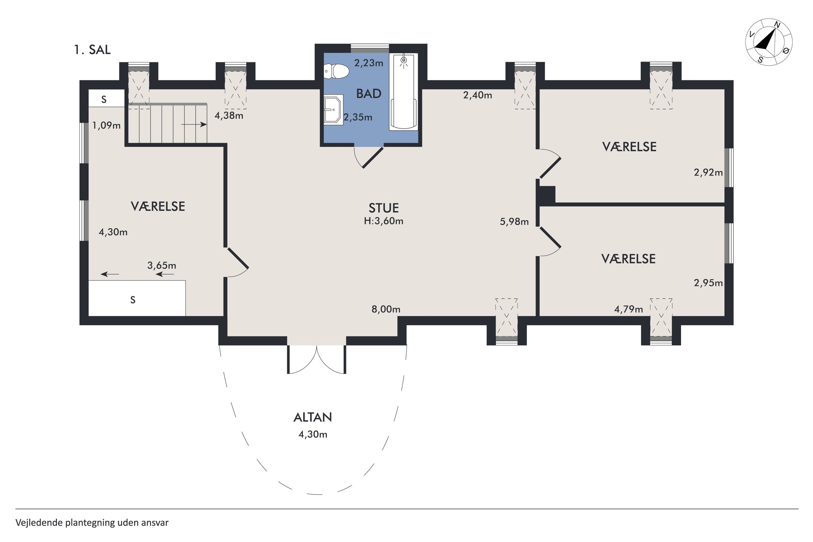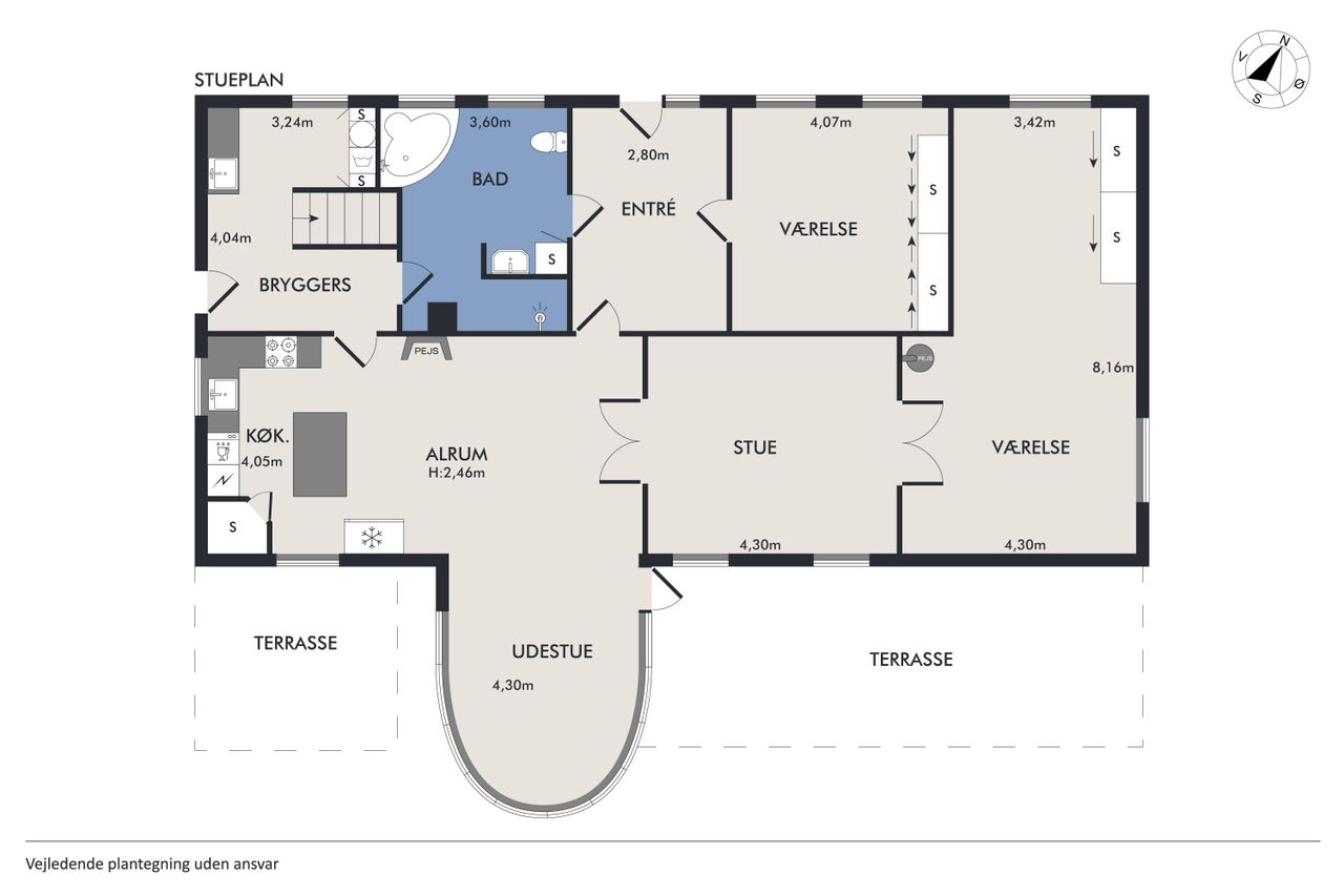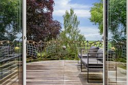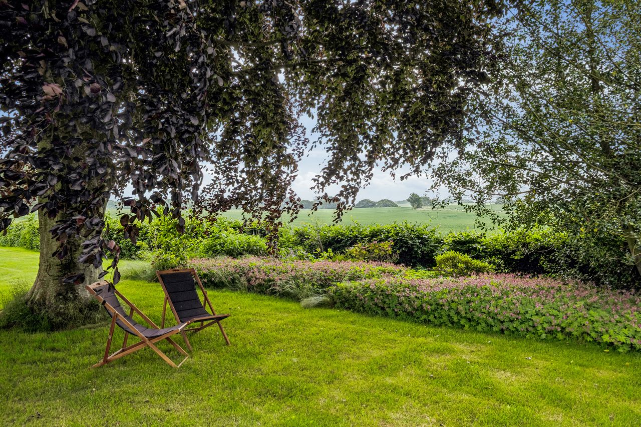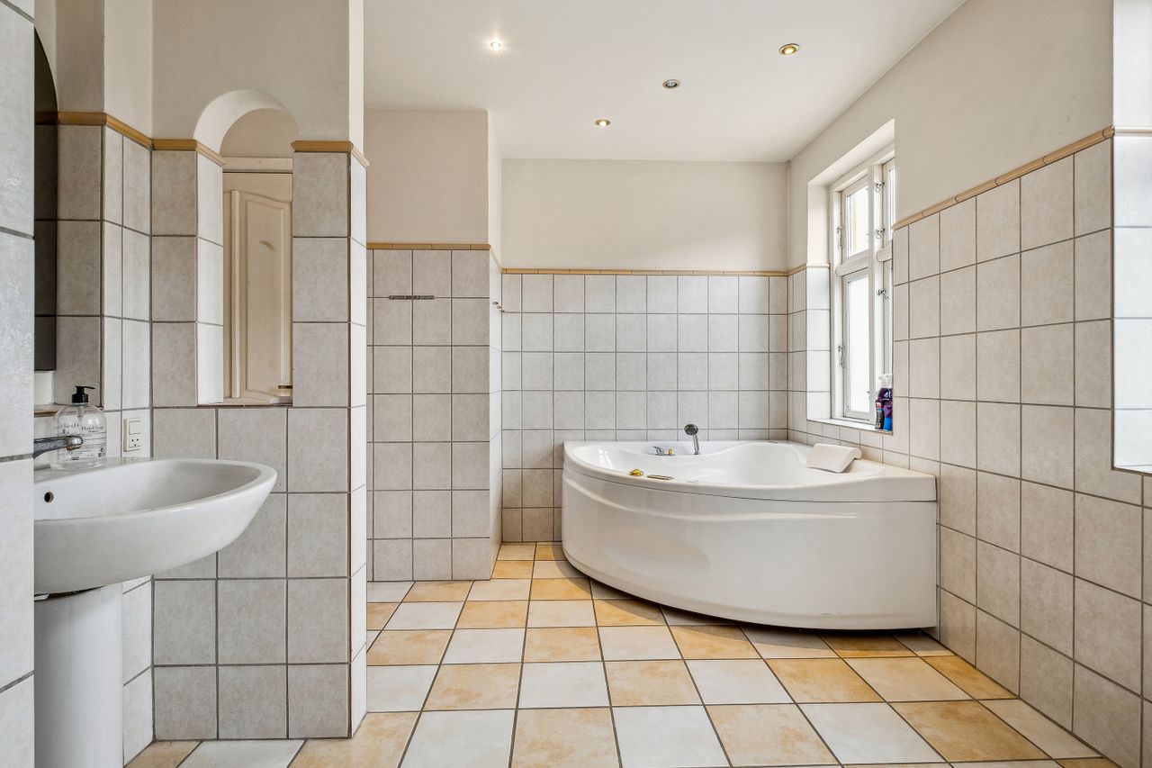 Der er et stort jordstykke op til ejendommen, hvor der ligeledes er muligt er anlægge en stor ridebane.