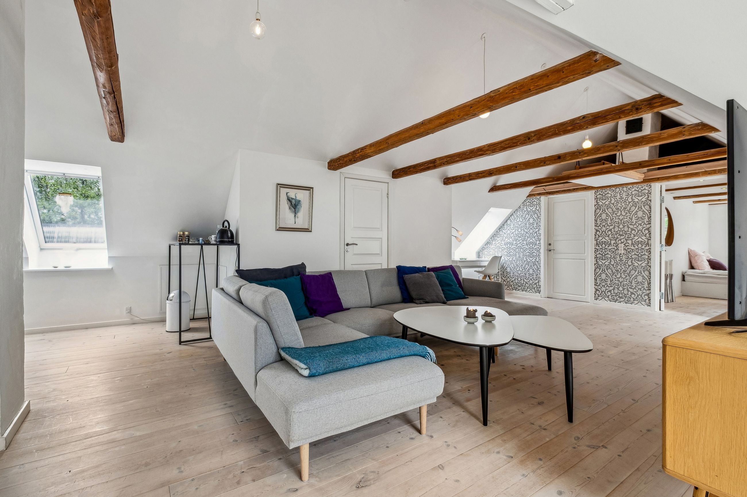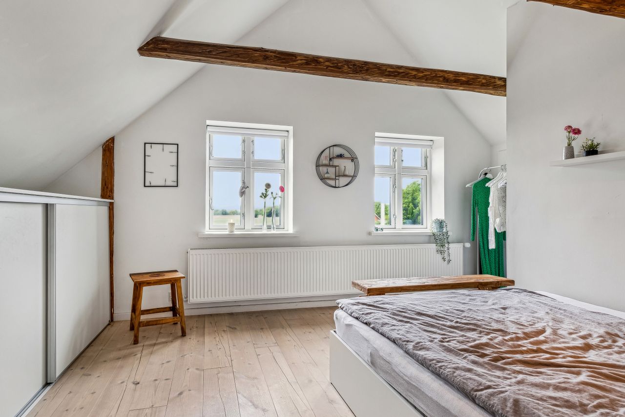 Stuehuset har et væld af værelser og gode store stuer. Her er virkelig plads til familien, den sammenbragte med en masse børn, eller blot til dem der ønsker at leve livet med B&B og kursuscenter lige ved døren.