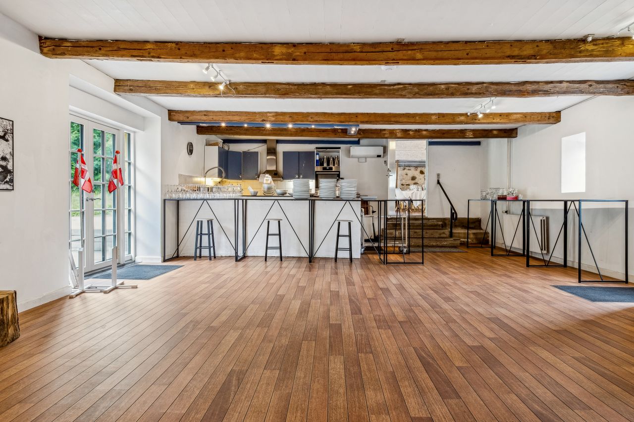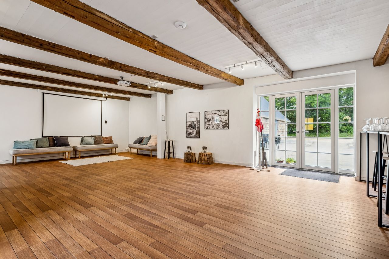 Stedet er godkendt til 150 personer og sælger har ligeledes drevet B&B på stedet. Mulighederner er mange på dette fantastiske sted tæt ved fjorden. Der er gjort meget ud af lokationen og oplevelsen som helhed, for både venner, familie og de mange arrangementer.