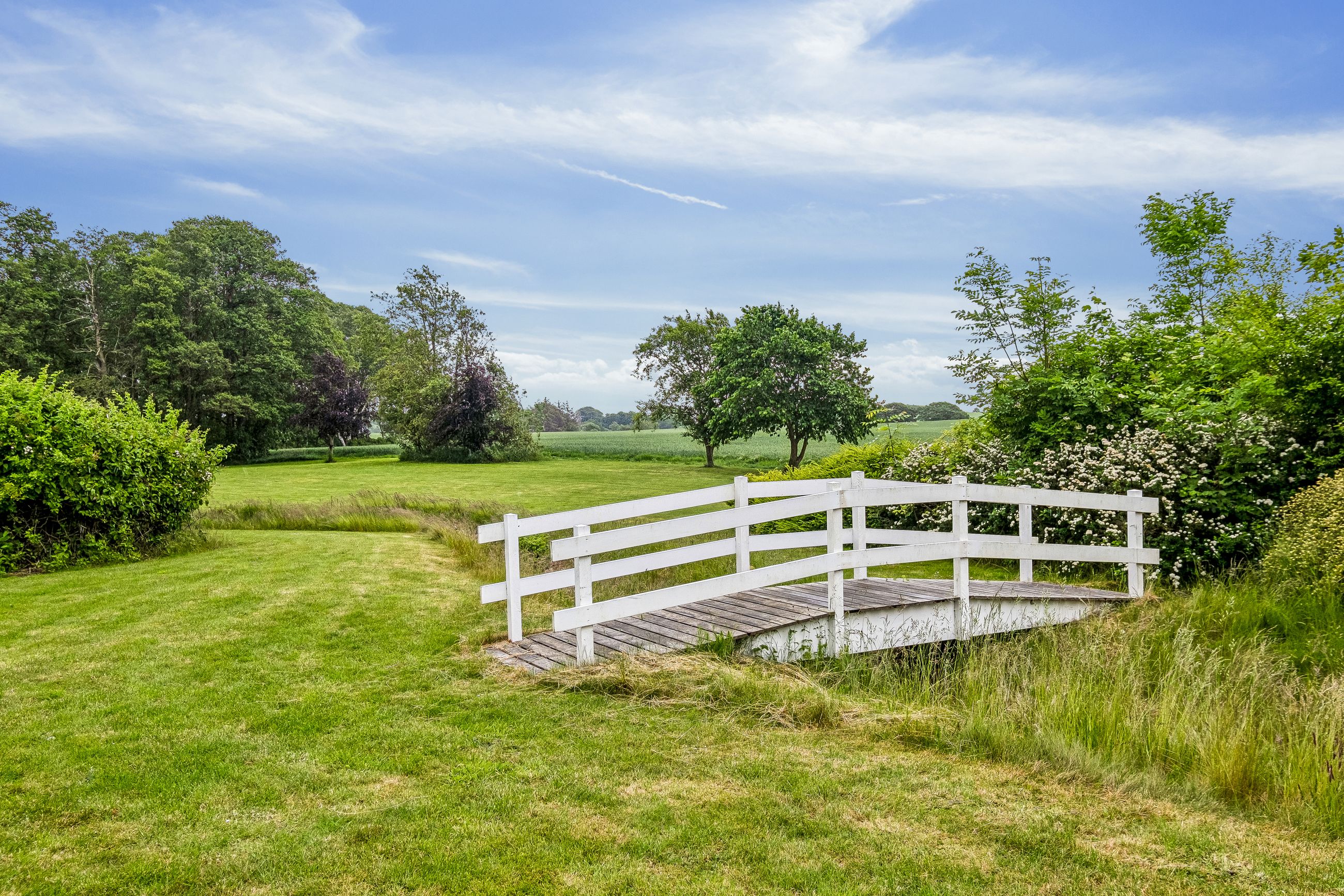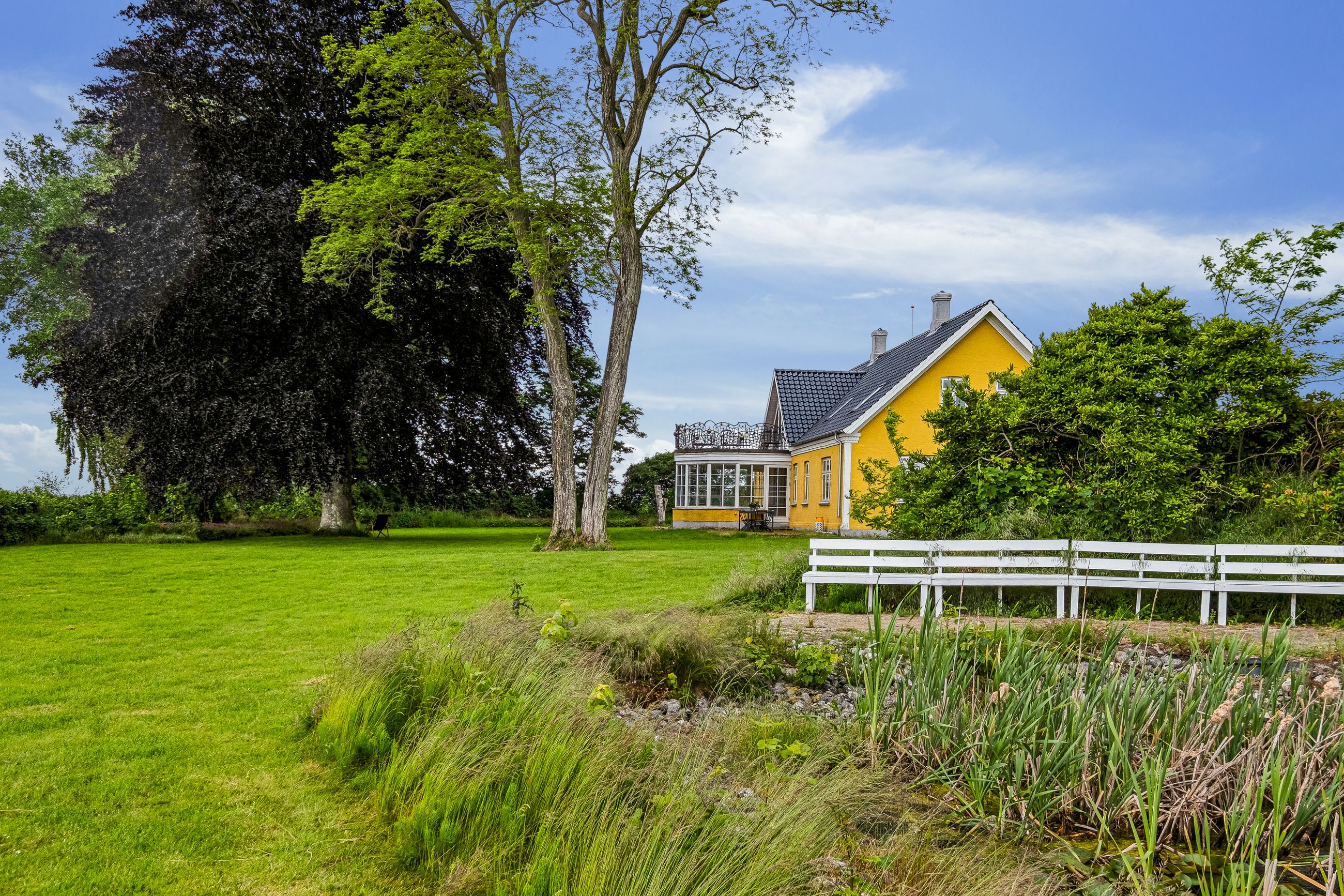 Boligen ses med hele 271 m2 bolig og der er samlet udhuse på 630 m2. Her er et mindre skovstykke og en tilhørende sø, en park af en have med bro og så er her fuldstændig ro og plads til lige det man ønsker.