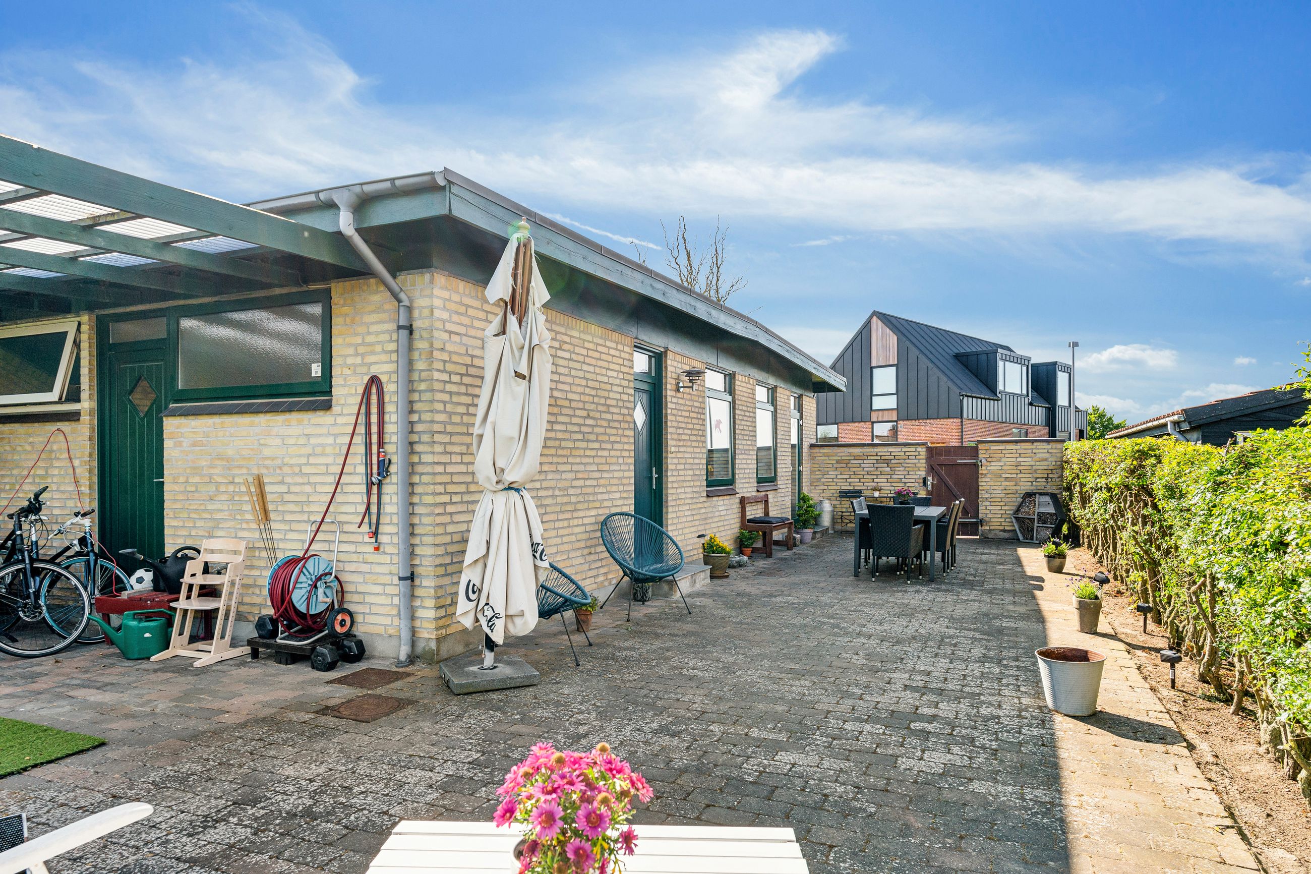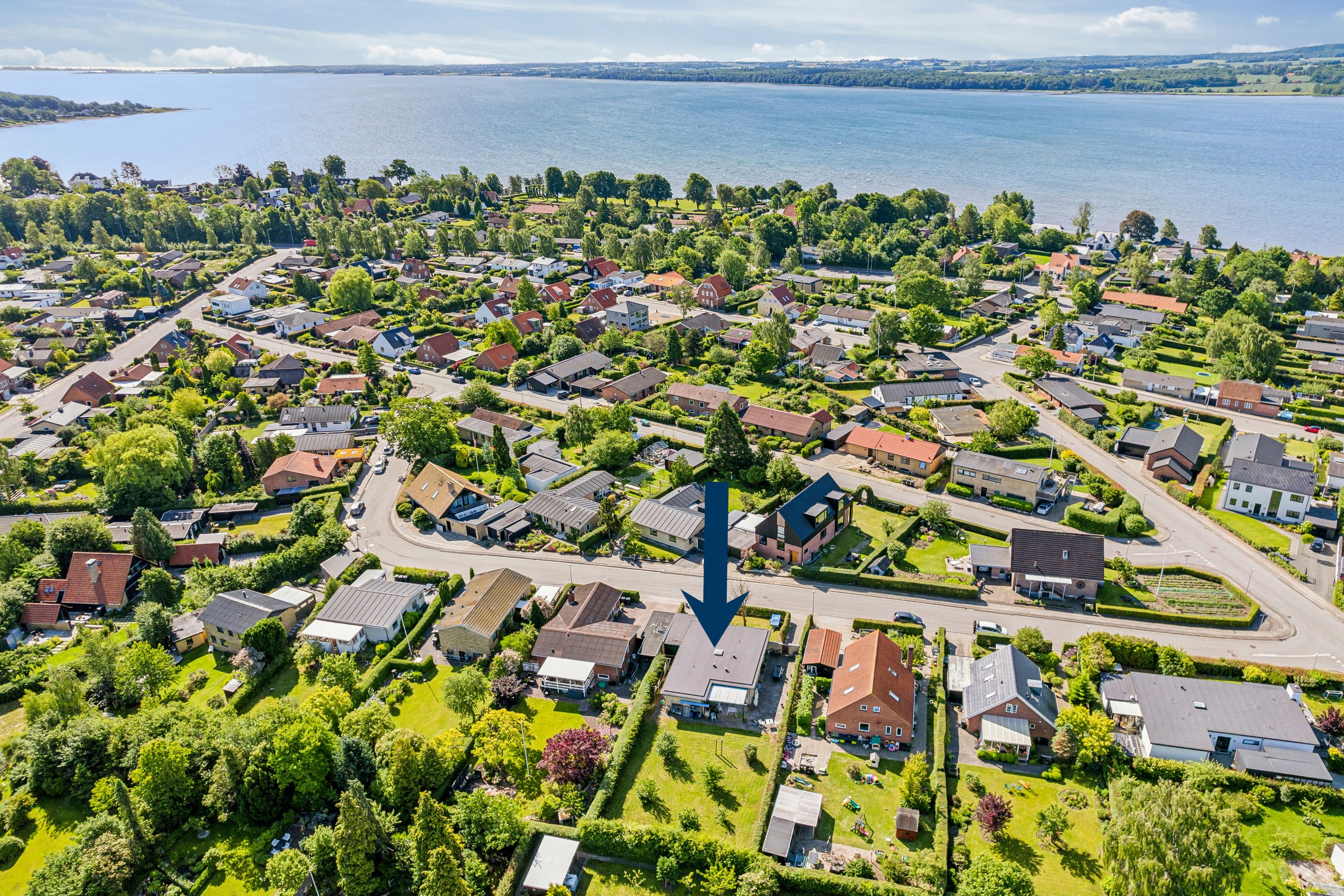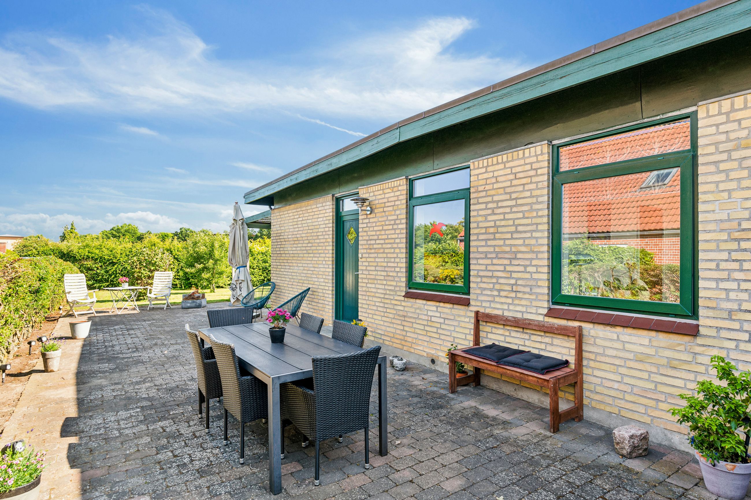 Haven er lukket og ugeneret med mulighed for at nyde solen hele vejen rundt om boligen - med bl.a. flisebelagt terrasse mod vest og overdækket terrasse mod nordvest. Her er masser af plads til hygge og ophold i den frodige have - som samtidig ligger på en stille og rolig vej. Her er kort afstand til indkøb, sport, skole samt den smukke natur ved fjorden og Nørrestrand.