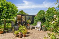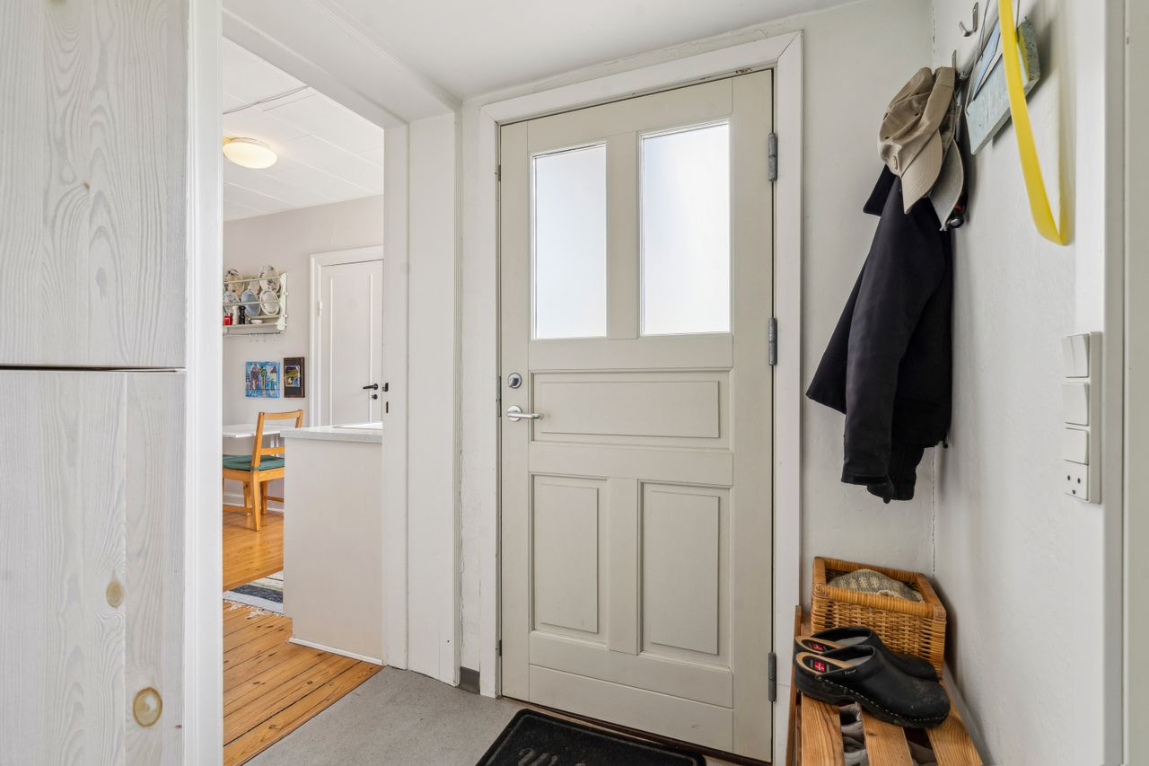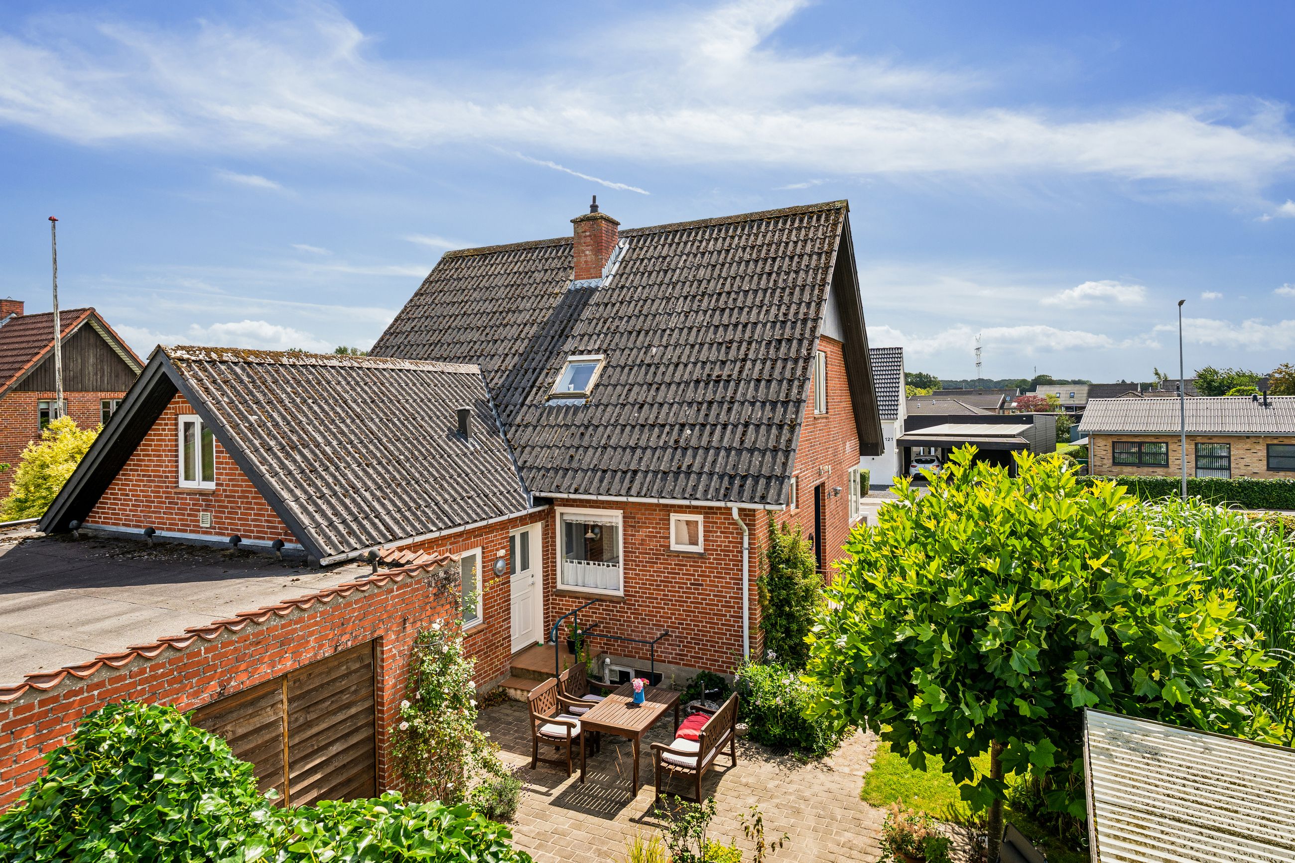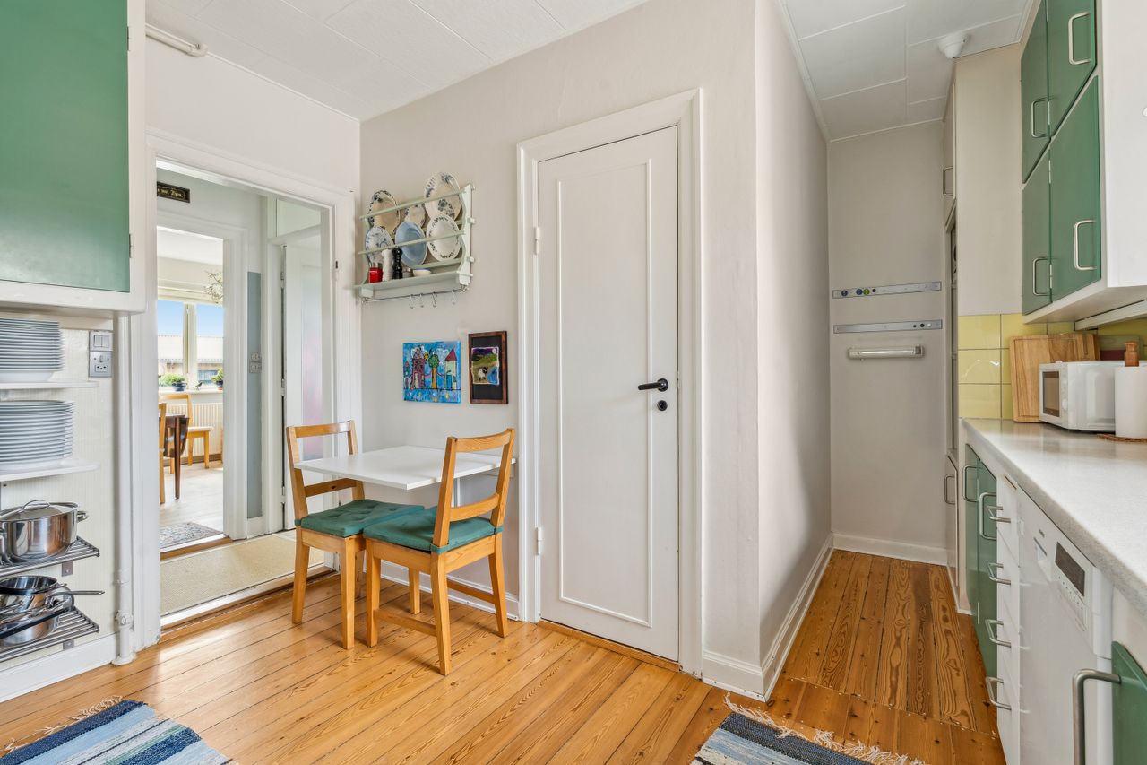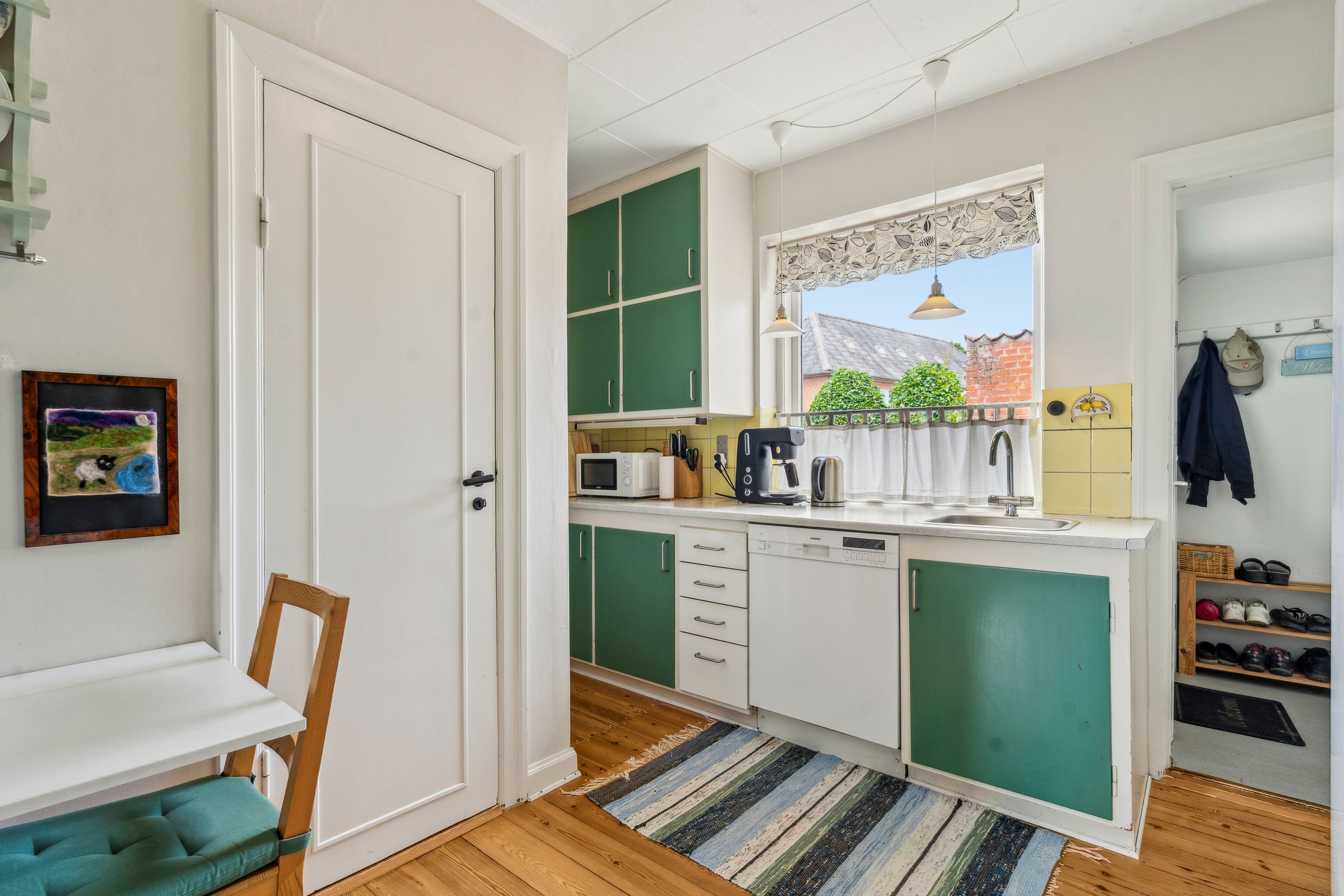 Udenfor venter en mindre vedligeholdelsesnem have samt en hyggelig overdækning, der kan lukkes helt af og dermed bruges som udestue eller orangeri – perfekt sted at nyde kaffen mens man betragter årstidernes skiften.