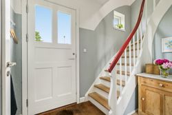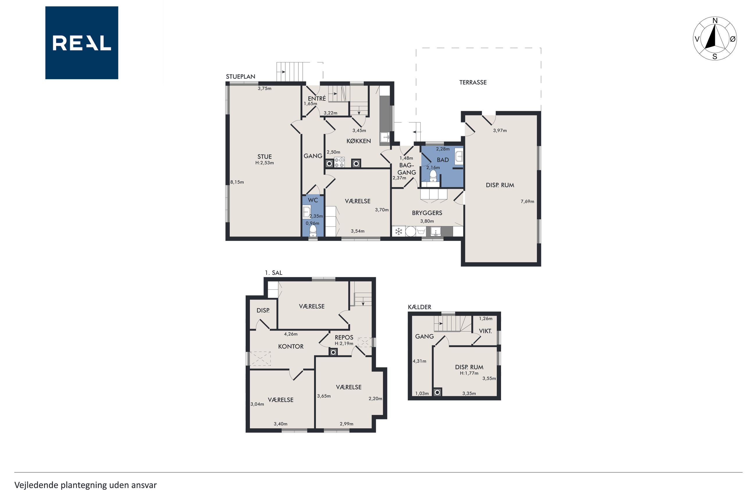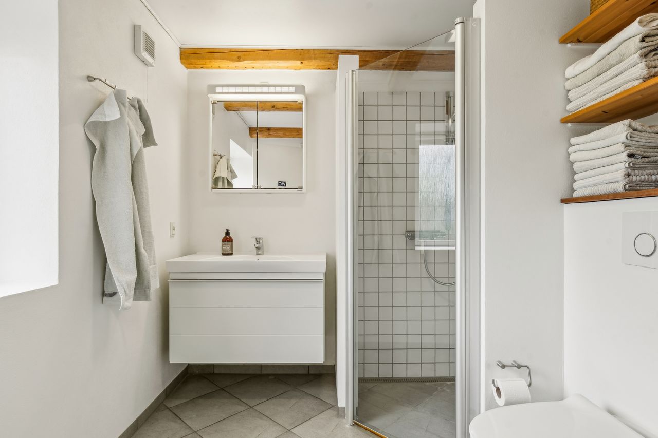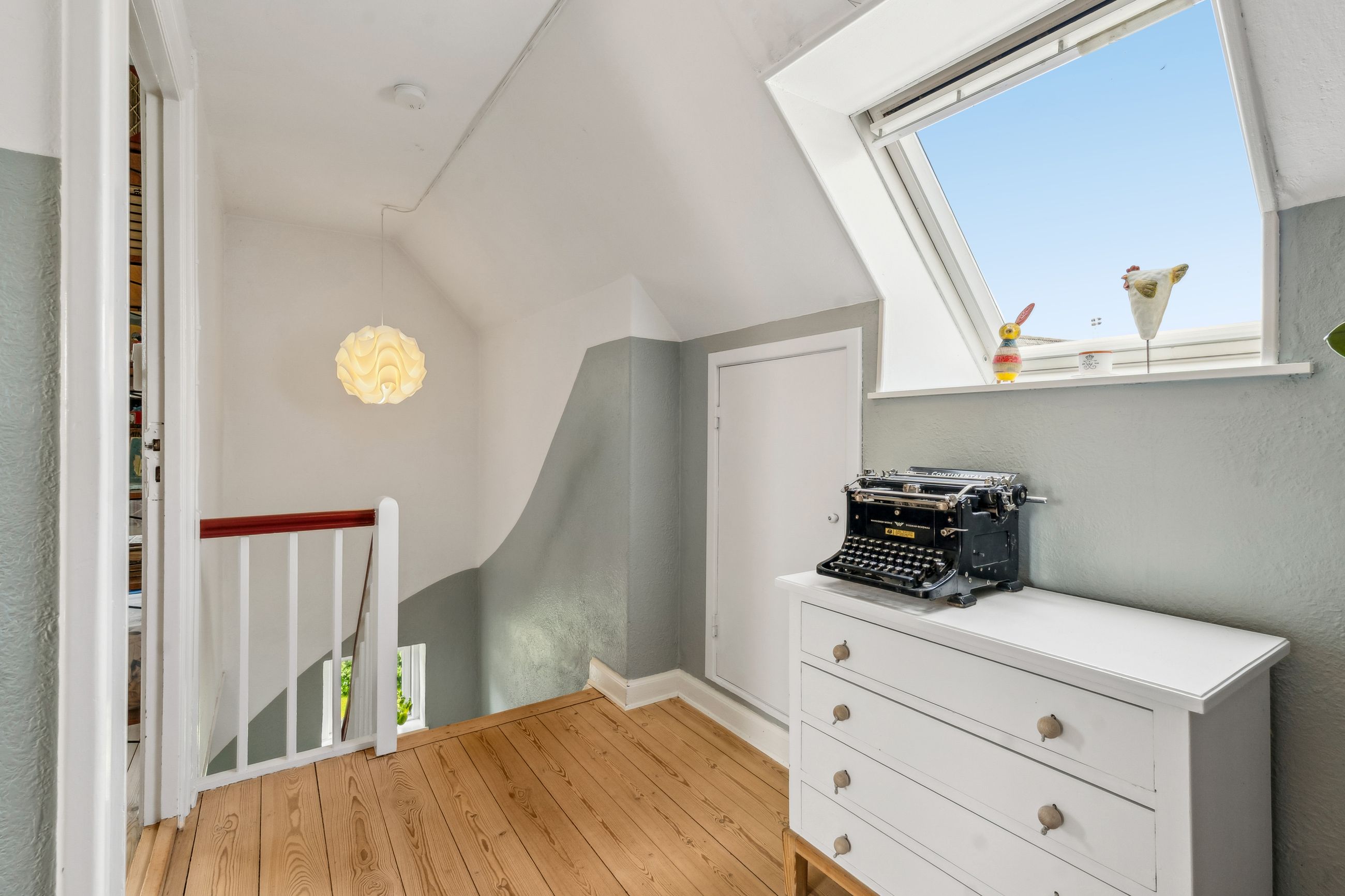 På første sal mødes du af et fint repos, som leder videre til tre gode værelser alle med flotte trægulve – ideelle som børneværelser eller gæsteværelser alt efter behov. Derudover findes her også et kontor samt et mindre opbevaringsrum/skunk, hvilket giver rig mulighed for at organisere hjemmet efter familiens ønsker.