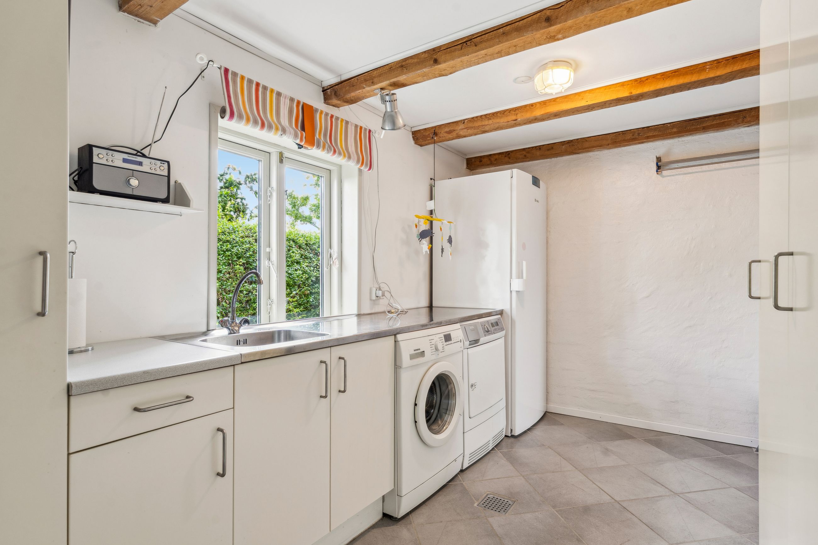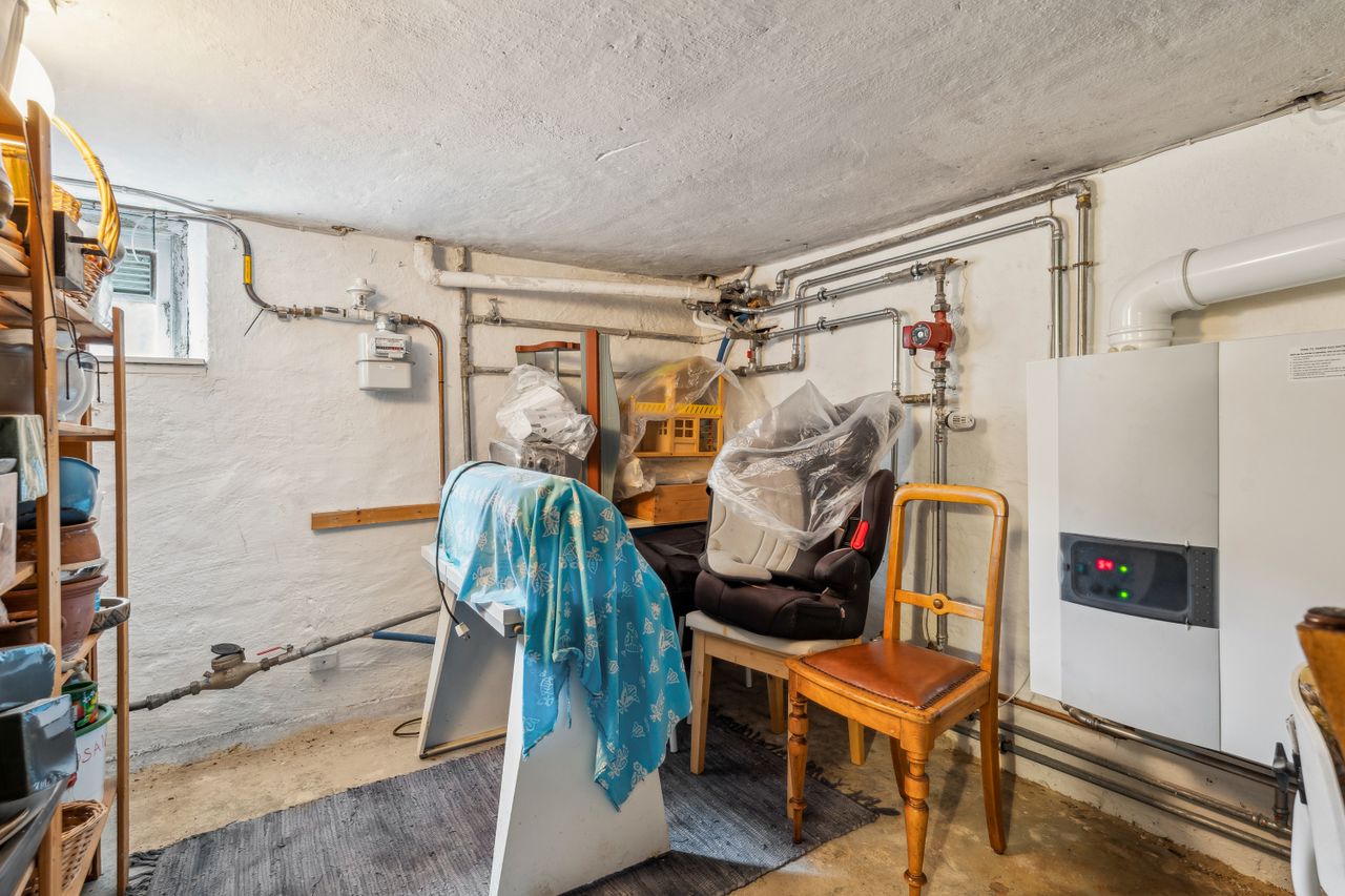 Kælderen på 18 m2 er oplagt til opbevaring. Derudover har huset tidligere haft garagefunktion i det store disponible rum på 32 m2 – nu klar til at blive brugt efter jeres behov; måske som værksted eller hobbyrum? Hele huset er hulmursisoleret for optimal energieffektivitet.