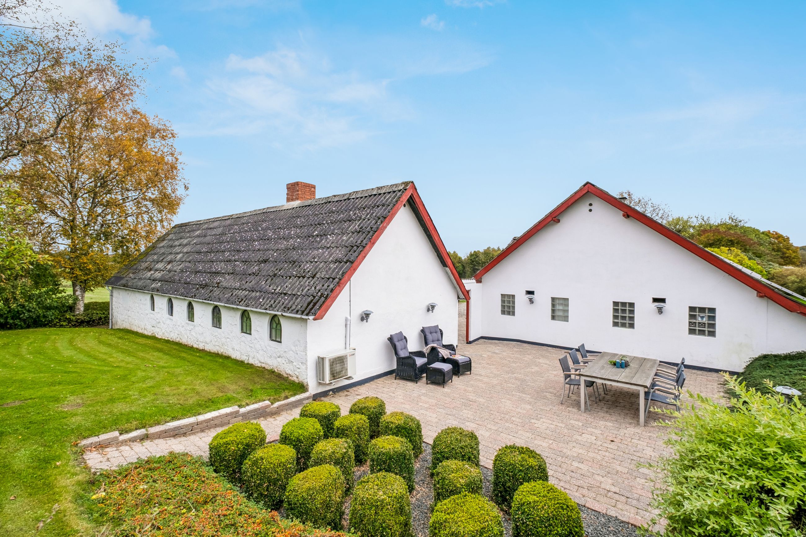 Ejendommen er opført i 1850 men løbende vedligeholdt og ombygget – og fremstår i dag som en harmonisk kombination af traditionel byggestil og moderne løsninger.