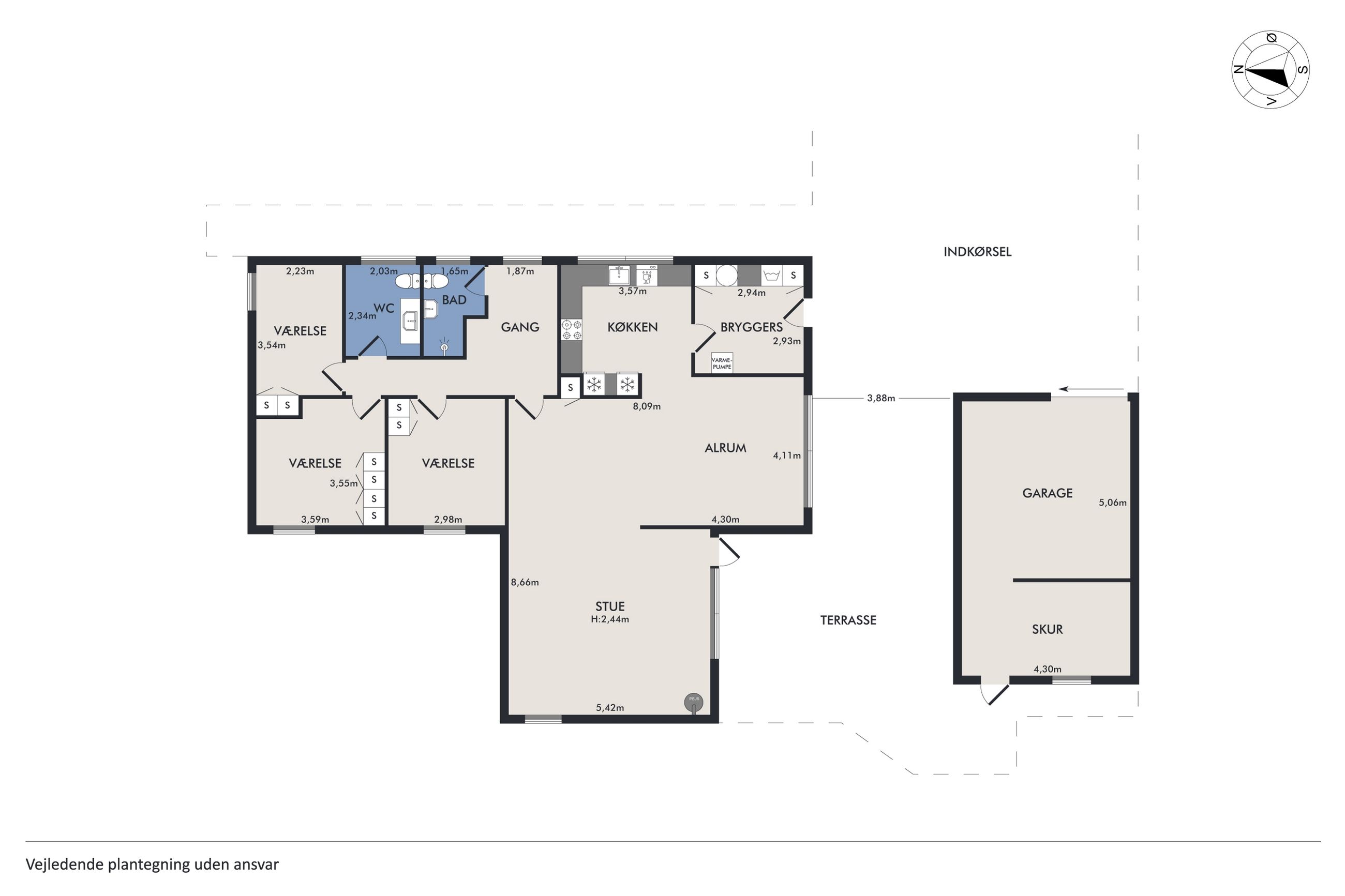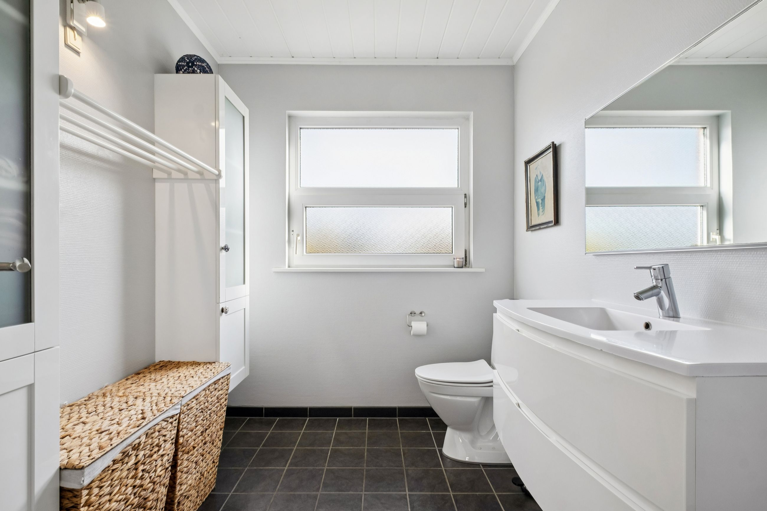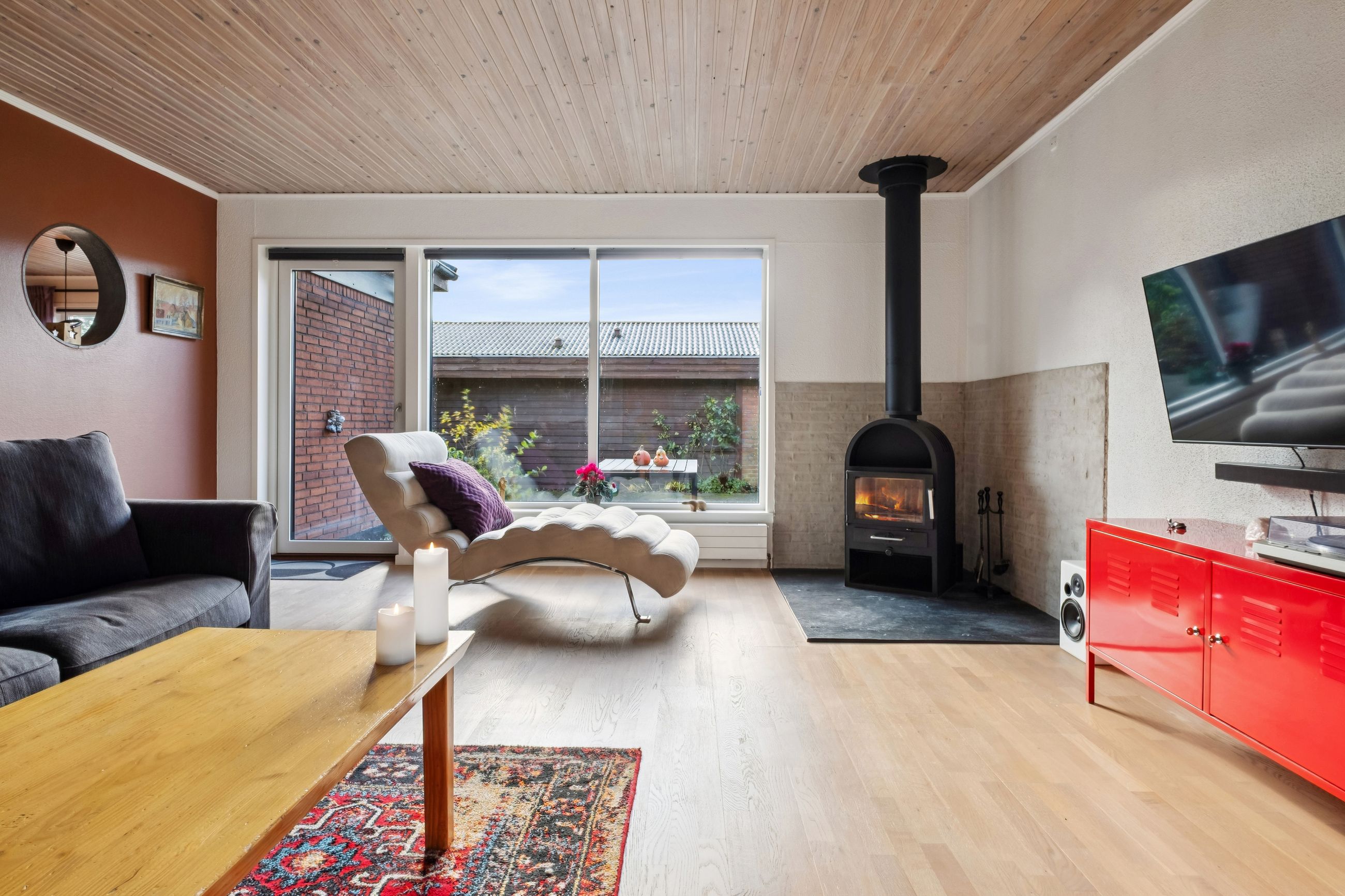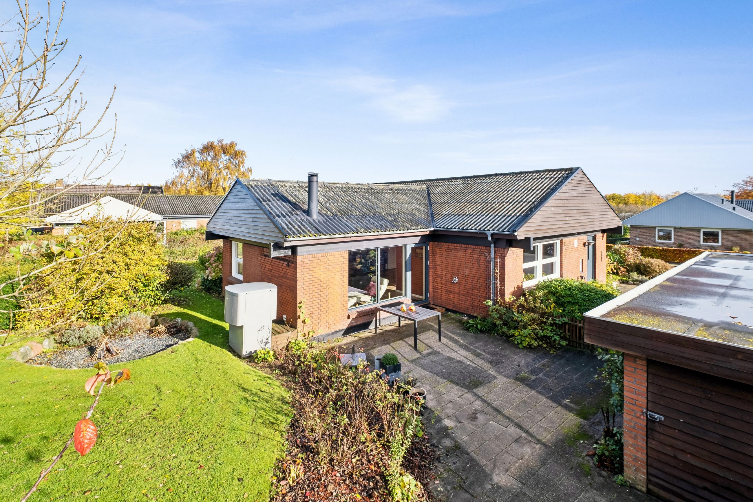I hjemmet finder du også en luft-til-vand-varmepumpe, som sikrer en effektiv opvarmning og et flot energimærke, der betyder lave energiomkostninger.