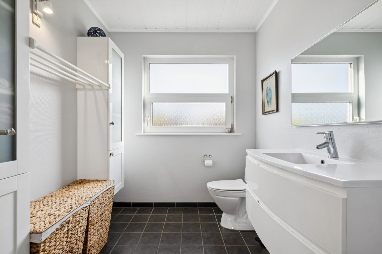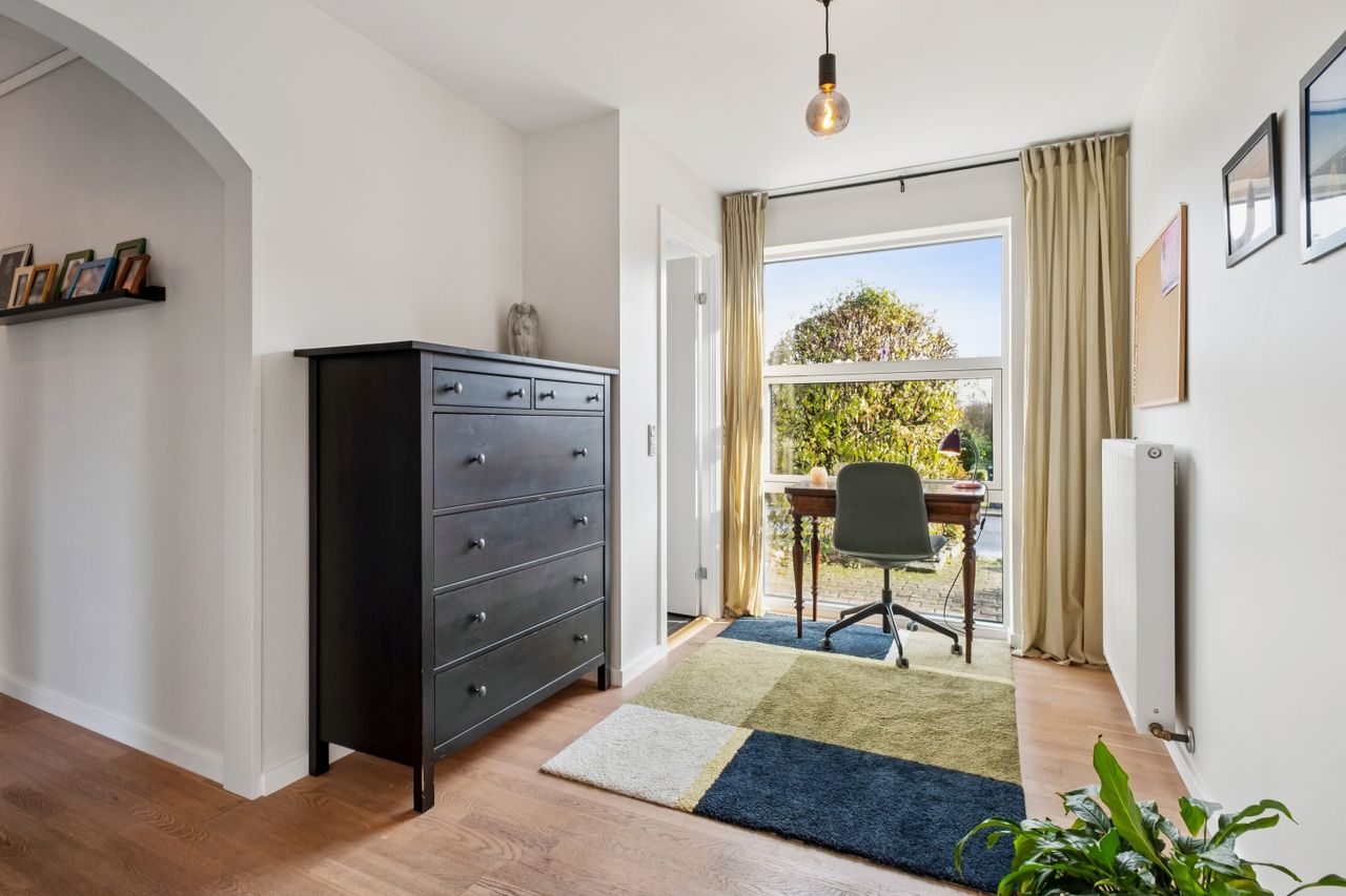 Villaen har desuden tre gode, store værelser, som giver godt med plads til familien. Der er desuden et funktionelt badeværelse med toilet og bruseniche samt et gæstetoilet. Den tidligere gæsteindgang er lukket og der er i dag etableret en kontorplads.