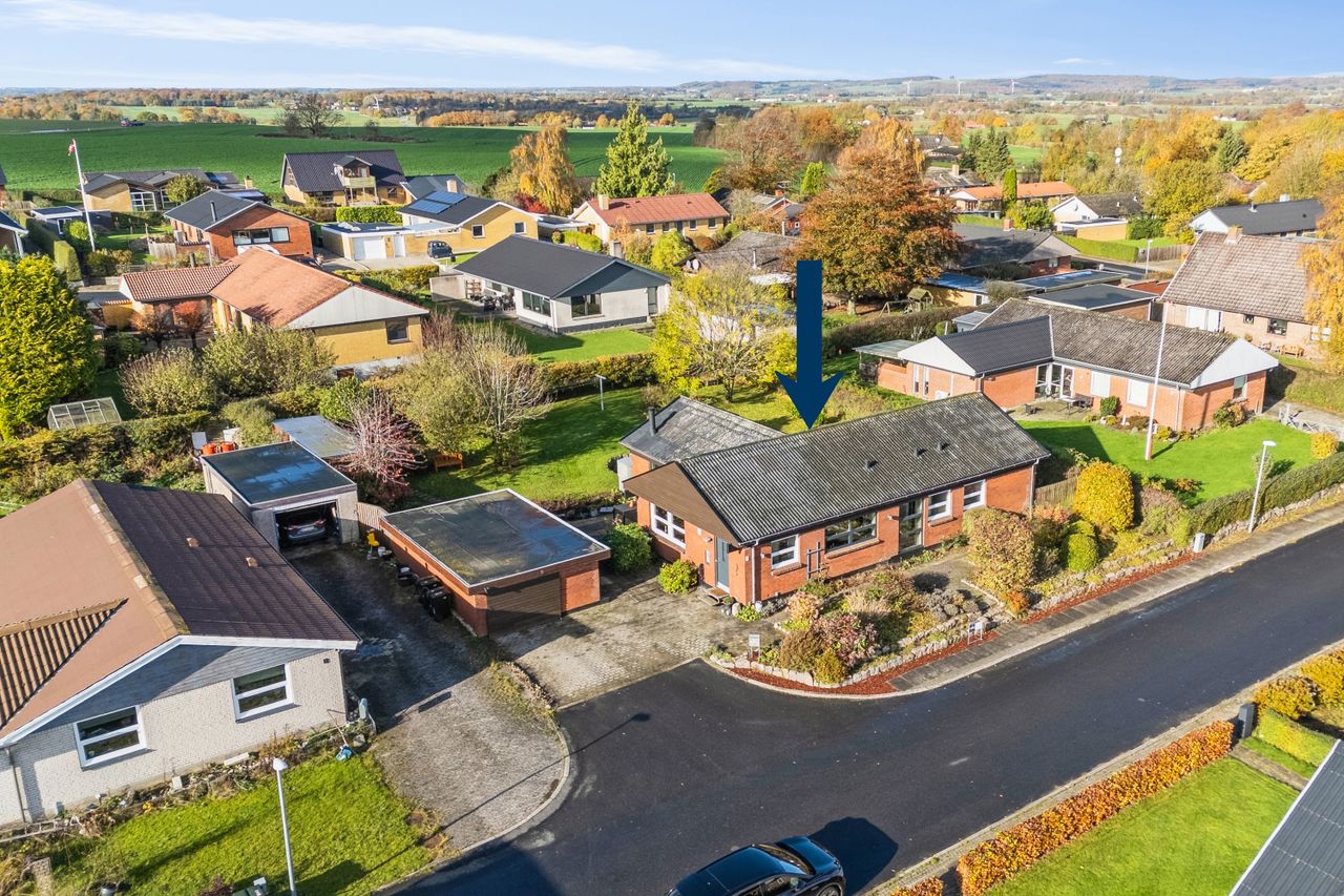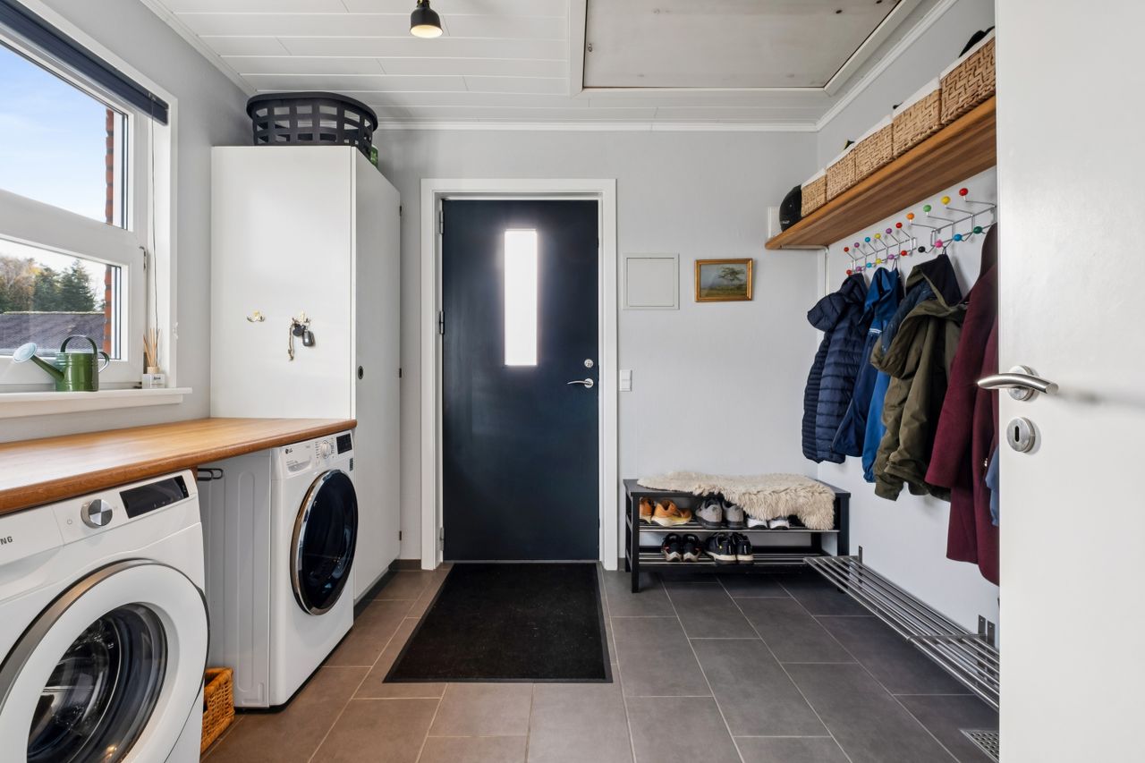 Boligen rummer også en god garage med tilhørende værksted, ideel til en masse værktøj og plads til hobby.