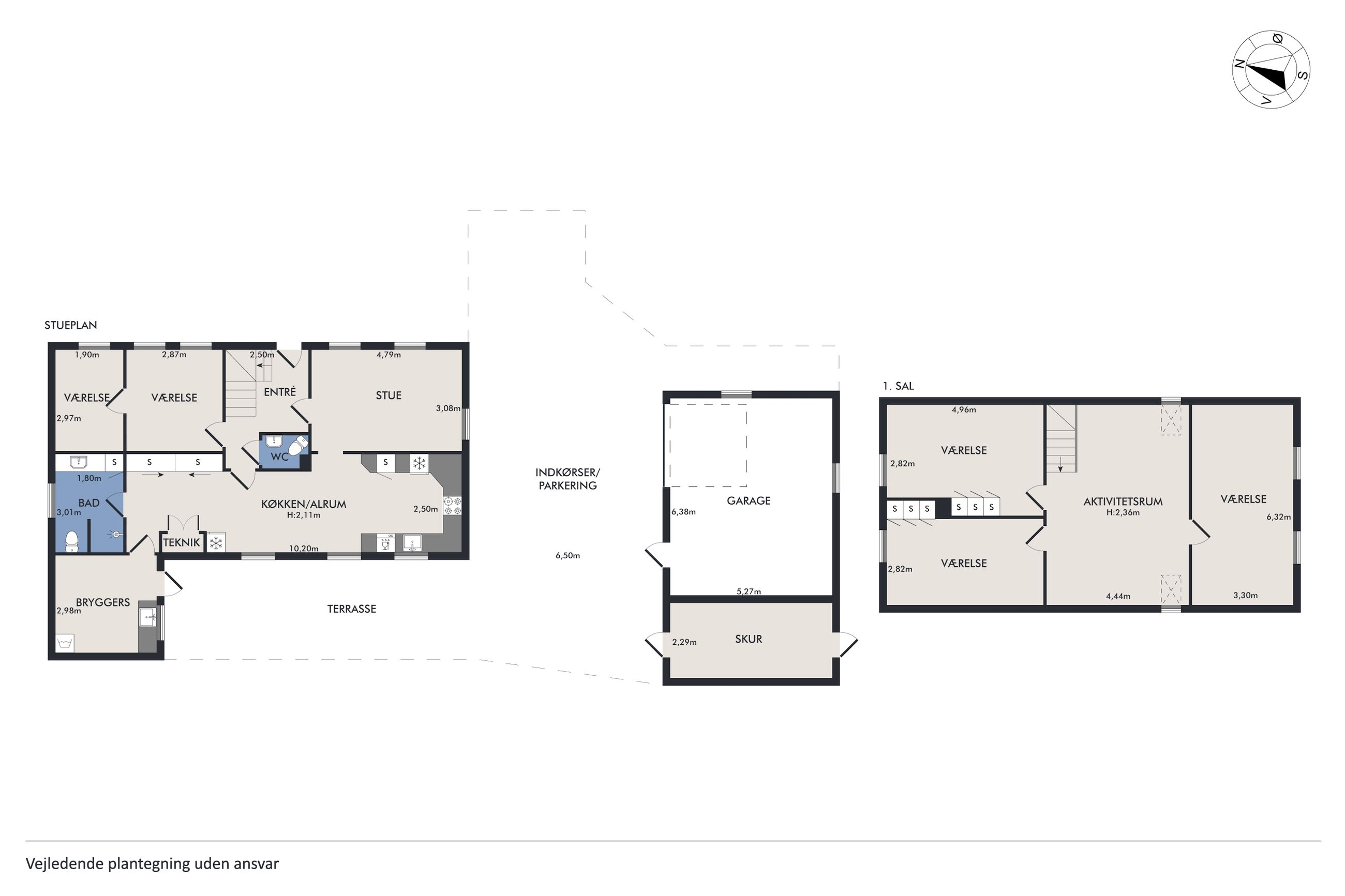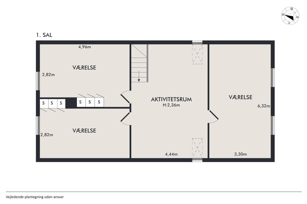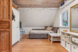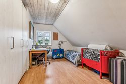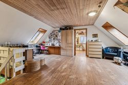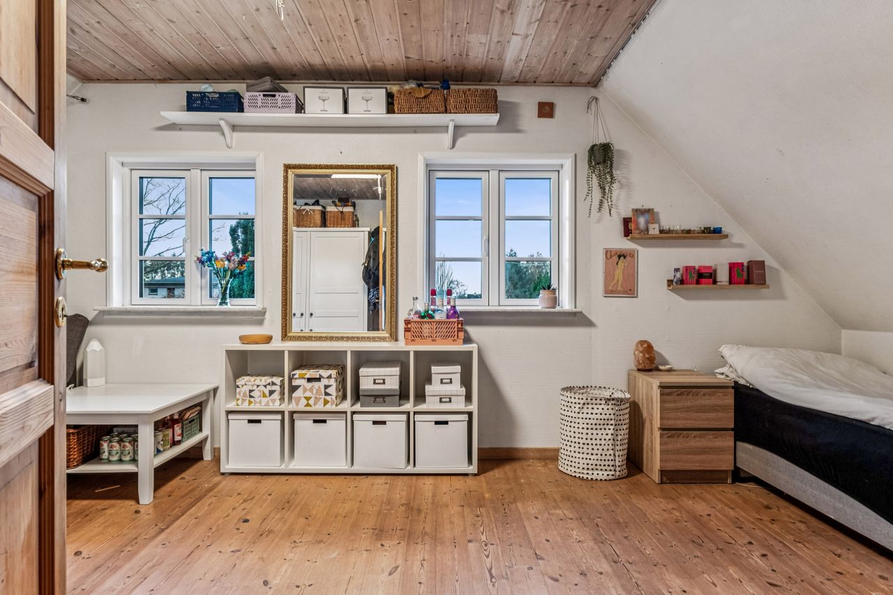 Tagetagen består af et stort aktivitetsrum/stue/multirum med planker på gulvet og opgang til loft, 2 gode store værelser samt et kæmpe stort værelse - som nemt kan deles i 2 hvis behovet er for det.