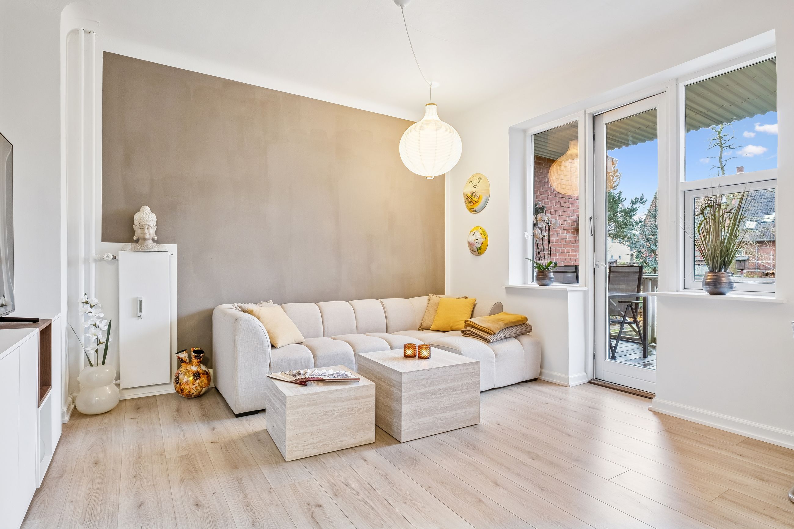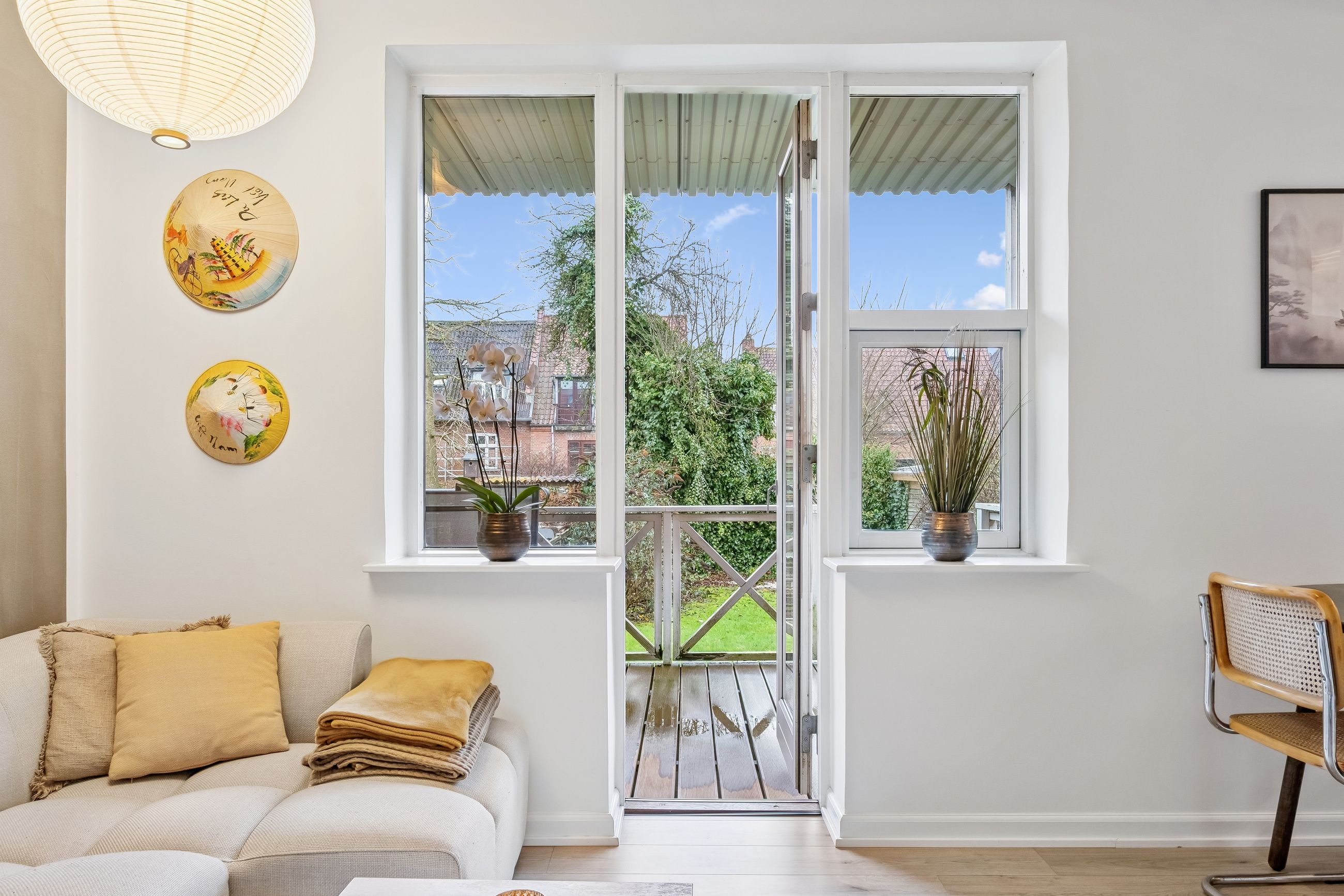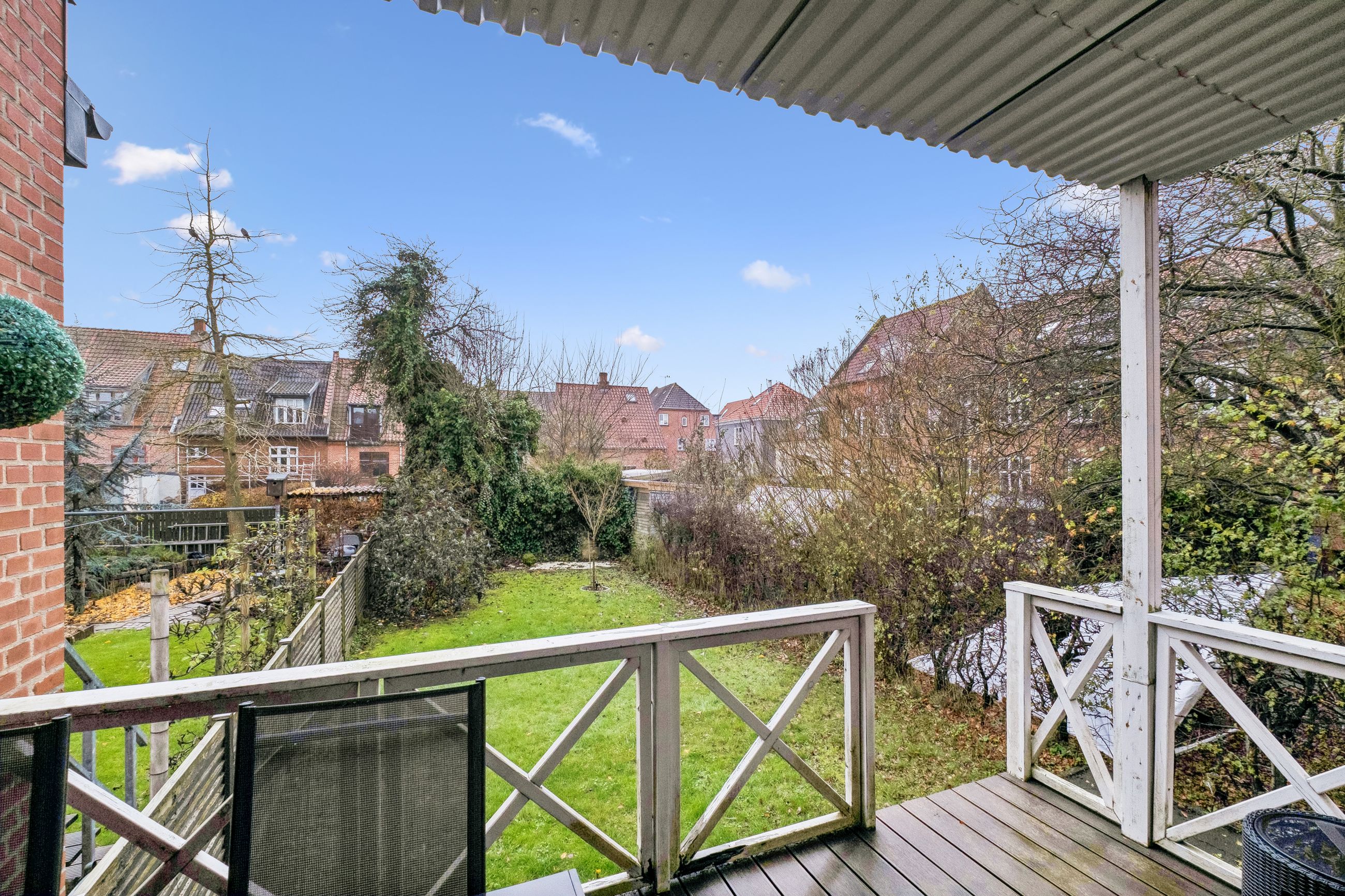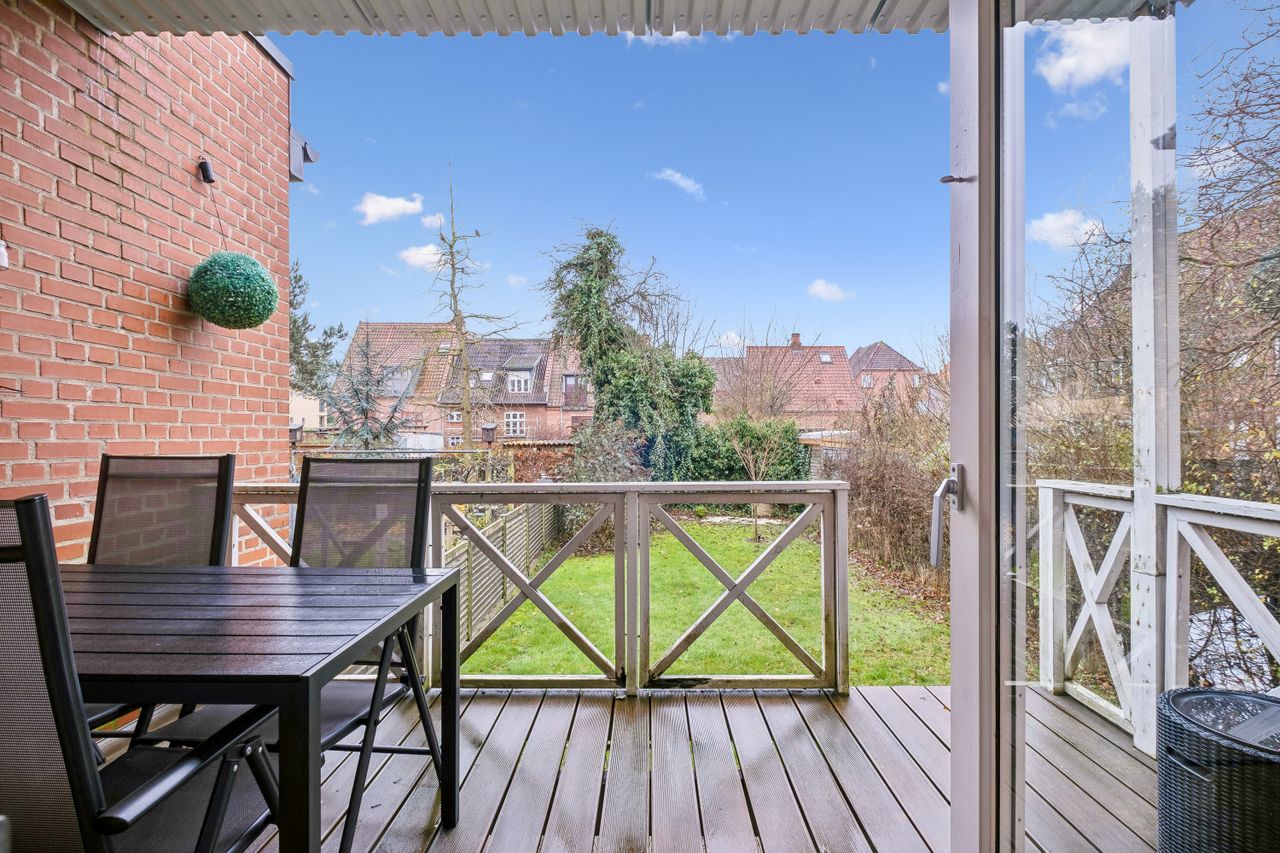 Denne høje stuelejlighed byder på en rummelig og lys atmosfære, hvor den store altan fungerer som en naturlig forlængelse af opholdsrummet. Fra altanen kan du træde direkte ud i en sydvendt have, som kun deles med lejlighedens overbo. Dette unikke udemiljø giver dig mulighed for at nyde solens stråler dagen lang i rolige og private omgivelser.
