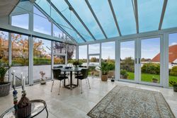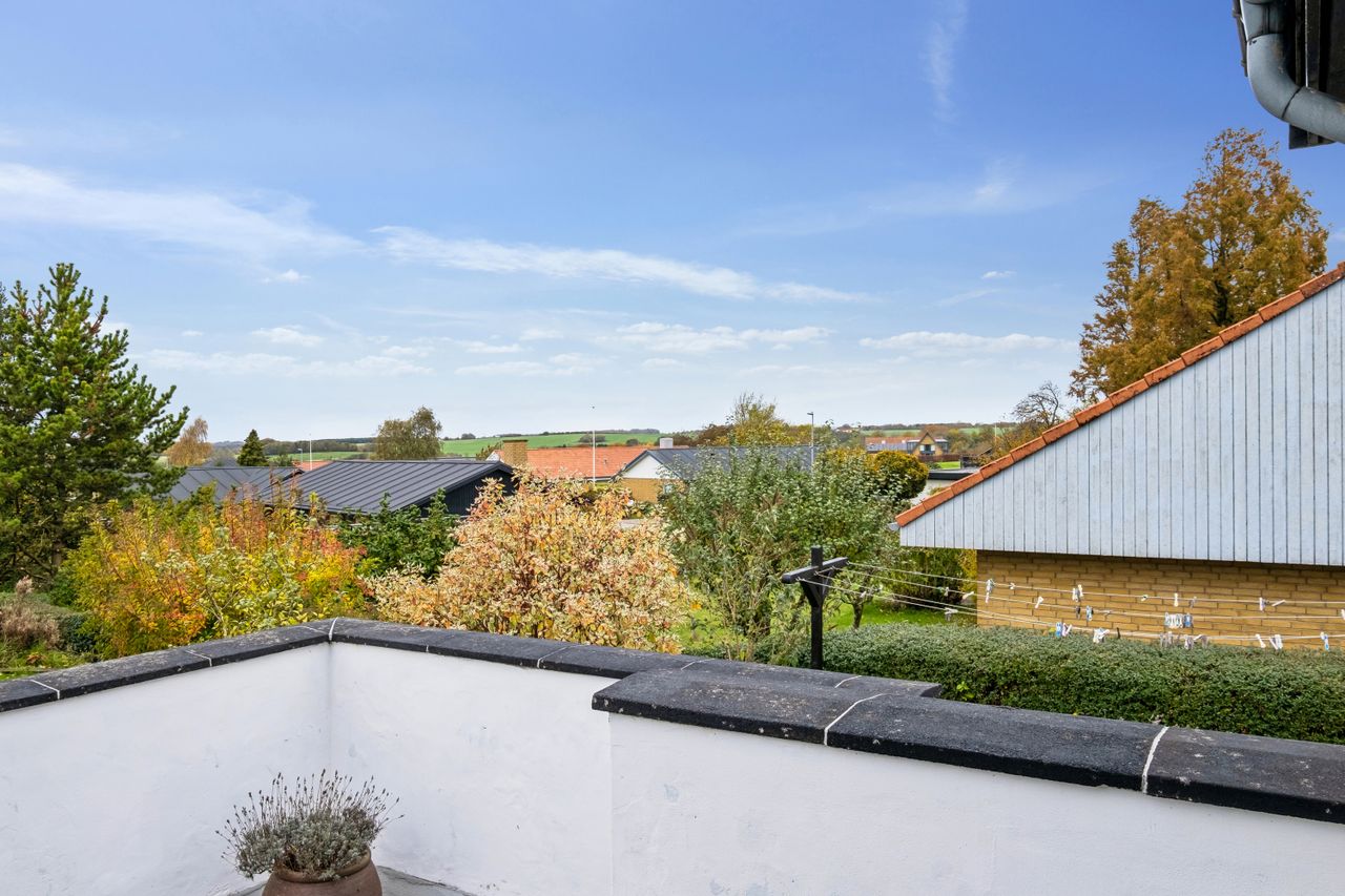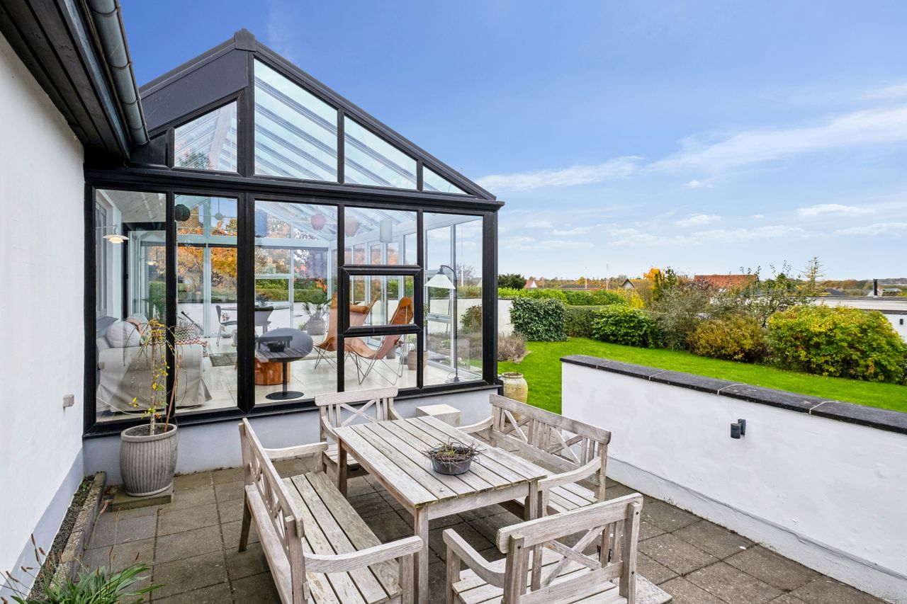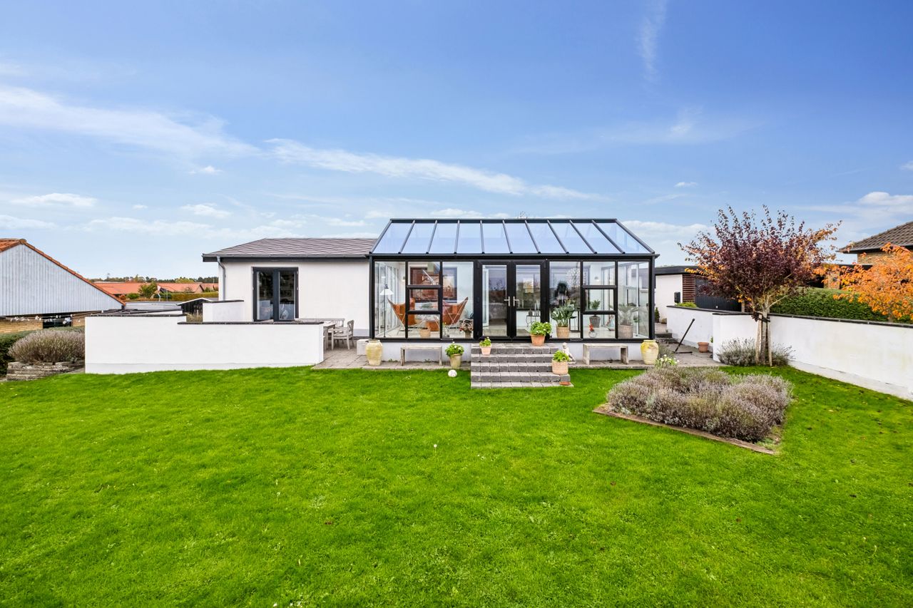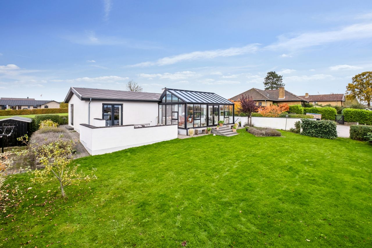 Villaen er oprindeligt opført i 1967 men er blevet gennemgribende renoveret og præsenterer i dag et boligareal på 114 m2 med gulvvarme overalt - samt et lækkert, fuldisoleret orangeri - opført i 2018 - på 29 m2 med direkte adgang fra boligen - og med de smukkeste travertin klinker. Villaen ligger højt - hvormed der fra boligen er en fantastisk udsigt ud over området - hvor især den smukke solnedgang kan opleves.