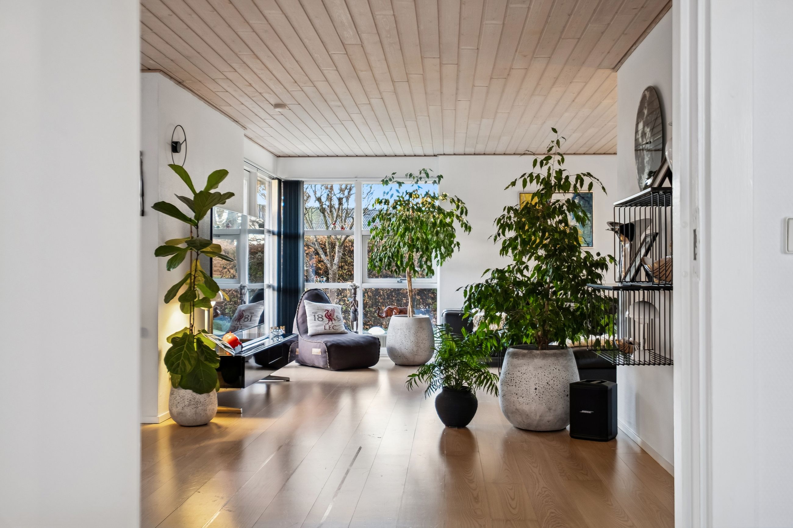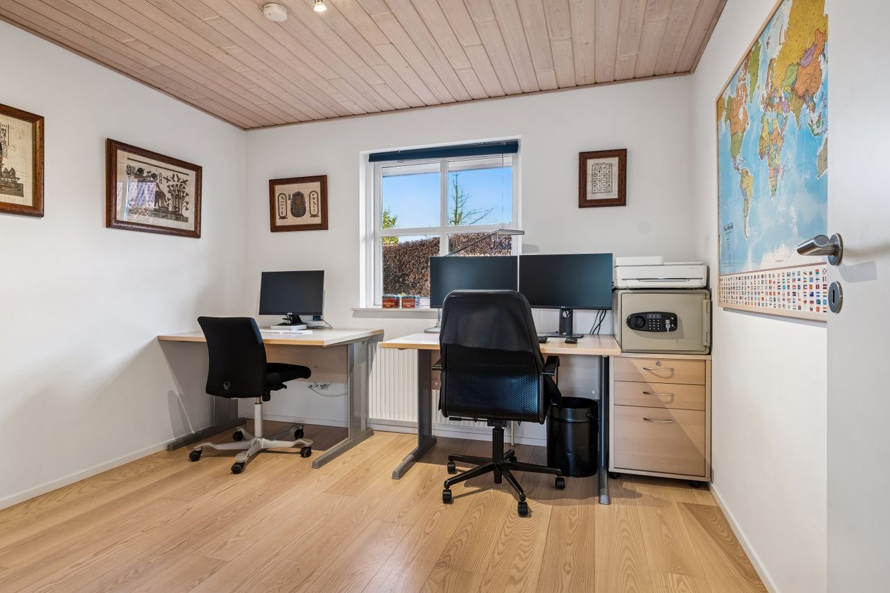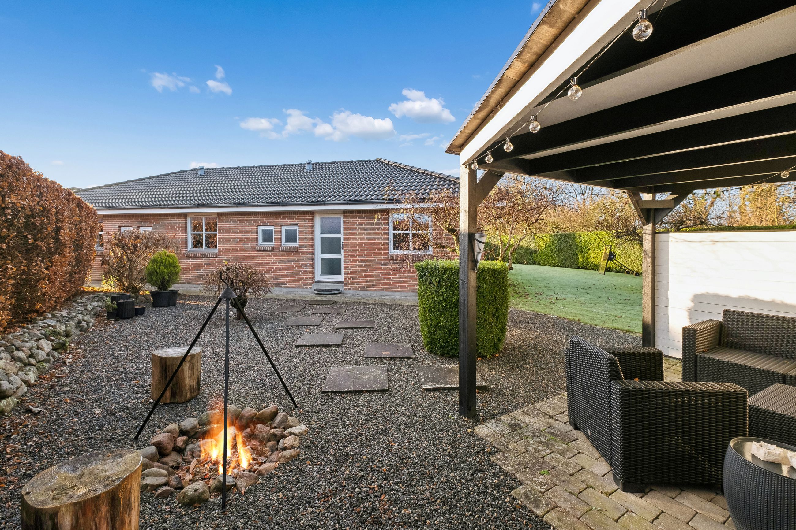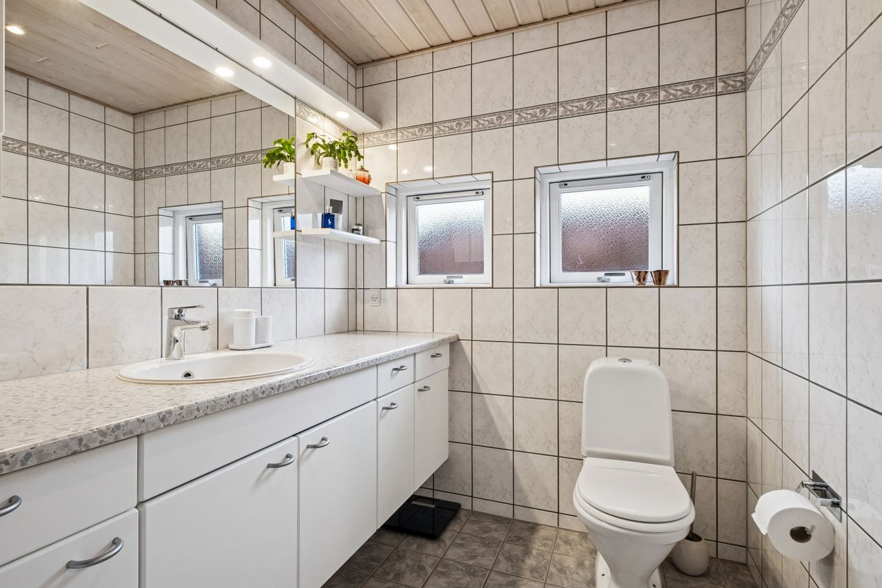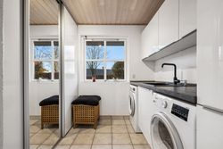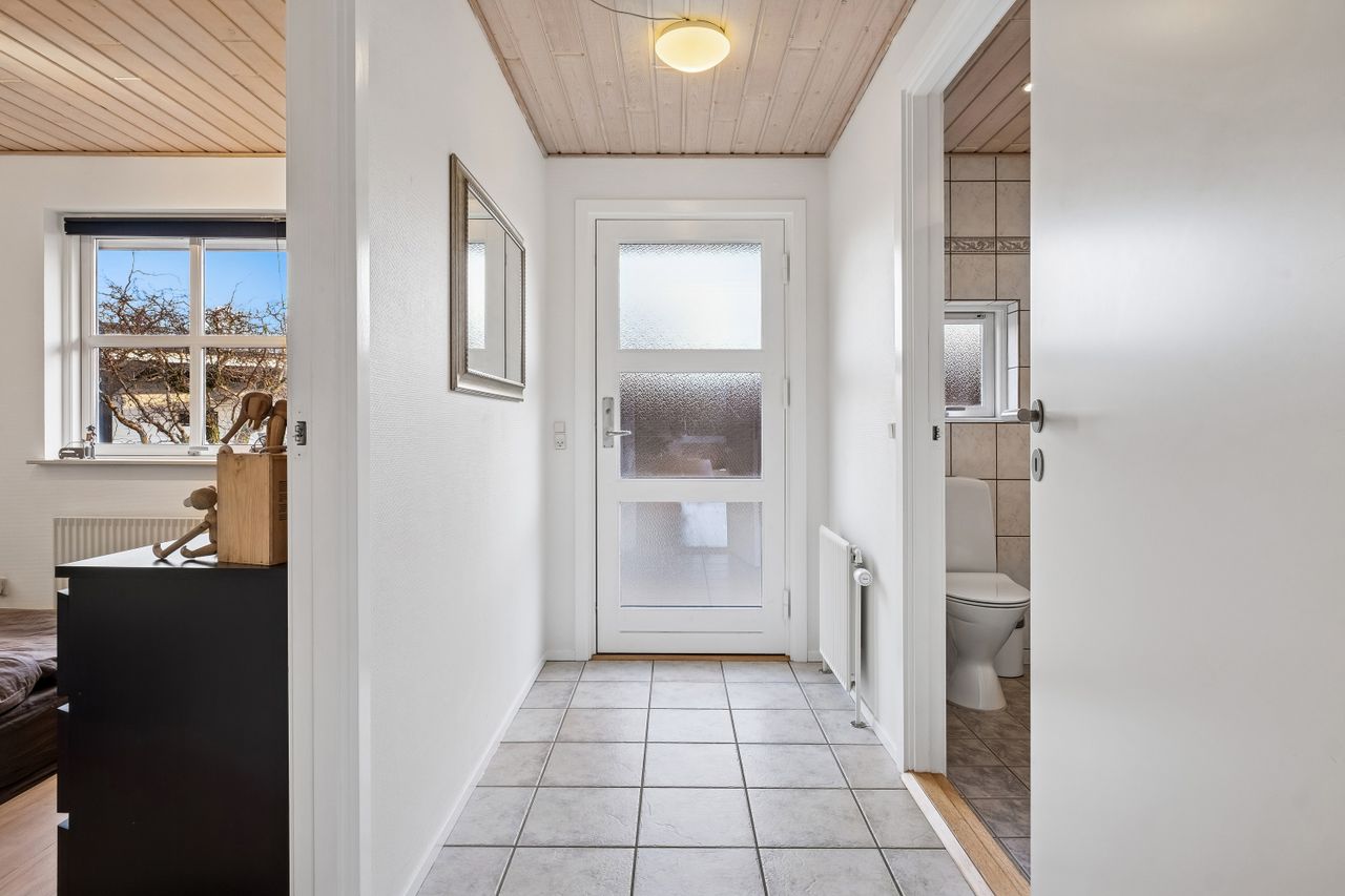 Indendørs imponerer hjemmet med et dejligt stort køkken-alrum, der er i åben forbindelse med stuen, et arrangement, som gør det muligt at invitere større selskaber indenfor, da der er rigeligt med plads til opstilling af spisebord og socialt samvær. Både køkken og bryggers er renoveret i 2017, og er udstyret med moderne inventar fra Vordingborg. Køkkenet fremstår funktionelt med kogeø, skuf i skuf, smart stikkontakt boks i bordpladen mm. Her er tilmed udgang til stor sydvendt terrasse. Boligen er indrettet med en forældreafdeling med eget badeværelse samt 3 værelser og endnu en entre med adgang til nr. 2 badeværelse. Fra entreen/gangen er der udgang til baghaven - som indbyder til et hyggemiljø uden lige med overdækket terrasse, bålsted og plads til isbad eller spa - alt efter hvad man er til. Lysindfaldet i hele villaen er bemærkelsesværdigt og skaber en behagelig atmosfære. Her er flotte trægulve, lyse klinker og hvide, massive døre, der gennem hele hjemmet bidrager til et stilfuldt og sammenhængende udtryk.