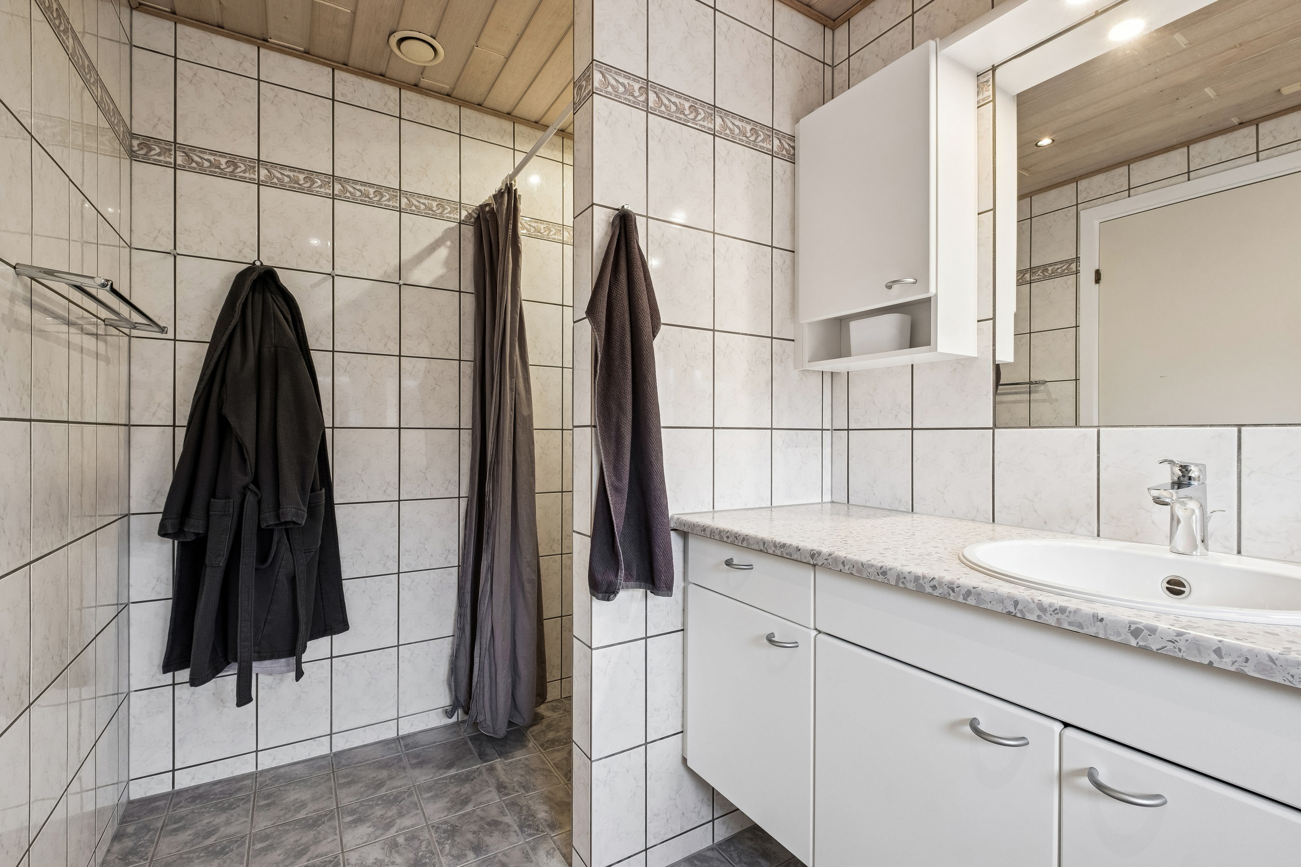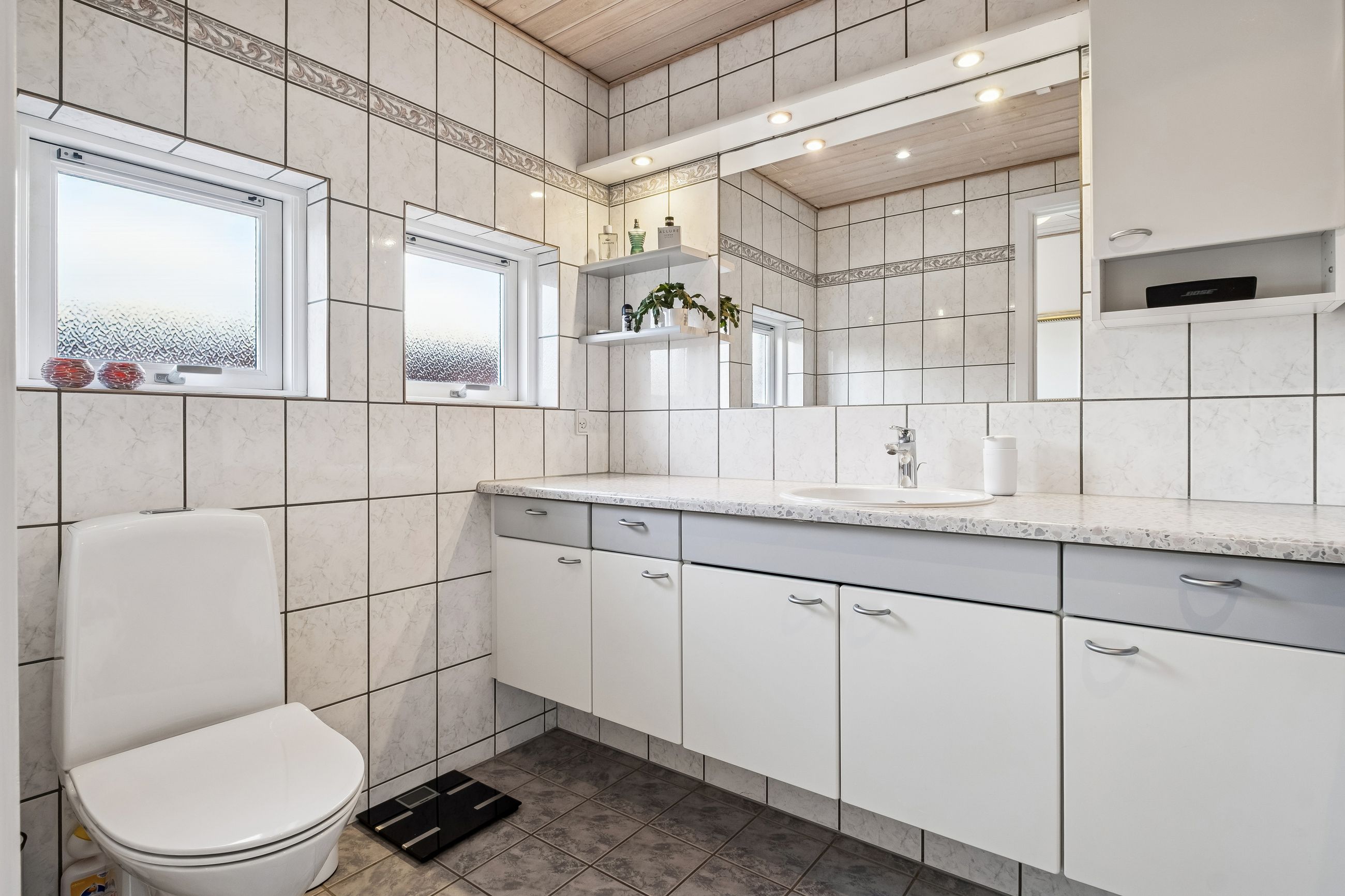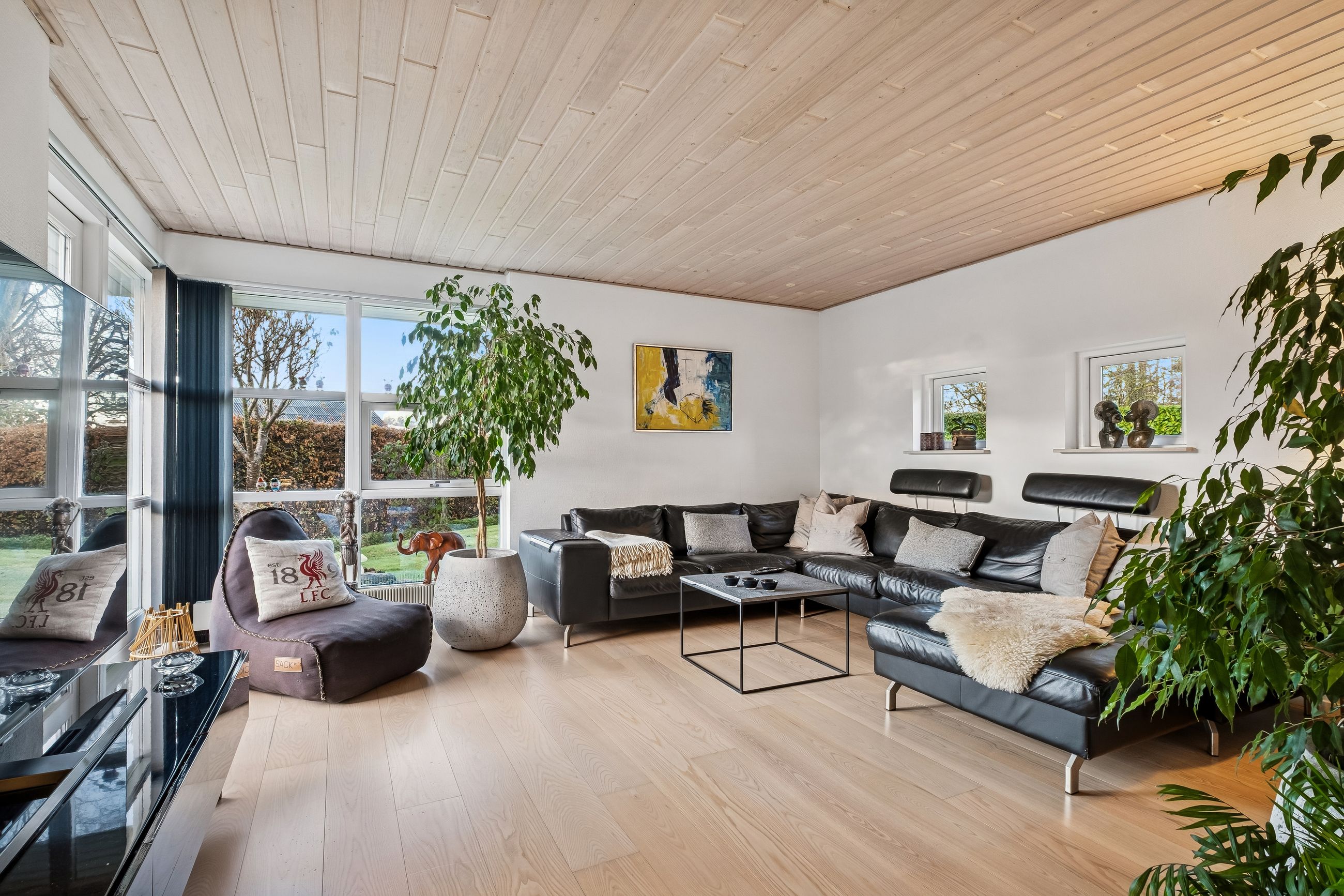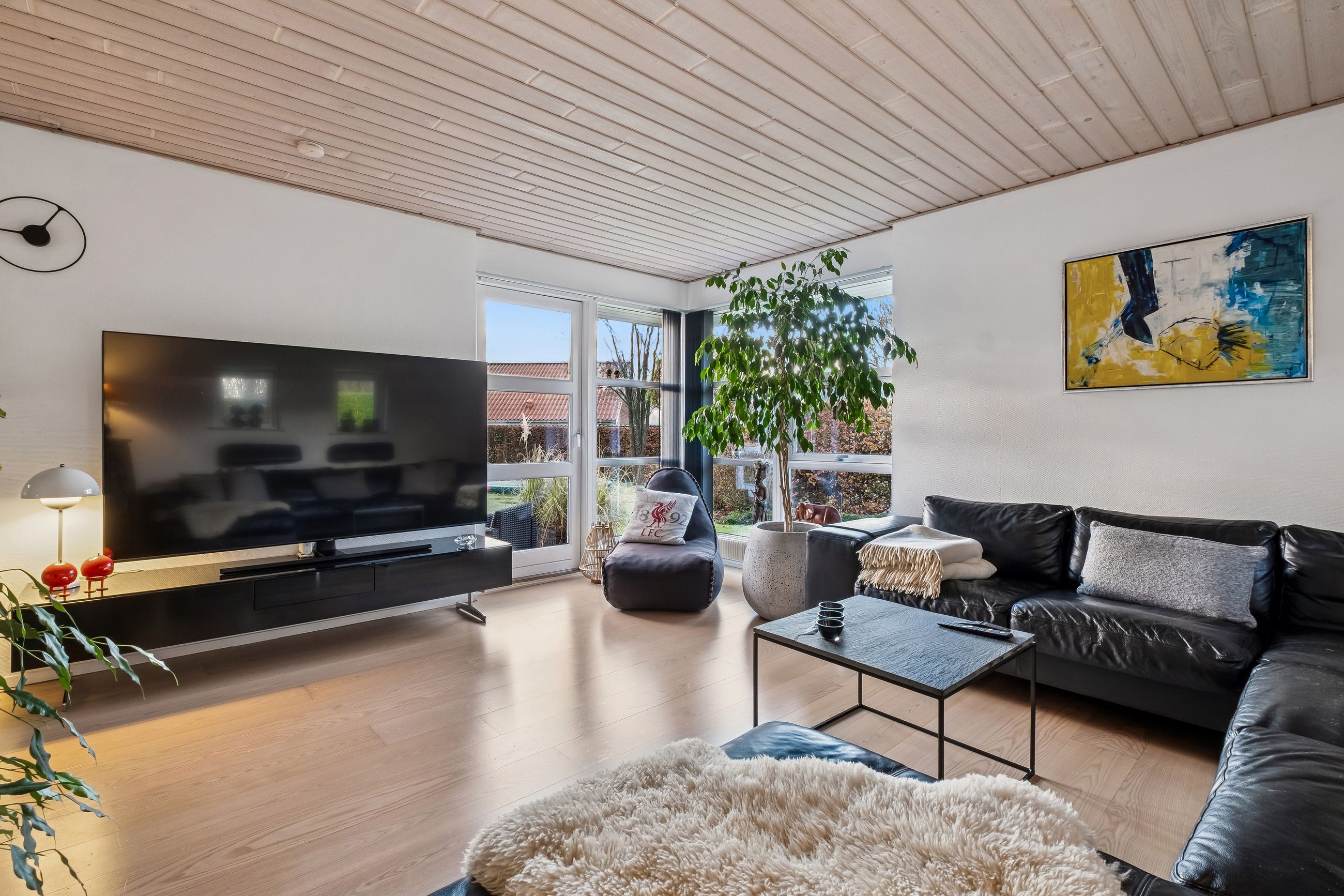 Indendørs imponerer hjemmet med et dejligt stort køkken-alrum, der er i åben forbindelse med stuen, et arrangement, som gør det muligt at invitere større selskaber indenfor, da der er rigeligt med plads til opstilling af spisebord og socialt samvær. Både køkken og bryggers er renoveret i 2017, og er udstyret med moderne inventar fra Vordingborg. Køkkenet fremstår funktionelt med kogeø, skuf i skuf, smart stikkontakt boks i bordpladen mm. Her er tilmed udgang til stor sydvendt terrasse. Boligen er indrettet med en forældreafdeling med eget badeværelse samt 3 værelser og endnu en entre med adgang til nr. 2 badeværelse. Fra entreen/gangen er der udgang til baghaven - som indbyder til et hyggemiljø uden lige med overdækket terrasse, bålsted og plads til isbad eller spa - alt efter hvad man er til. Lysindfaldet i hele villaen er bemærkelsesværdigt og skaber en behagelig atmosfære. Her er flotte trægulve, lyse klinker og hvide, massive døre, der gennem hele hjemmet bidrager til et stilfuldt og sammenhængende udtryk.