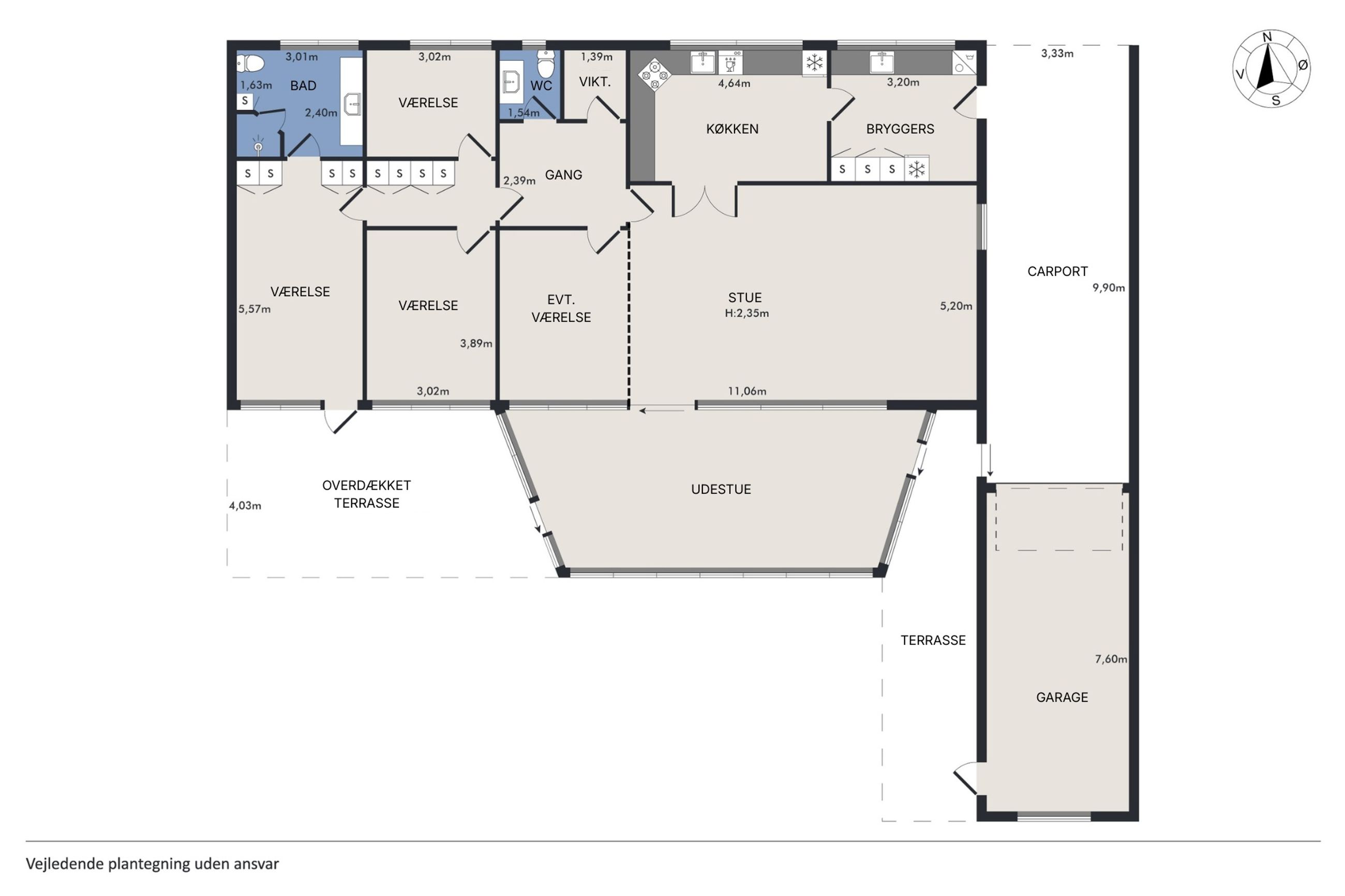 Udenfor finder vi både en rummelig garage og en carport, som sikrer god plads til både bilparkering og opbevaring. Ejendommen har også fjernvarme og der er sket kloakseparering.