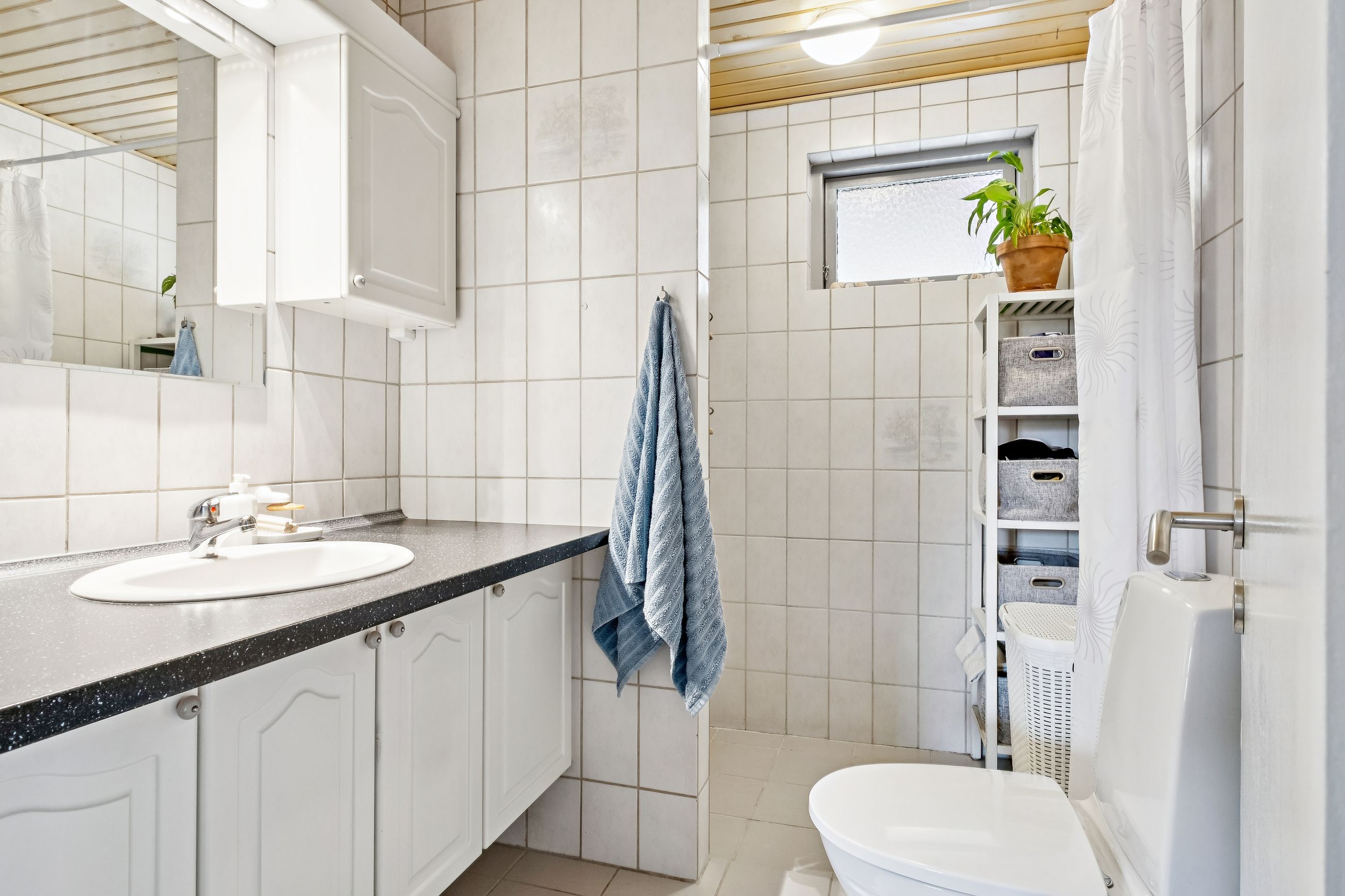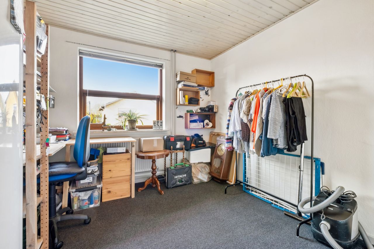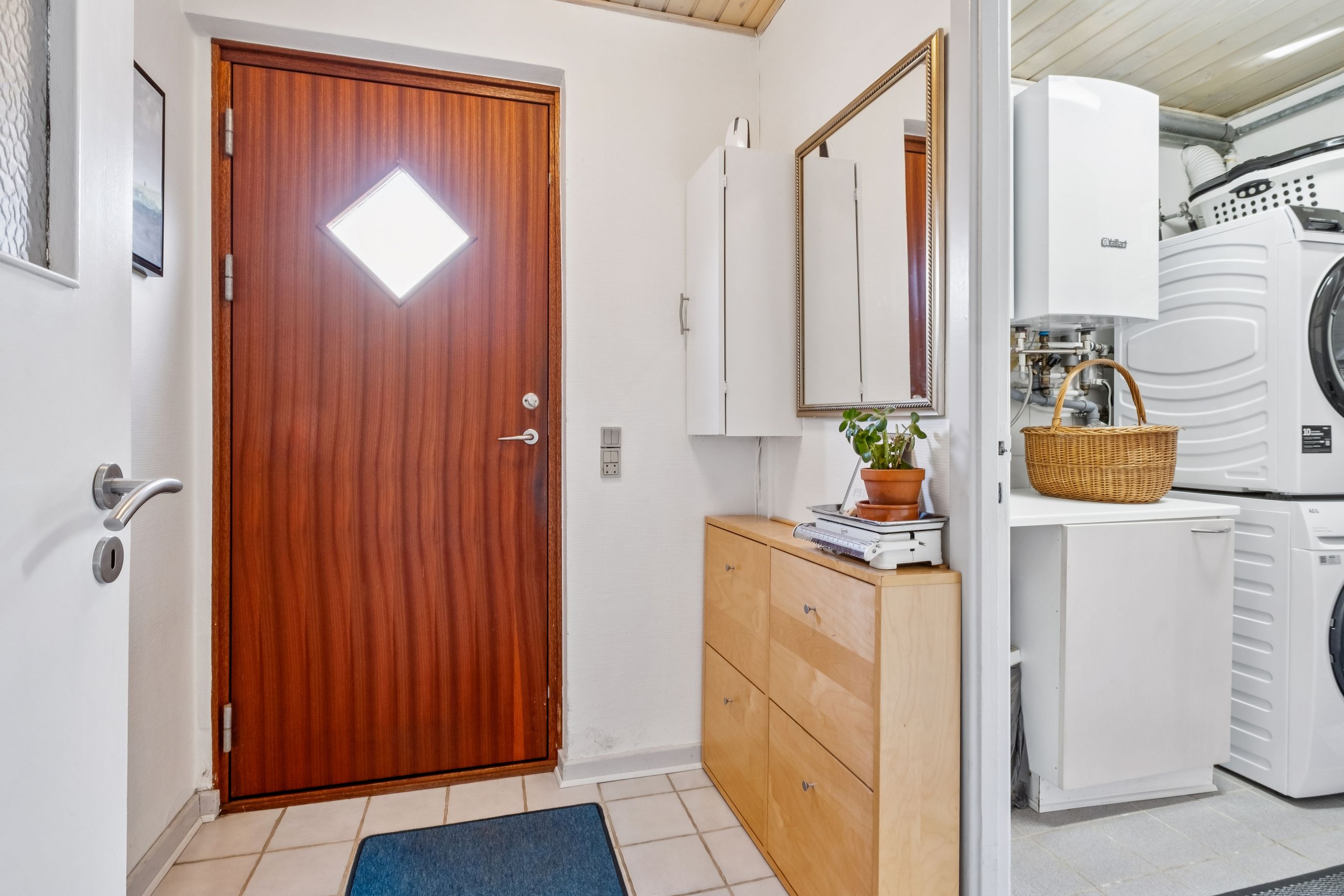 Boligen ses med fin entré, stort værelse, bryggers med mulighed for vaskesøjle. Badeværelset er med bruseniche og gulvvarme og fremstår i lyse materialer. Stor rummelig stue med brændeovn og med mulighed for at etablere et ekstra værelse hvis ønsket. Her er der lagt gulve i 2020. Rummeligt soveværelse med god skabsplads. Køkken med malede fronter og der er installeret hårde hvidevarer i køkkenet i år 2020.