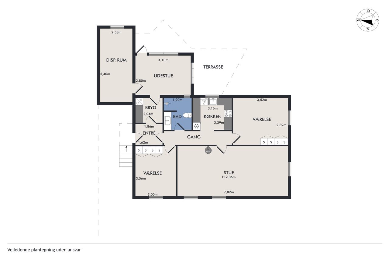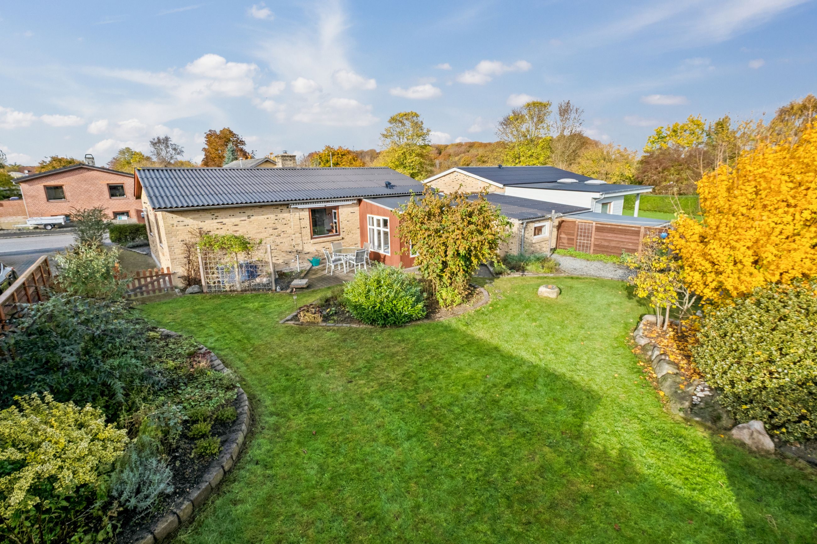 I rolige omgivelser for enden af lukket blind vej, ligger denne fine et plans villa. Her er der både gode rumstørrelser og veludnyttet m2. Villaen har en rigtig fin udestue med varme. Hertil er garagen lukket, isoleret og varme er etableret for at skabe endnu mere rum og flere muligheder for brug heraf i hverdagen.