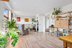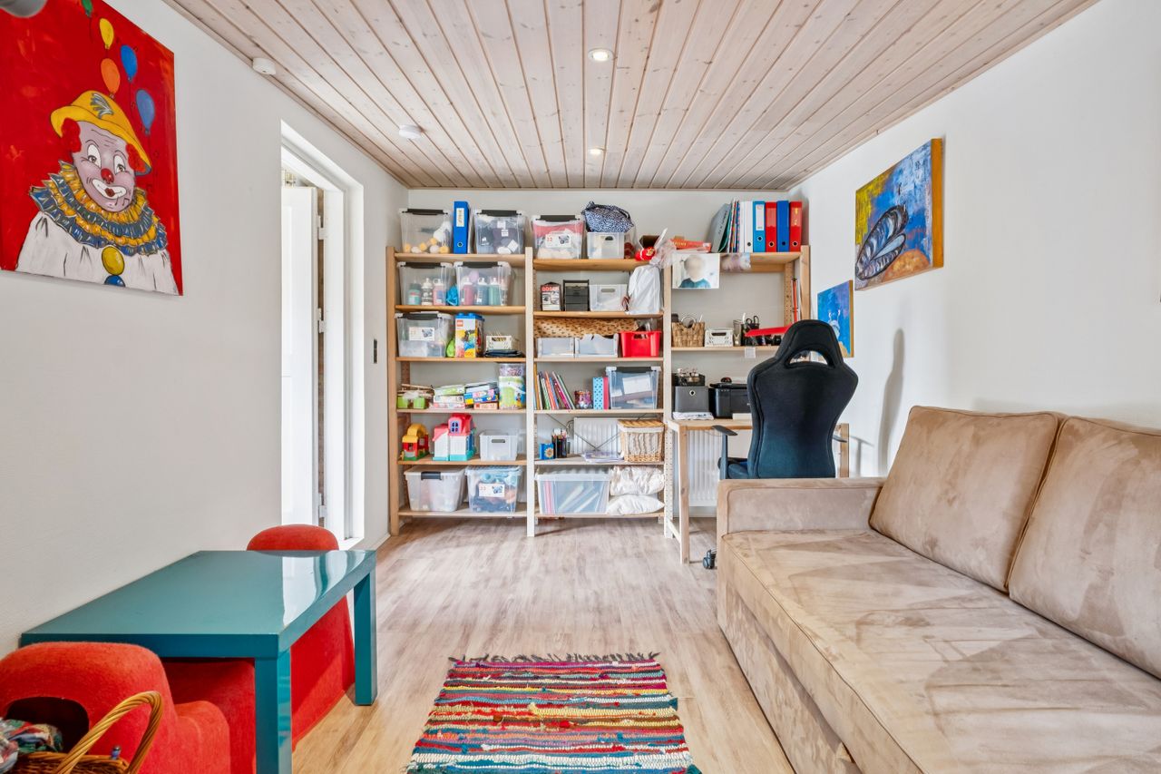 Udestue giver mange gode ekstra m2 til hverdagen og bruges aktivt. Herfra er der adgang til garagen som i dag bruges som krea-rum.