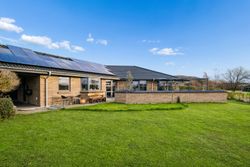 Villaen er yderst energieffektiv med både jordvarme og solceller, hvilket resulterer i særdeles lave energiudgifter. Gennem hele hjemmet er der lagt gulvvarme, en virkelig luksus for komforten. Herudover er boligen udstyret med et moderne Genvex-anlæg fra 2023, hvilket garanterer et sundt indeklima og yderligere energieffektivitet.