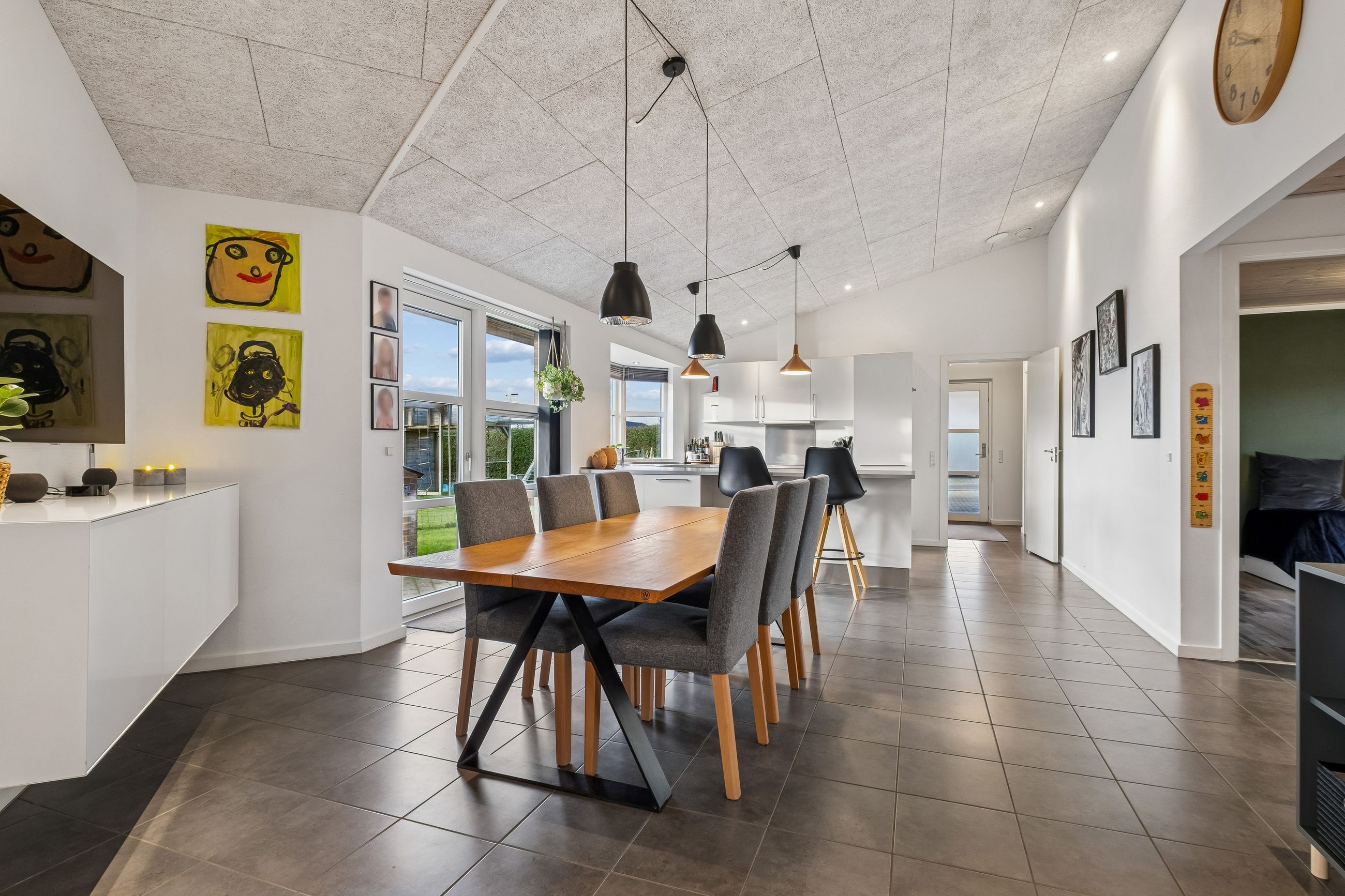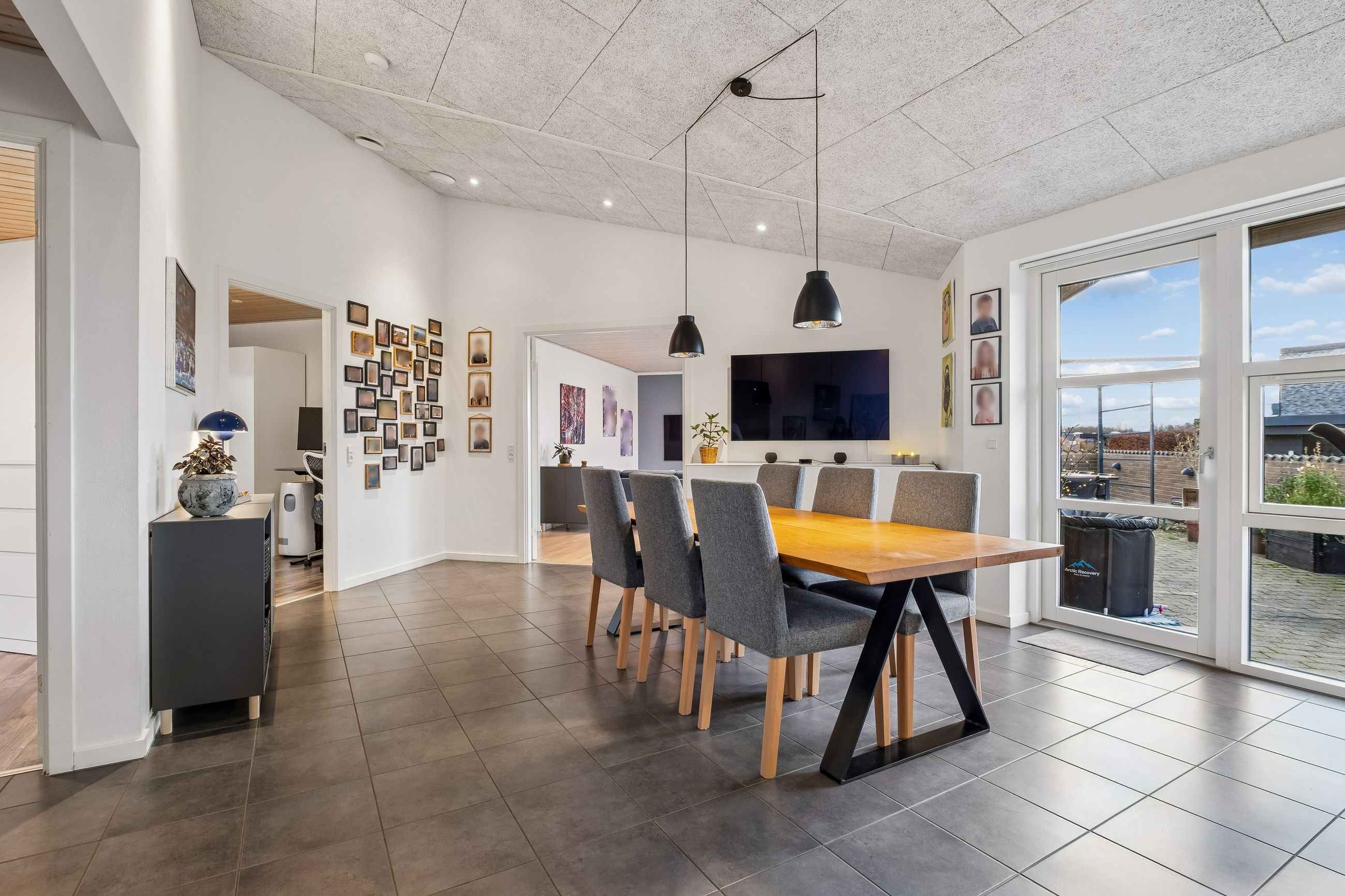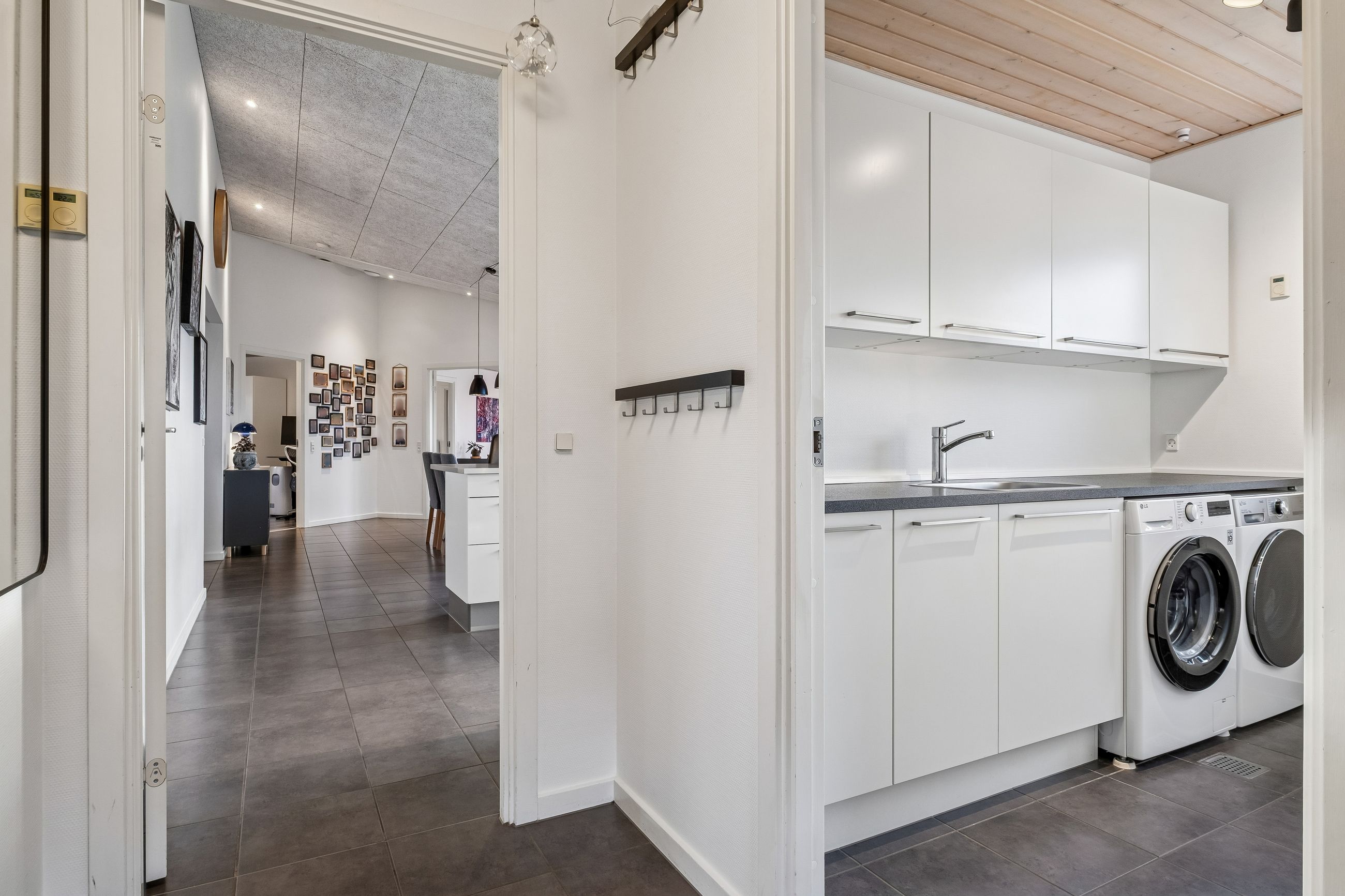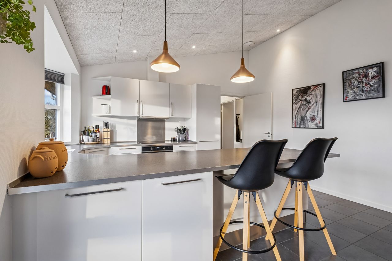 Hjertet i hjemmet er uden tvivl det lyse og moderne alrum med HTH-køkken. Her finder vi troldtektlofter, der ikke blot bidrager til den æstetiske appel, men også sikrer en behagelig lydoplevelse i dagligdagen.