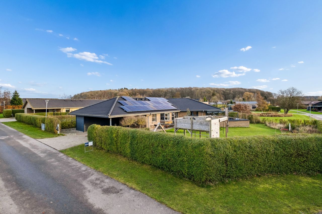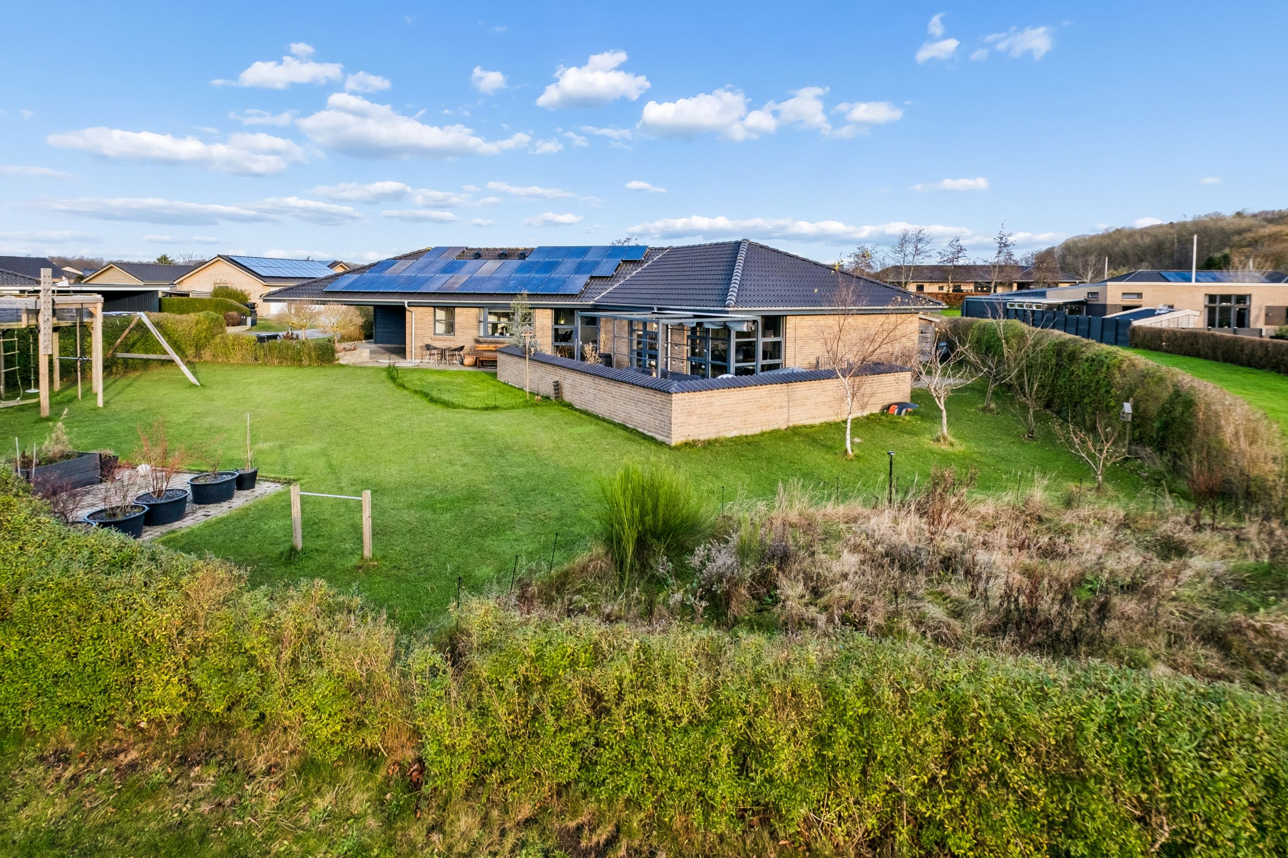Beliggenheden er præget af god afstand til naboer, store grønne arealer og med naturen tæt på. Her er fyldt med liv, børnefamilier og trampoliner. Det gode naboskab skinner igennem og både midaldrende og familier med børn i alle aldre har forelsket sig i området. I gåafstand har i nemlig både institutioner, indkøb, svømmehal og et væld af fritidsaktiviteter, og børnene kan hurtigt komme i skole. Skal I til Horsens, tager det blot 15 minutter i bil og omtrent det samme med bus. Århus er ligeledes kun 30 min. væk.