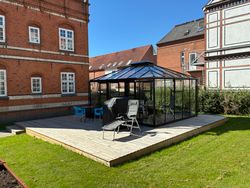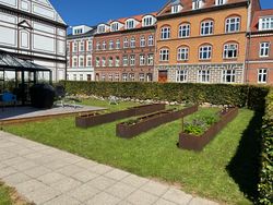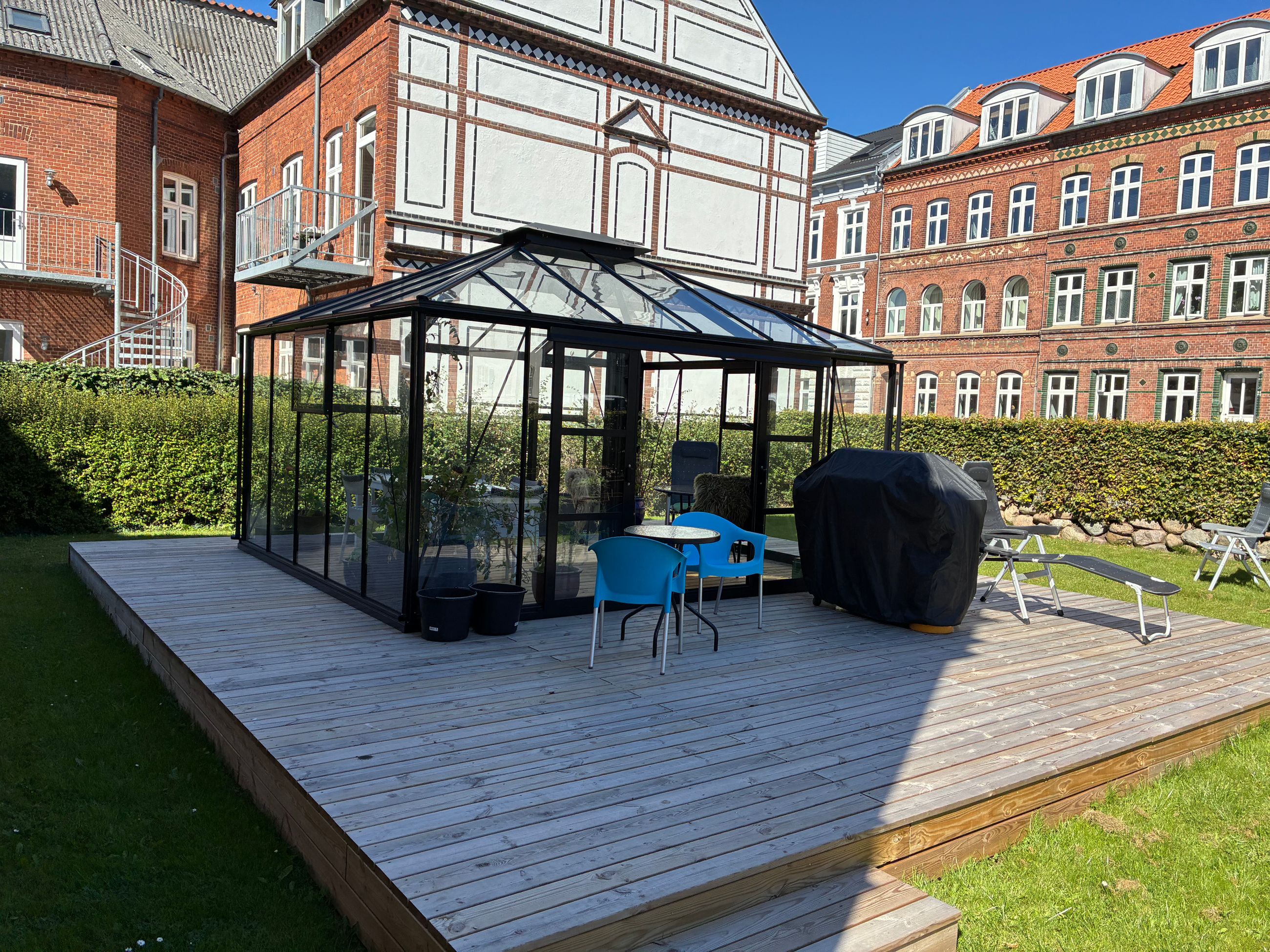 Udenfor er der skabt skønne rammer for fællesskab og ro. Terrasserne er frisket op, der er opført et orangeri, og i haven er der anlagt forskellige blomster- og plantebede, som giver farve, liv og små grønne oaser at nyde.