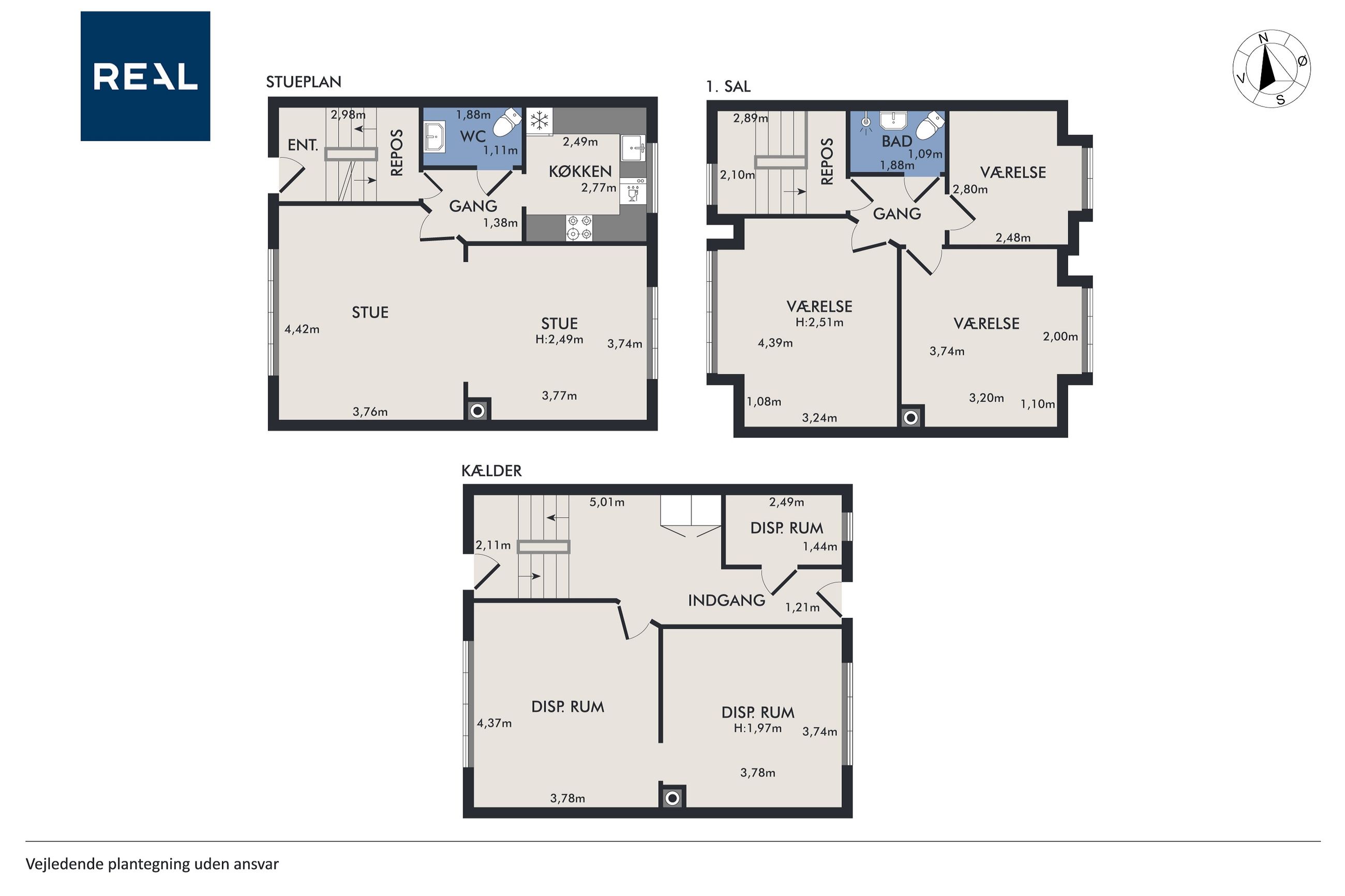 Kælderen byder på tre disponible rum, der giver ekstra opbevaringsmuligheder eller potentiale for at skabe yderligere opholdsrum alt efter familiens ønsker. Uanset om du drømmer om en vinkælder, fitnessrum eller kreativt værksted, så har du her muligheden for at realisere dine visioner.
