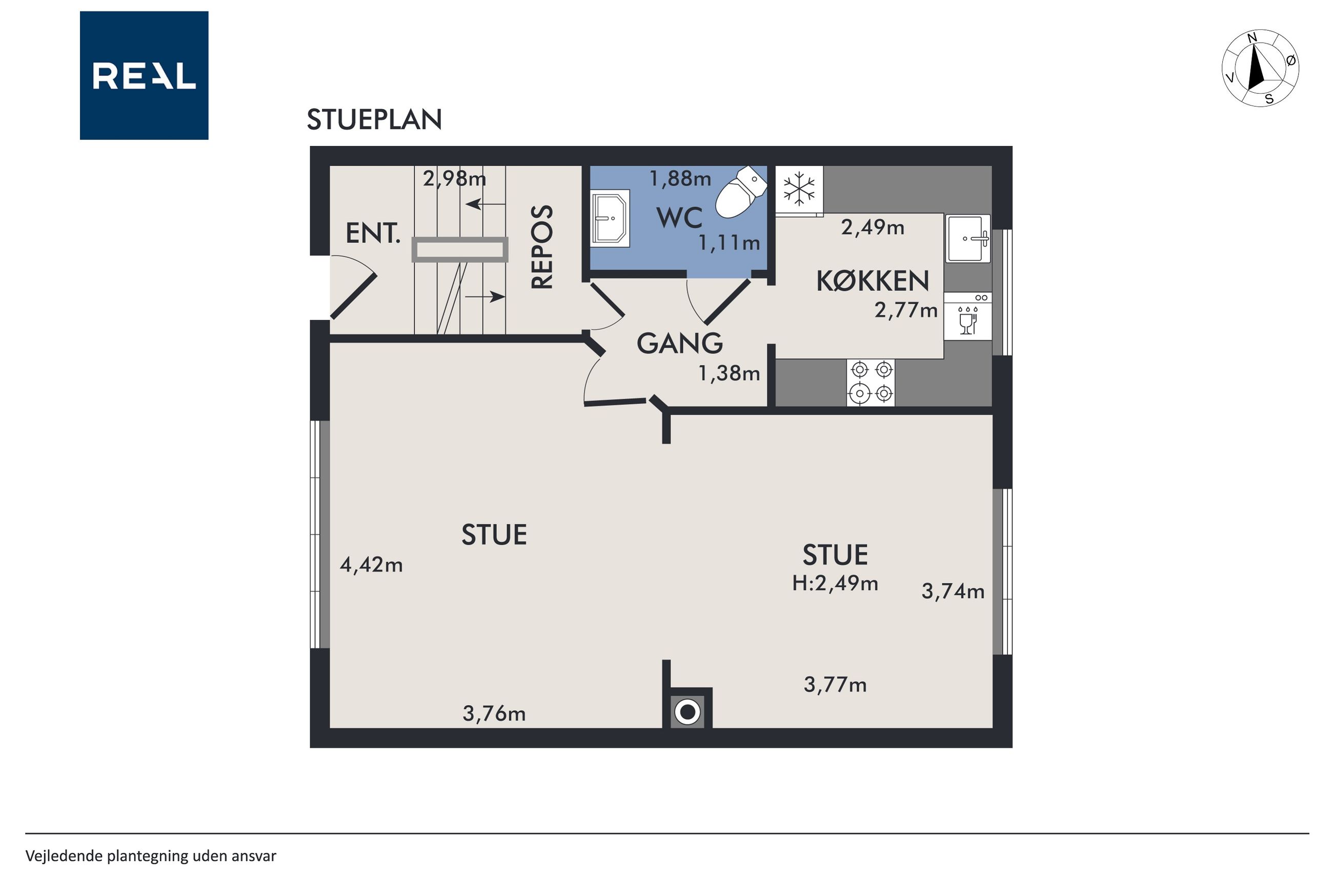 I stueplan mødes du af et lyst køkken med god plads til at udfolde dine kulinariske evner. Her er der rig mulighed for at skabe lækre måltider til familie og venner. Den store stue er ideel til afslapning med sin rummelige atmosfære, hvor der er plads til både sofagruppe og spiseplads – perfekt til hyggelige aftener eller større sammenkomster.