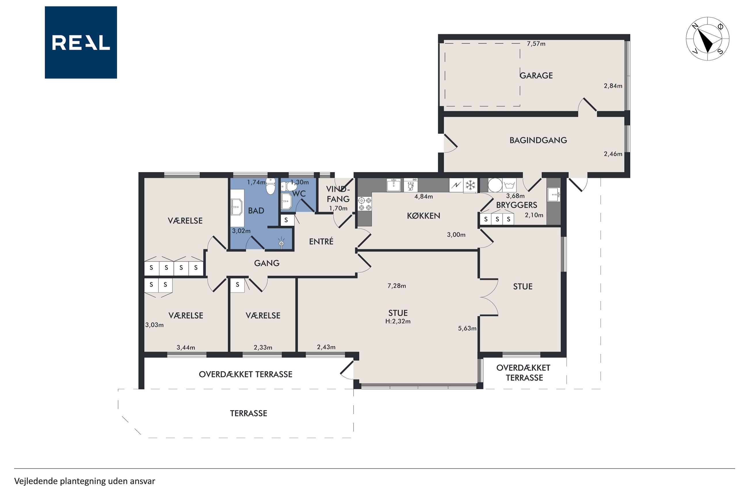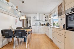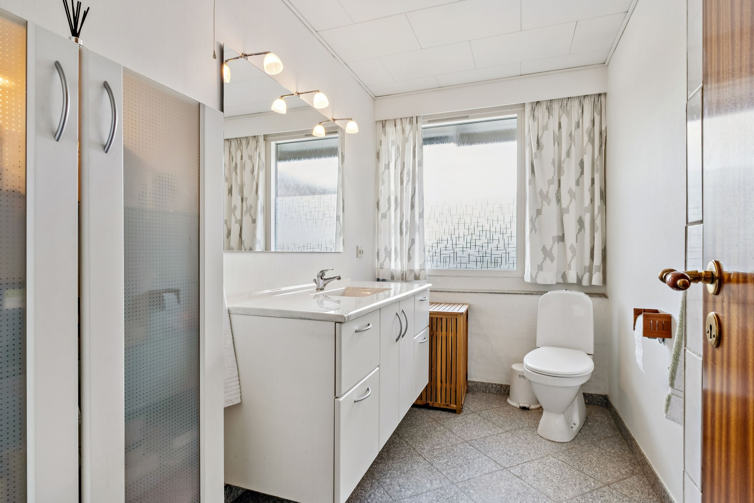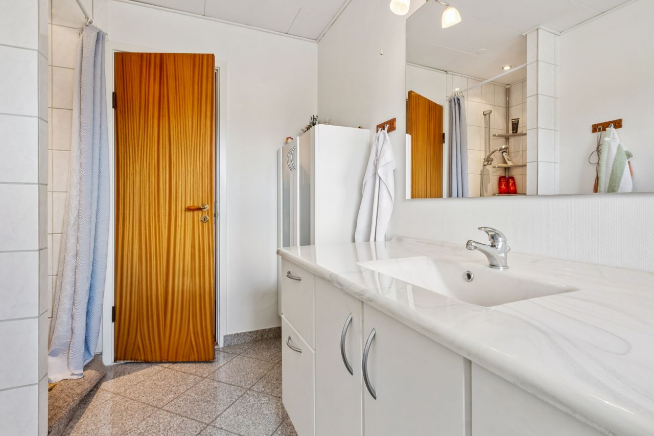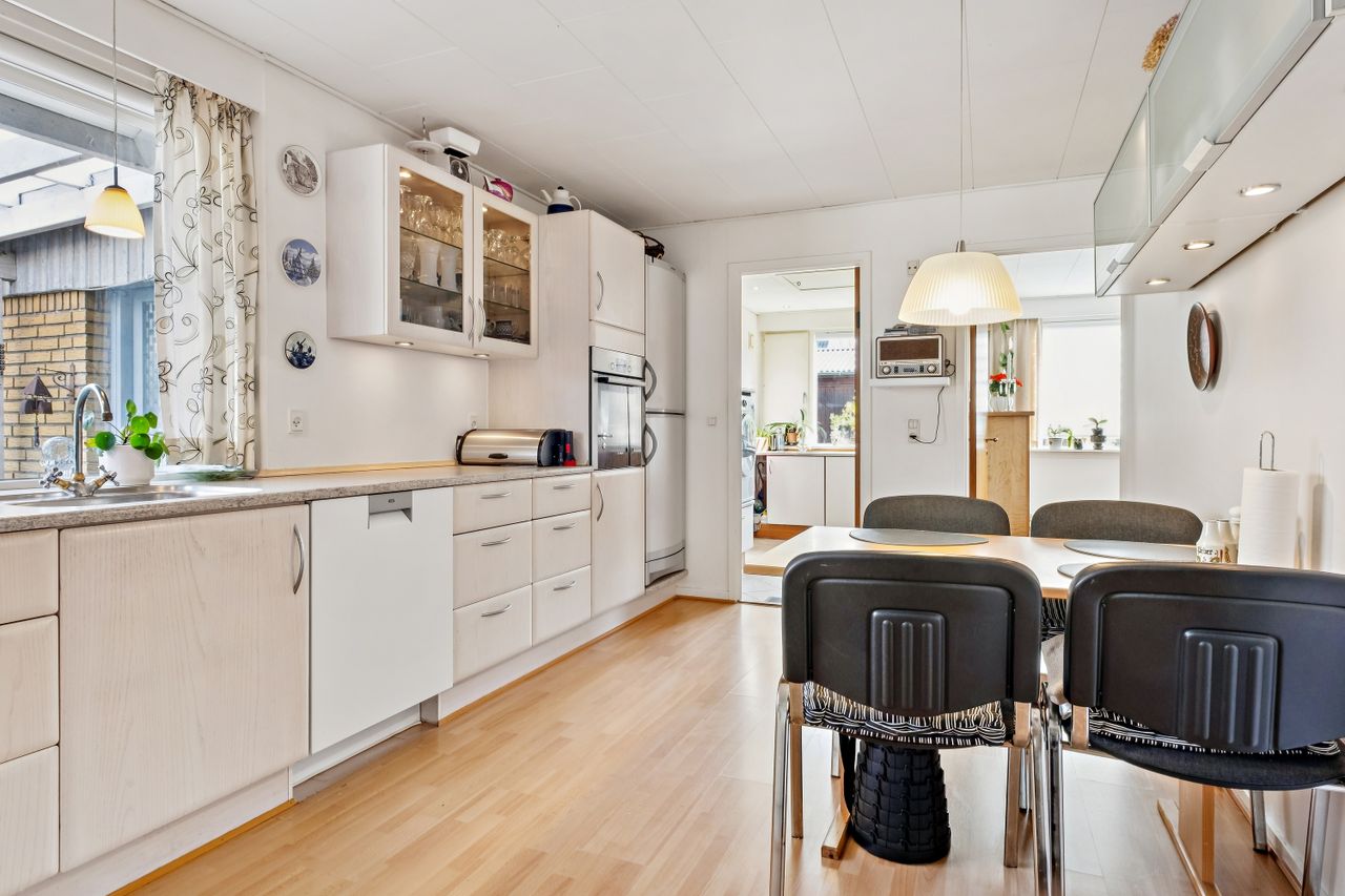 Køkkenet er lyst og funktionelt med spiseplads, hvilket gør det nemt at samles om morgenmaden eller hurtige hverdagsmåltider. Forældresoveværelset er med indbyggede skabe, der sikrer masser af opbevaringsplads. Derudover rummer huset to ekstra værelser – perfekte som børneværelser eller kontor. Badeværelset er praktisk indrettet med bruseniche, mens bryggerset tilbyder gode vaskefaciliteter desuden findes der et gæstetoilet.